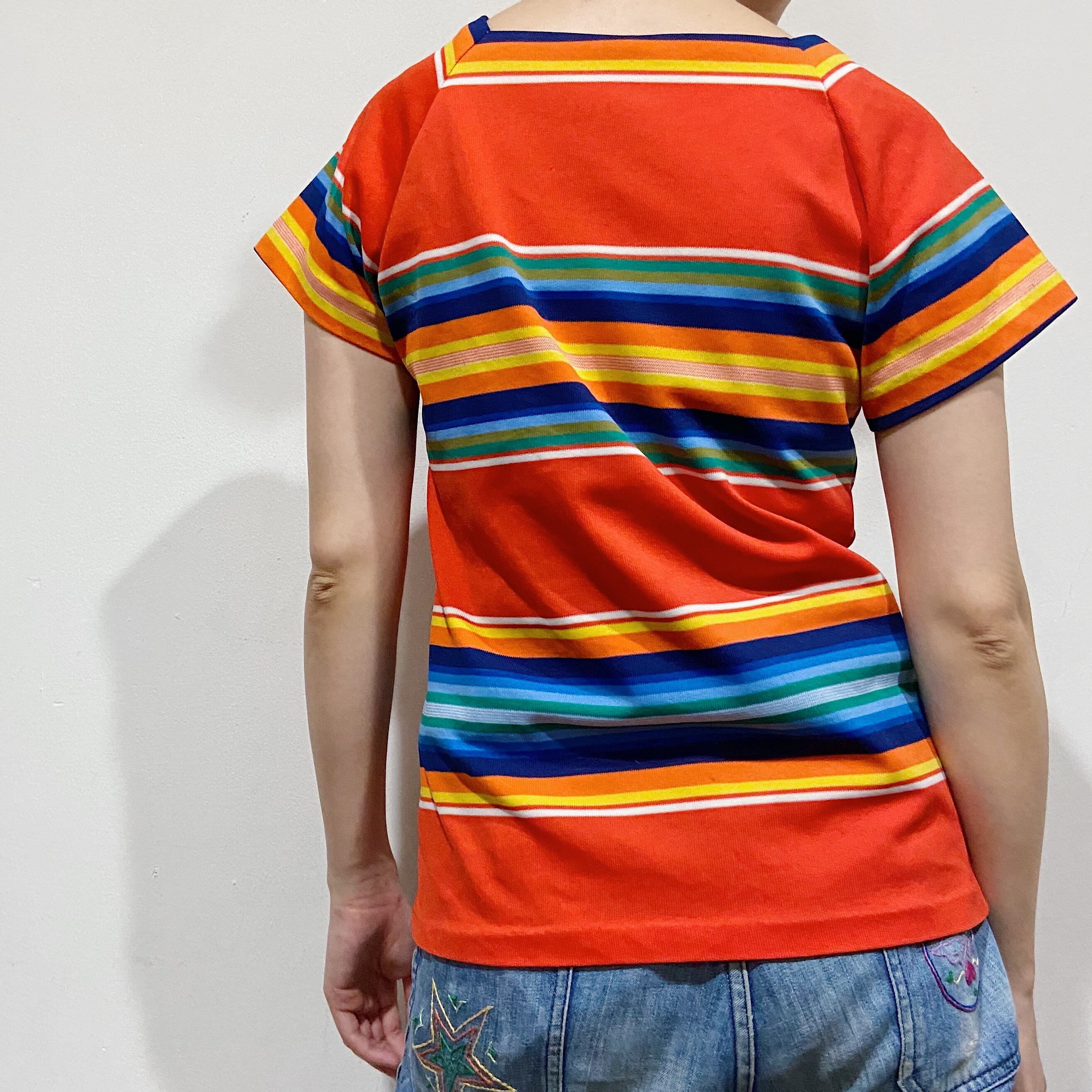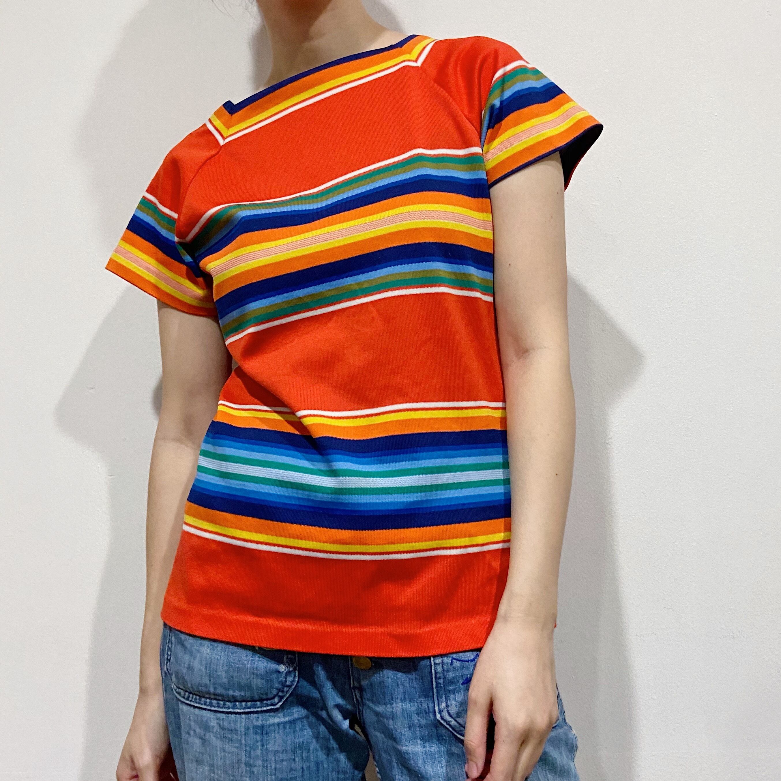 マルチカラーのボーダーが可愛い70年代の半袖トップス。