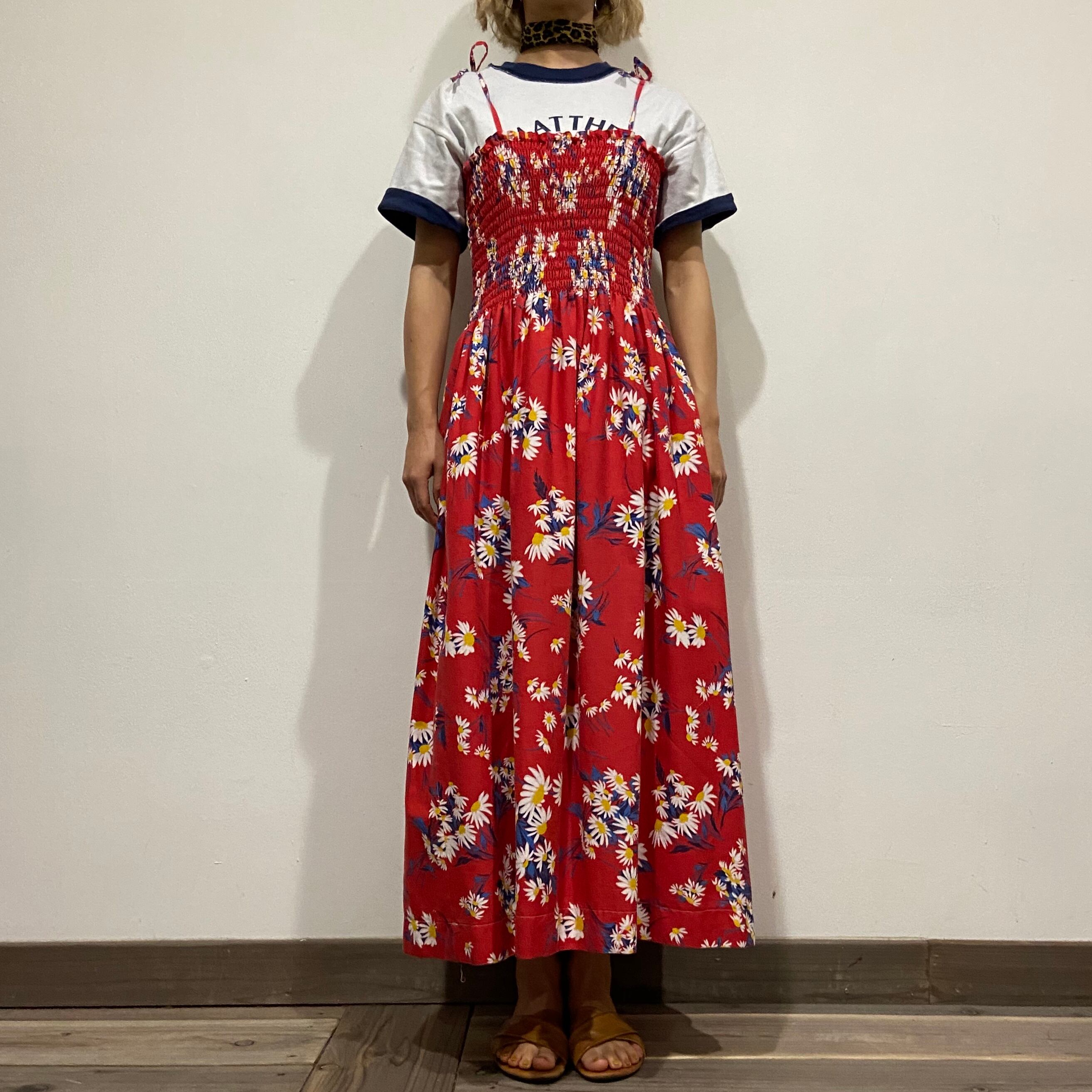 70年代らしい赤ベースの色味にデイジーのプリント模様がキュート。