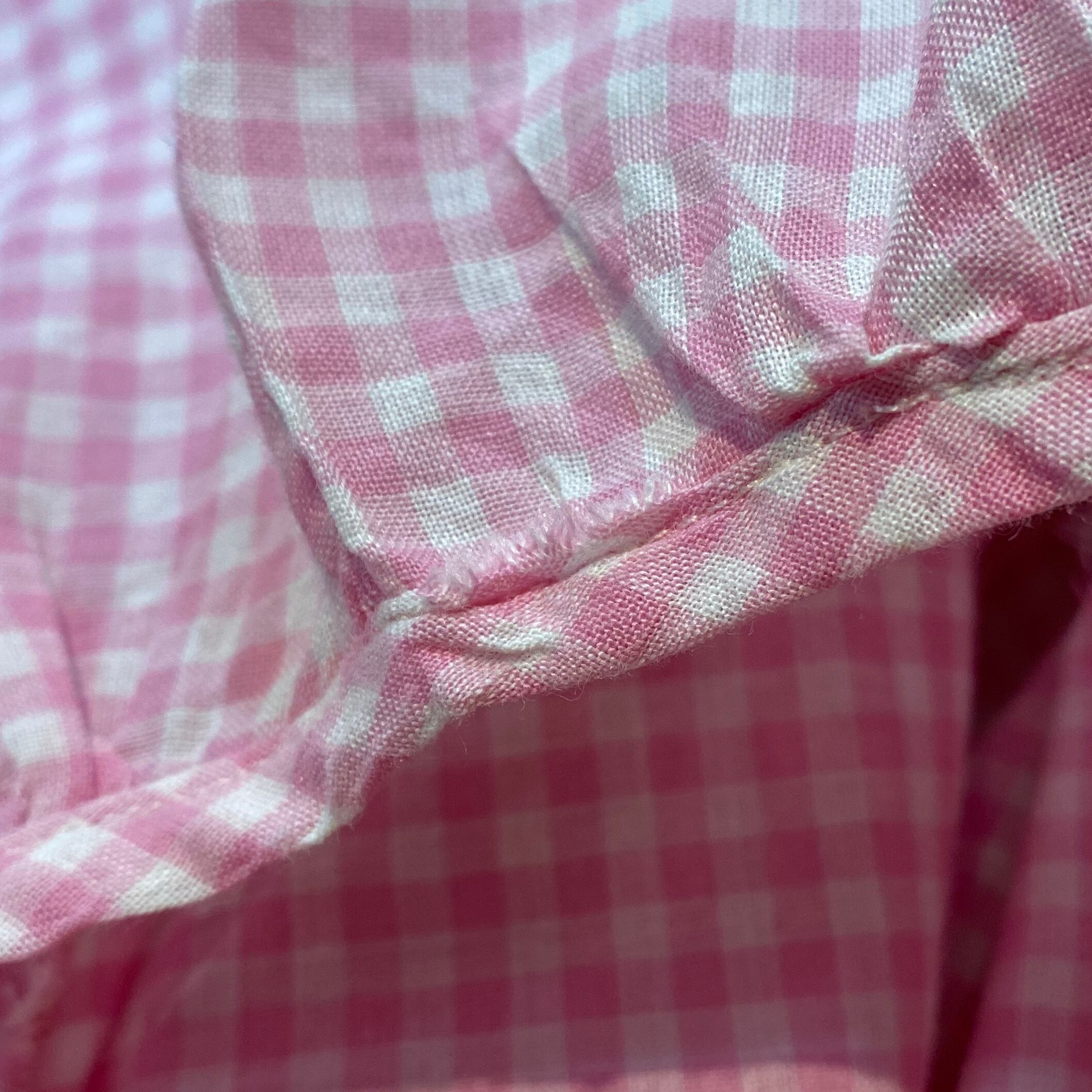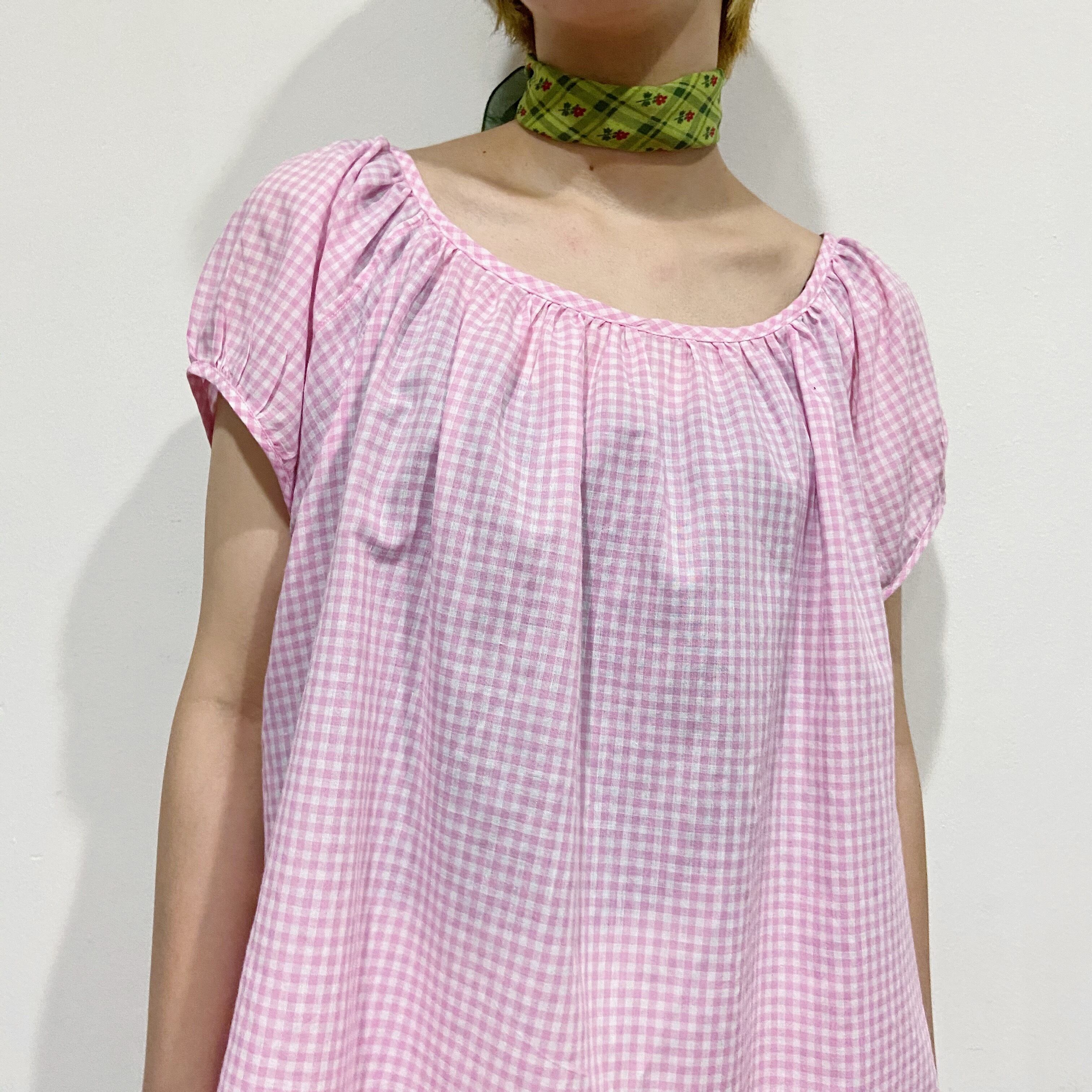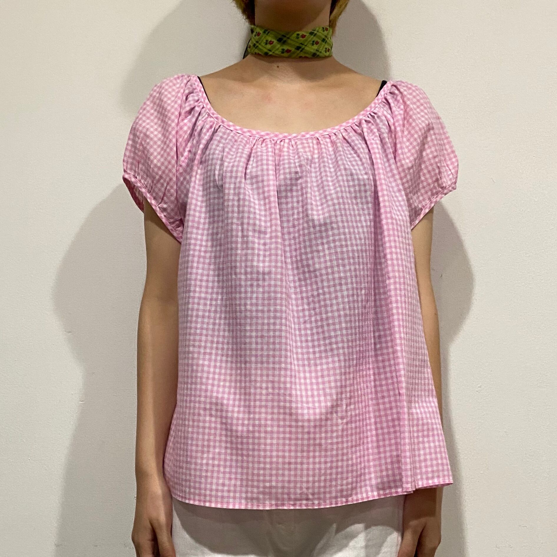 淡いピンクカラーの色合いが可愛いギンガムチェックのトップスです。
