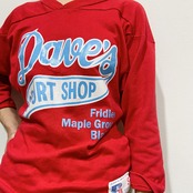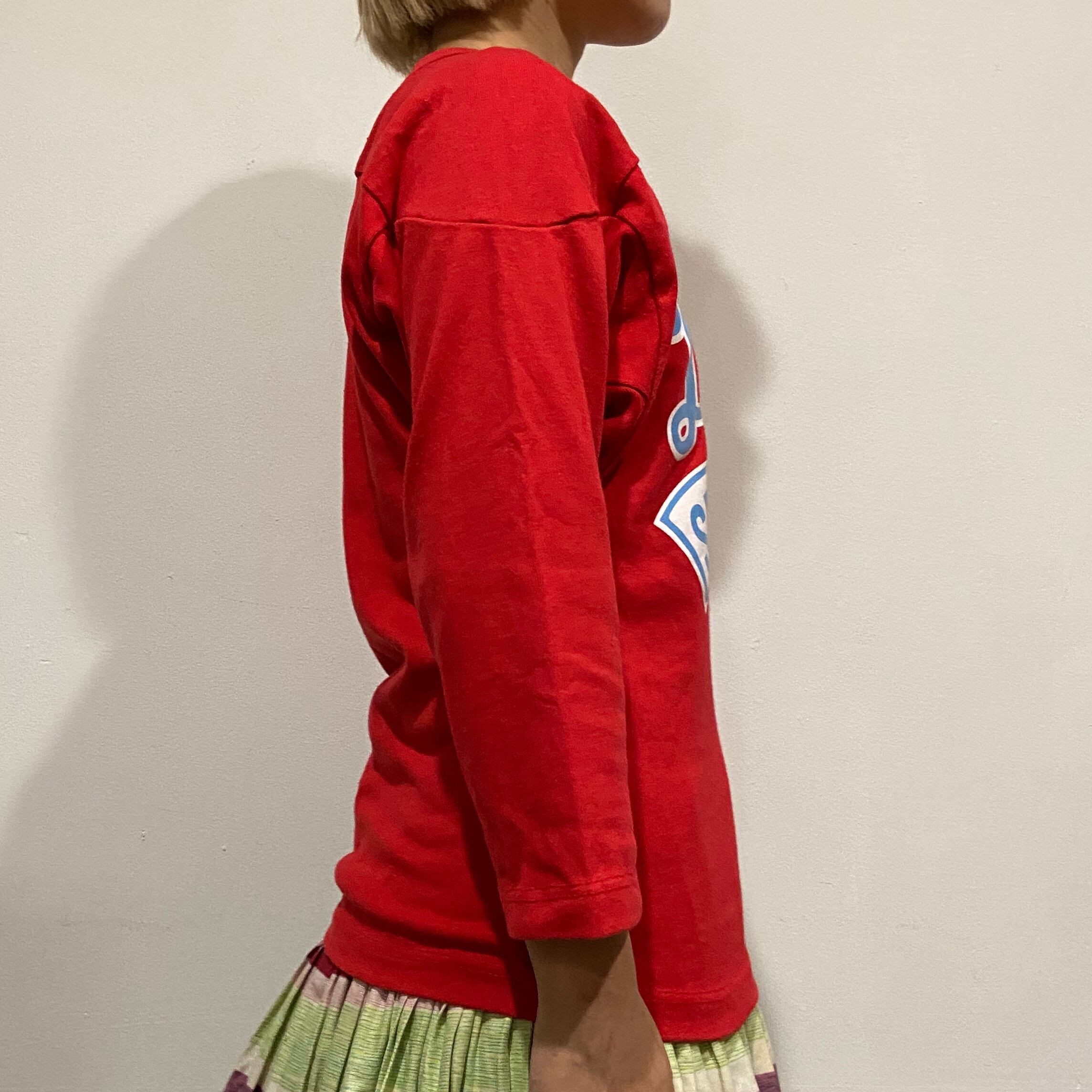 赤いボディに水色のロゴが可愛いフットボールTシャツです。