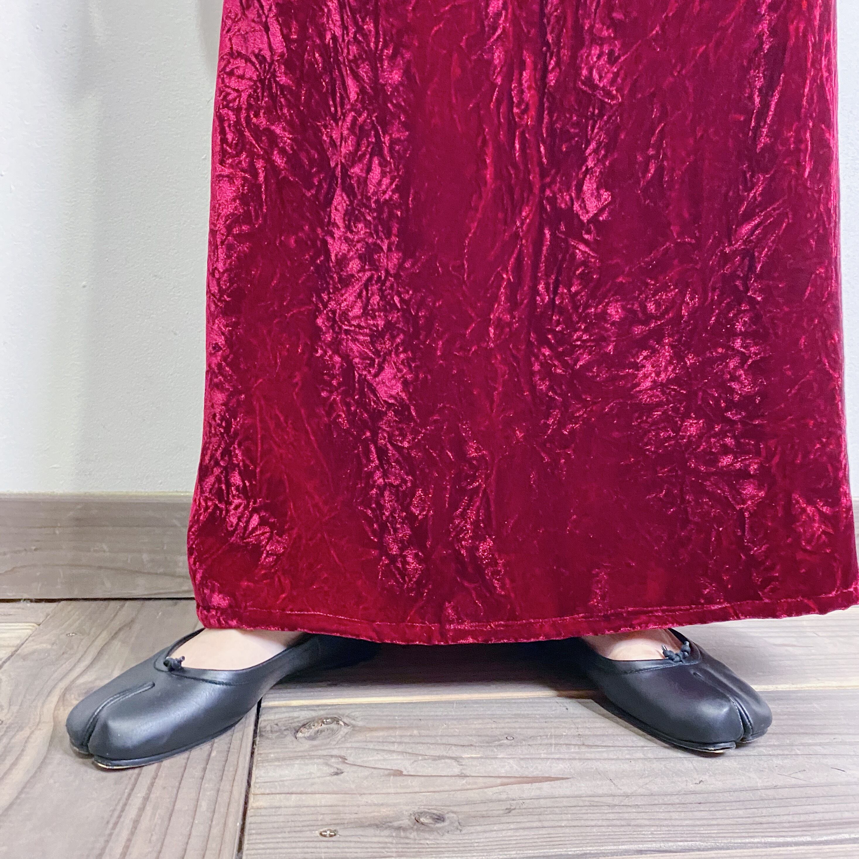 安っぽいベロアではなく、高級感のあるしっとりとした素材感で大人っぽく着こなせます。