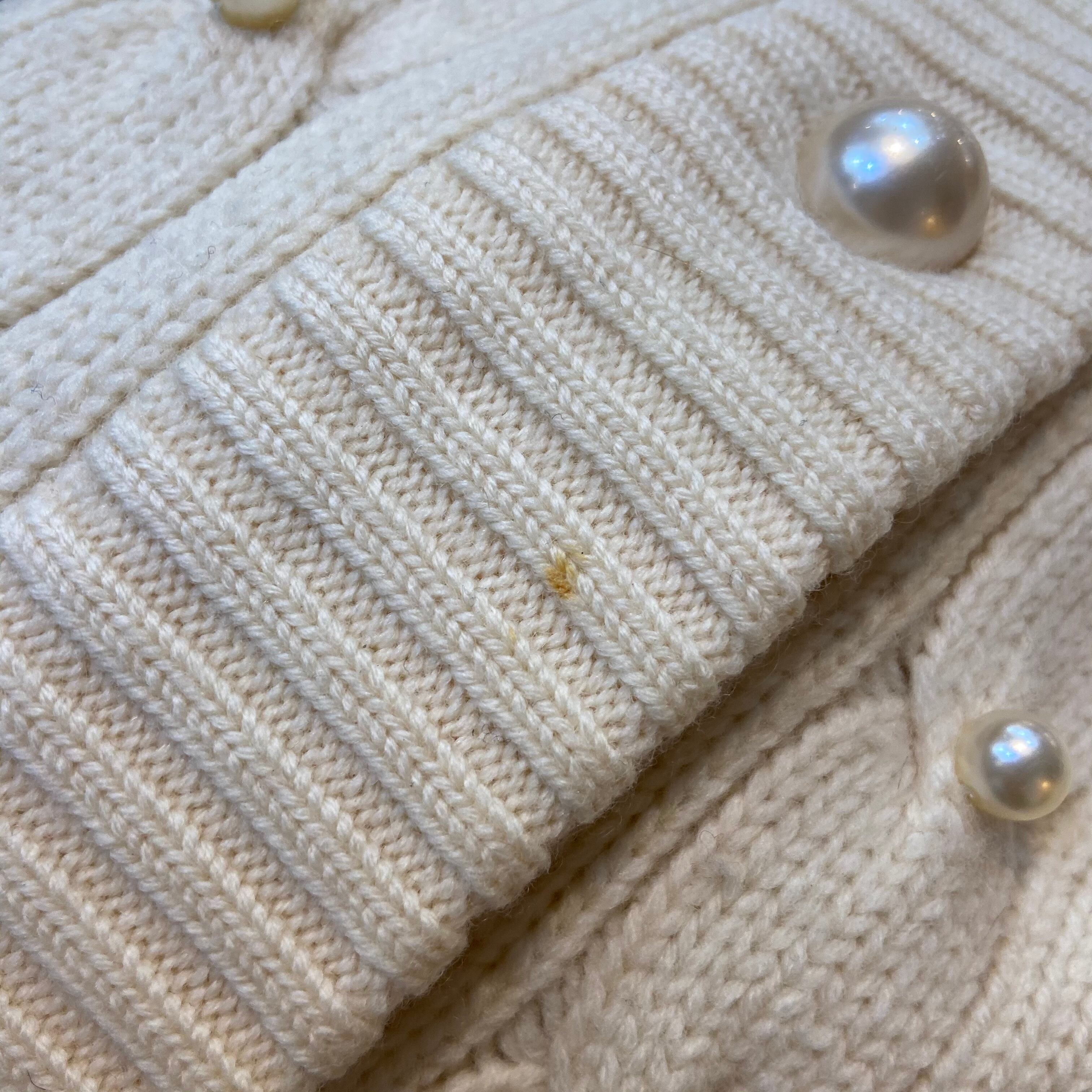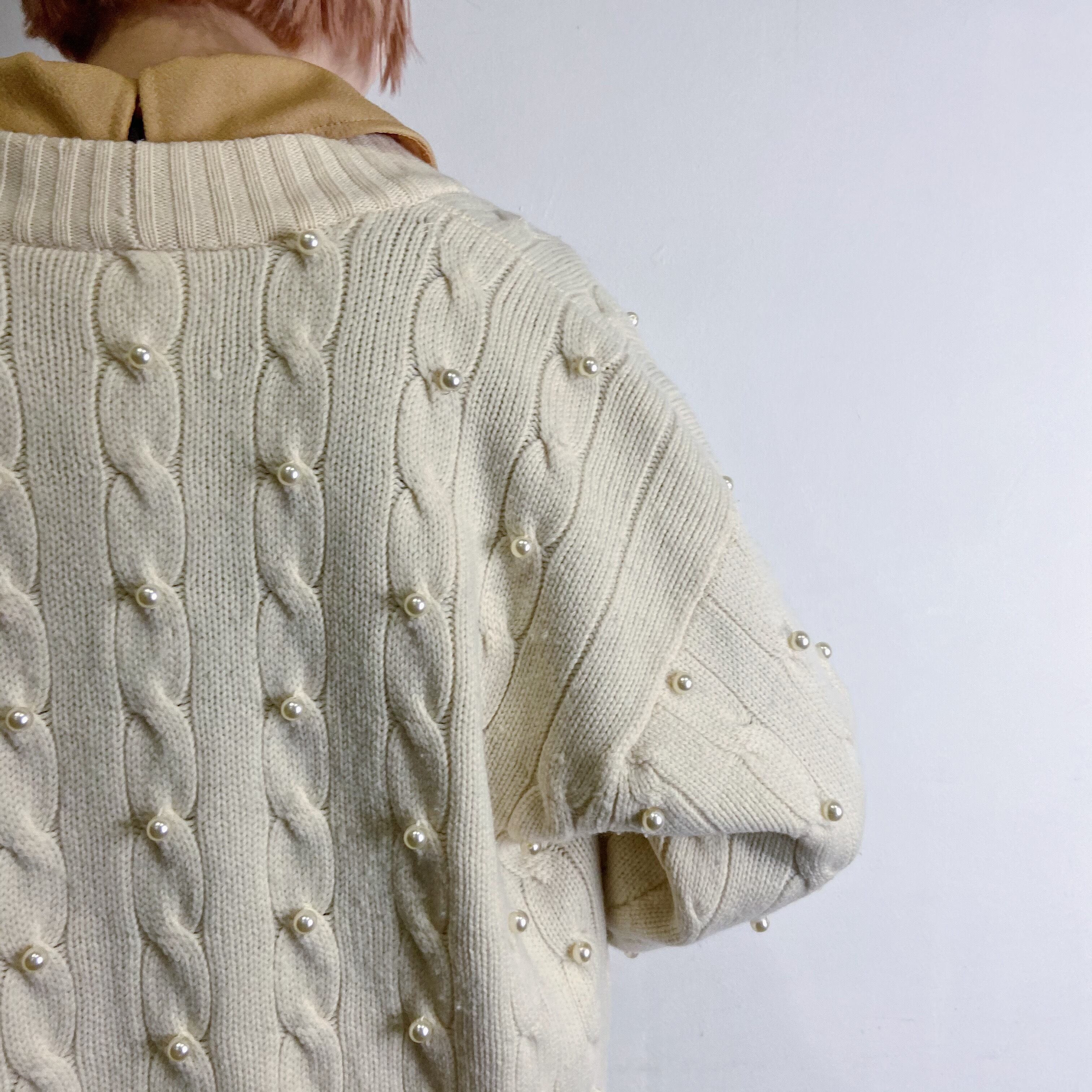 全体にパールビーズがつけられた、可愛らしいウールカーディガンです。