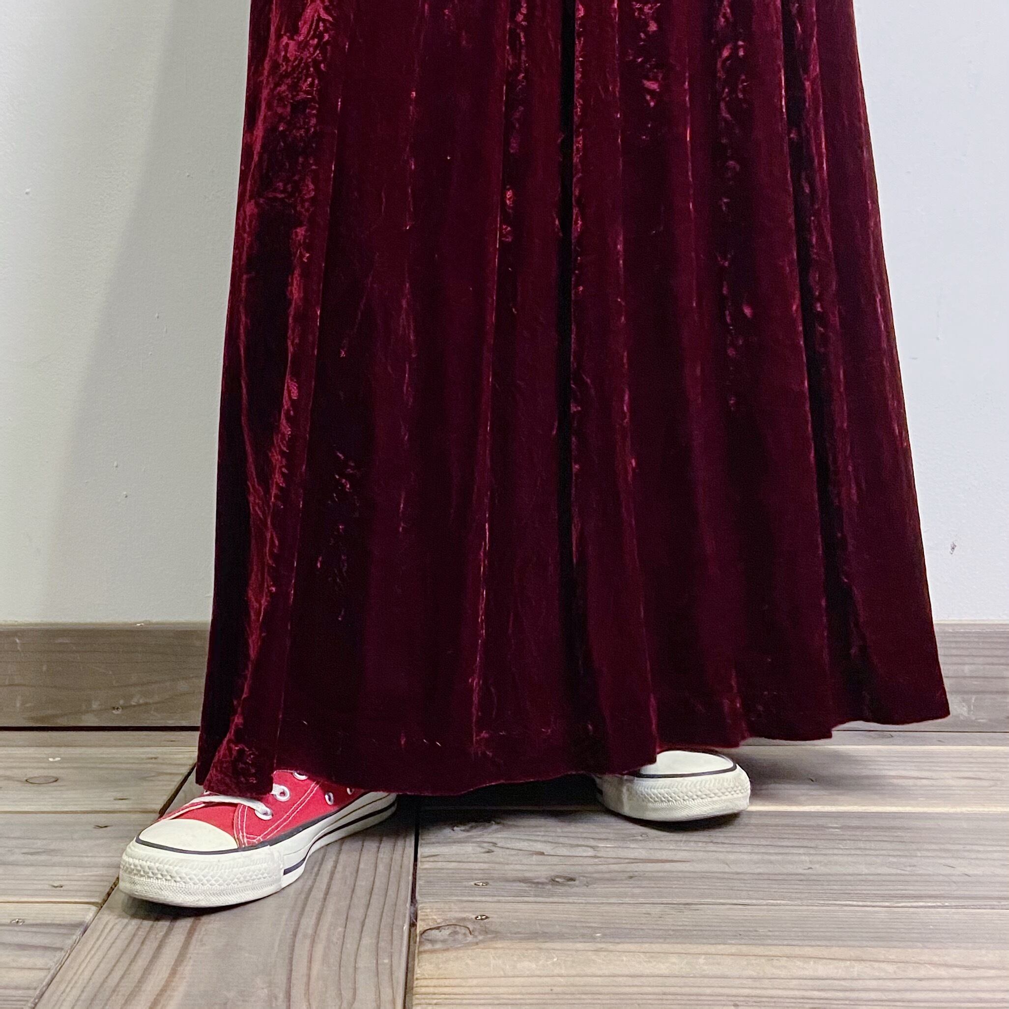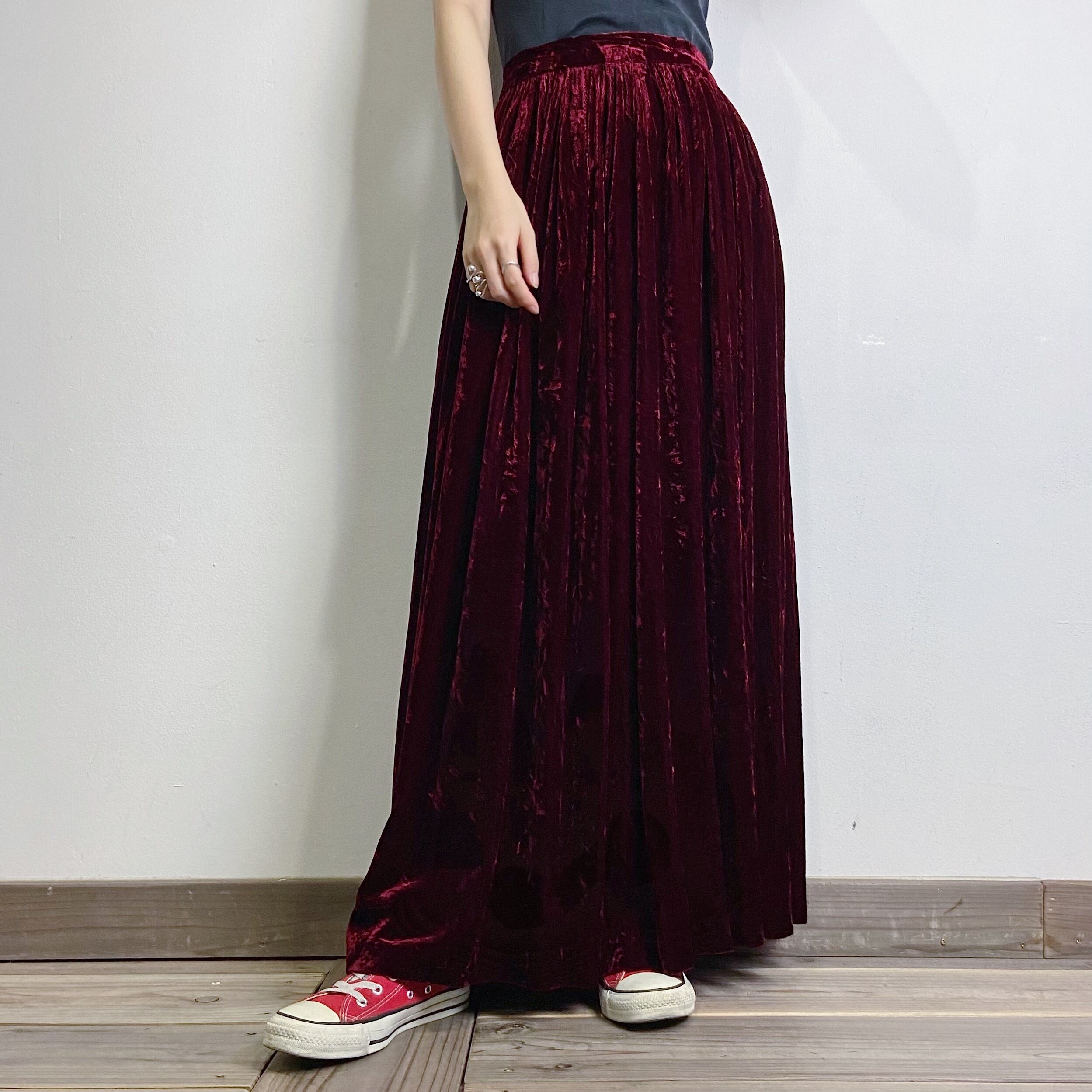 wine red velour long skirt