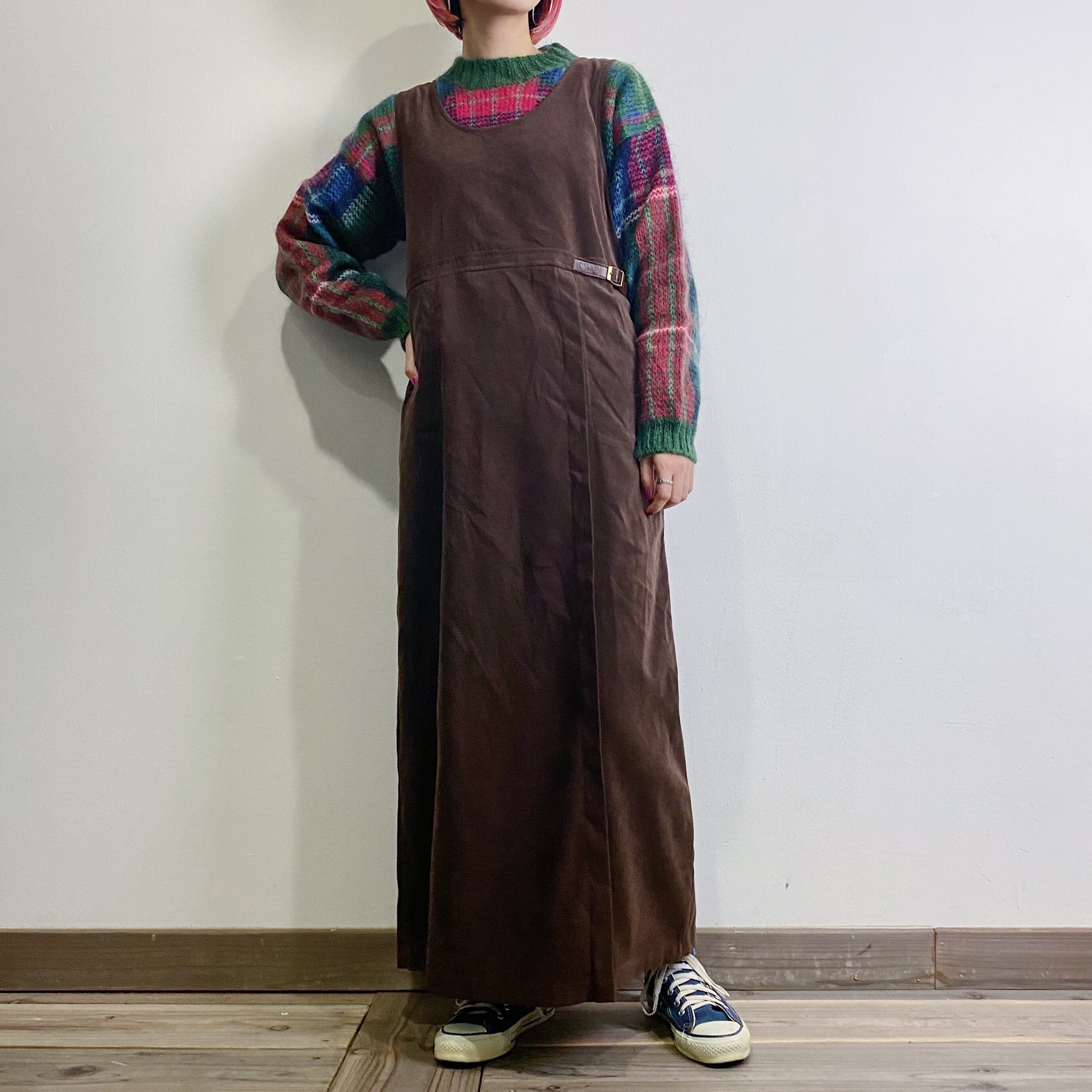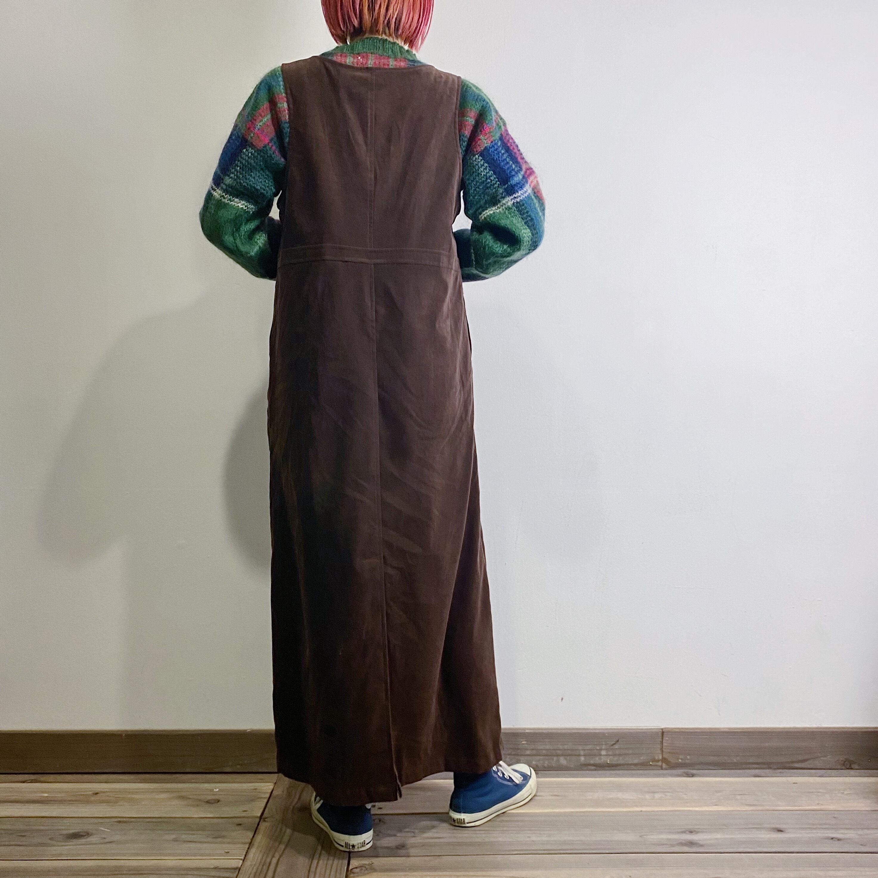 フェイクスエードの素材が可愛いジャンパーワンピースです。
