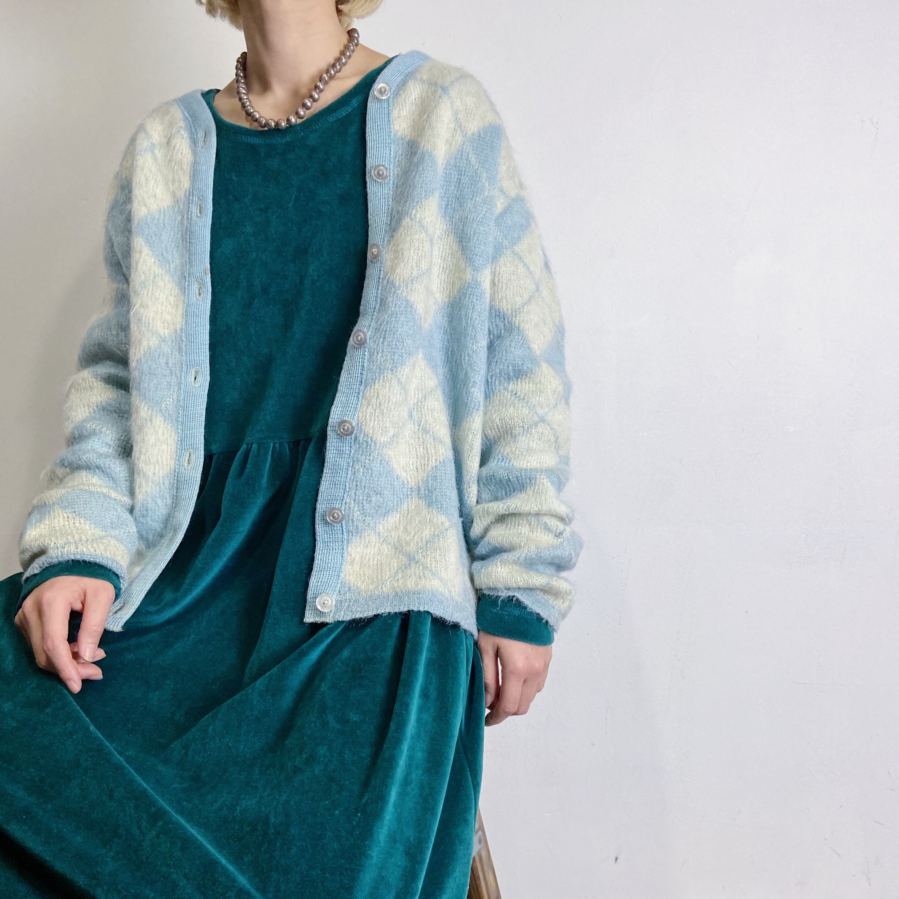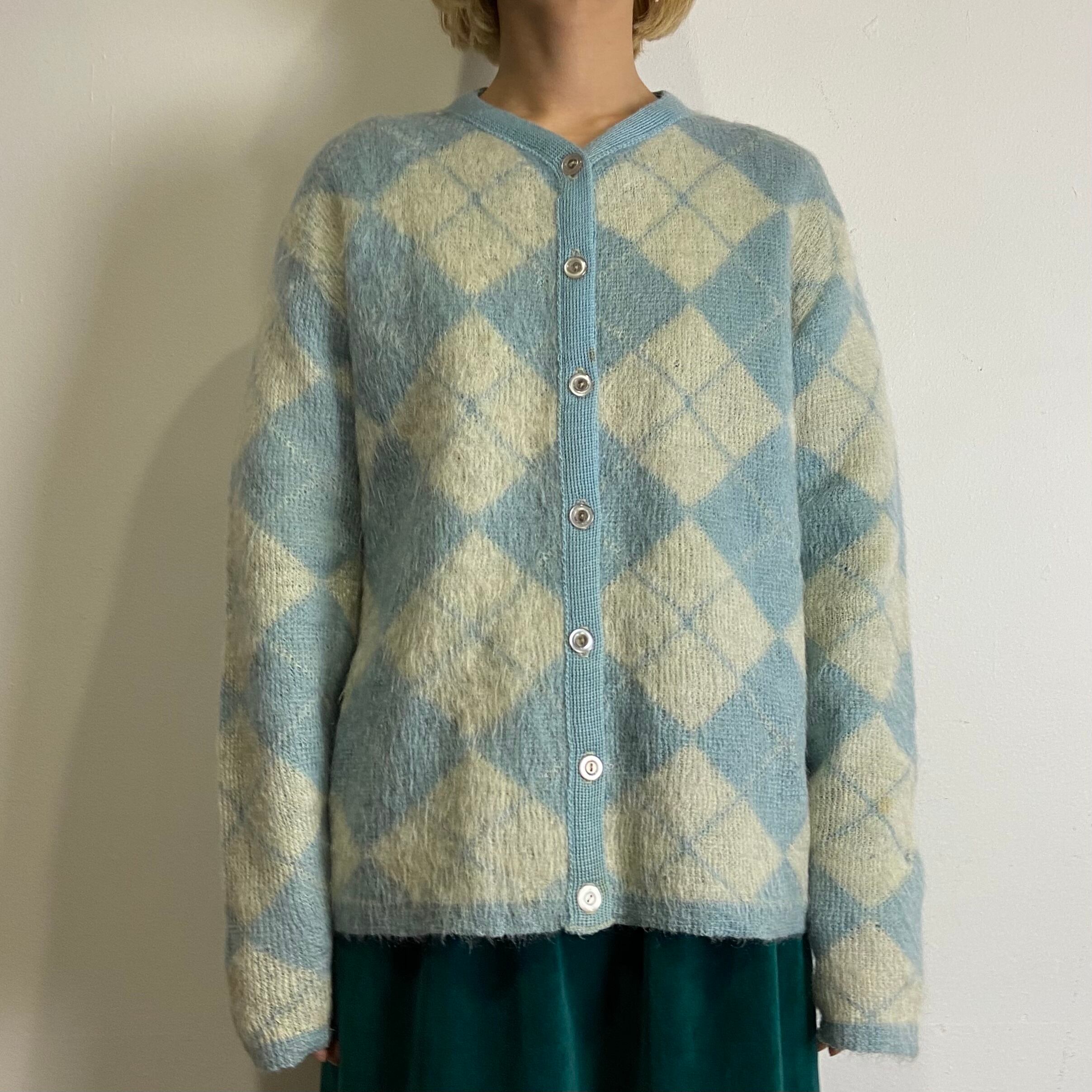 水色の爽やかな色合いが可愛い60年代のモヘアカーディガンです。