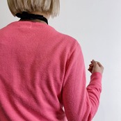 パッキリピンクカラーで、ポイントカラーに使えそうな一枚。