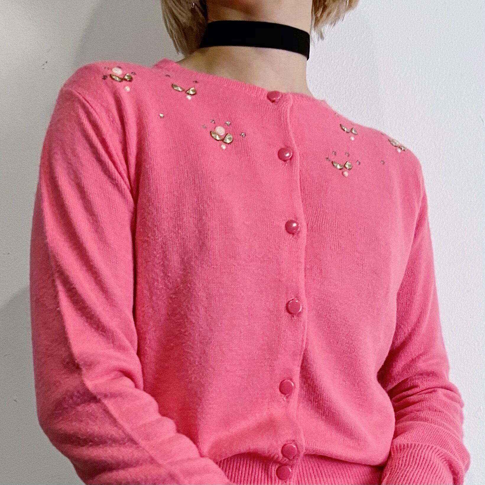 50sらしいデザインとコンパクトなシルエットで、前を閉めてトップスとして着ても可愛いです。