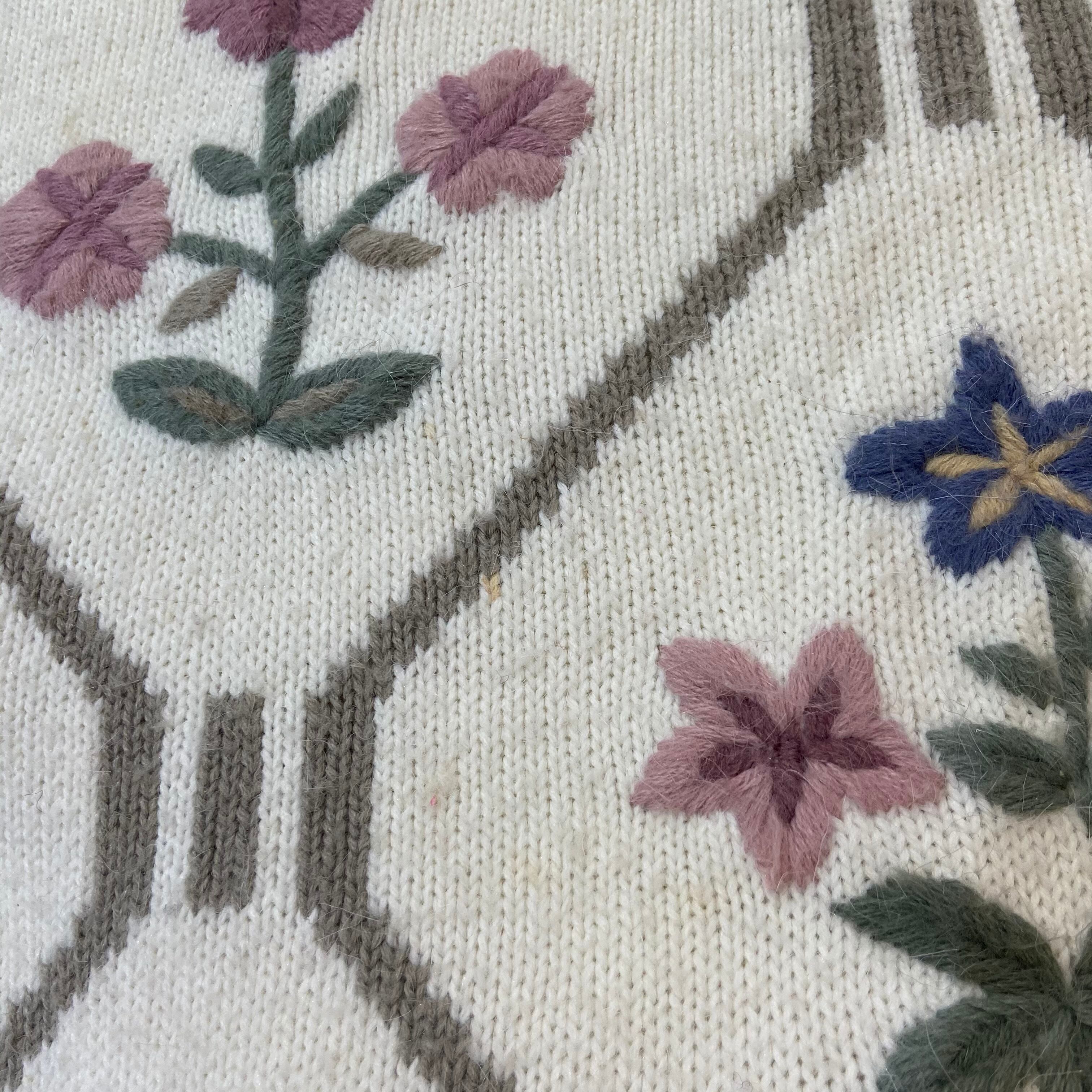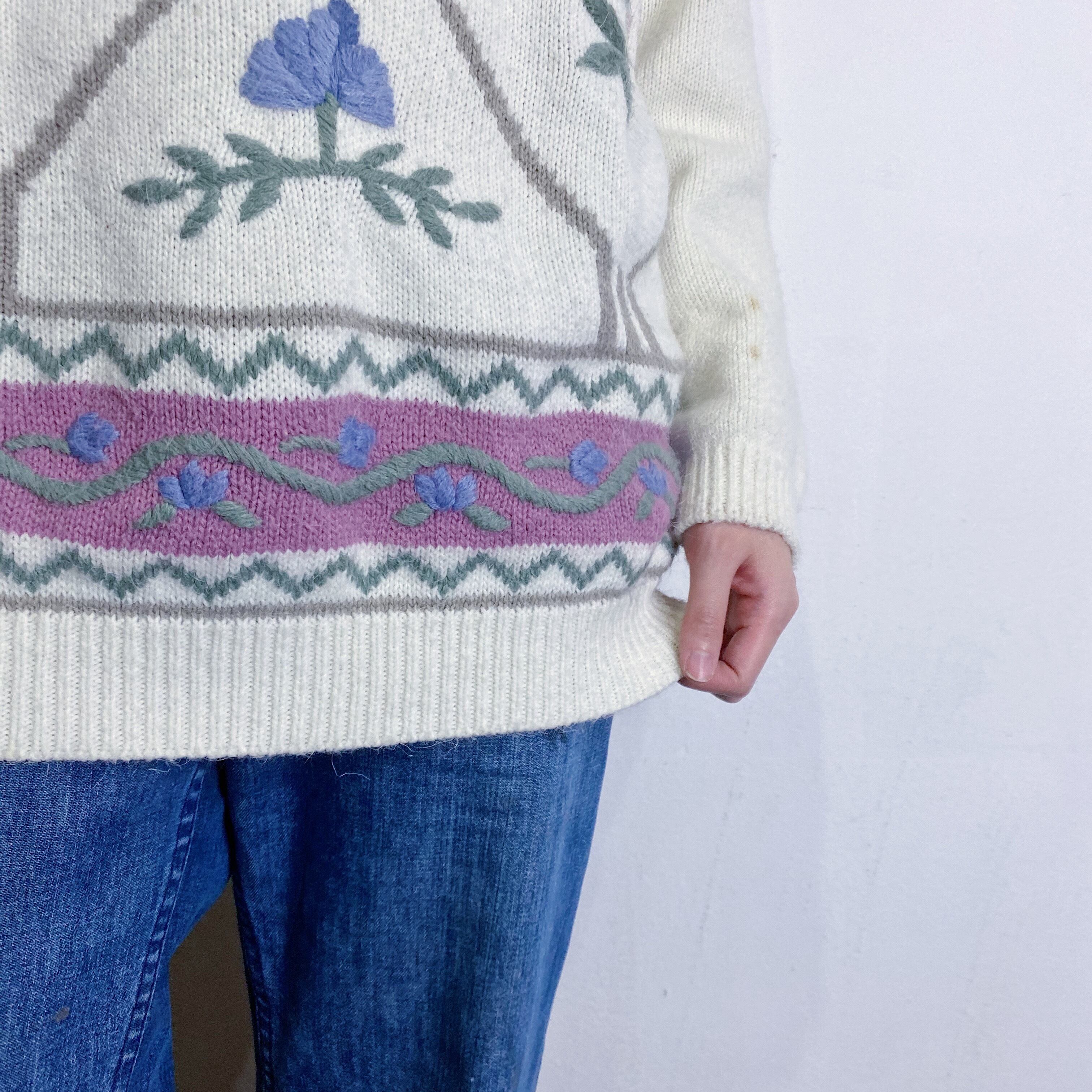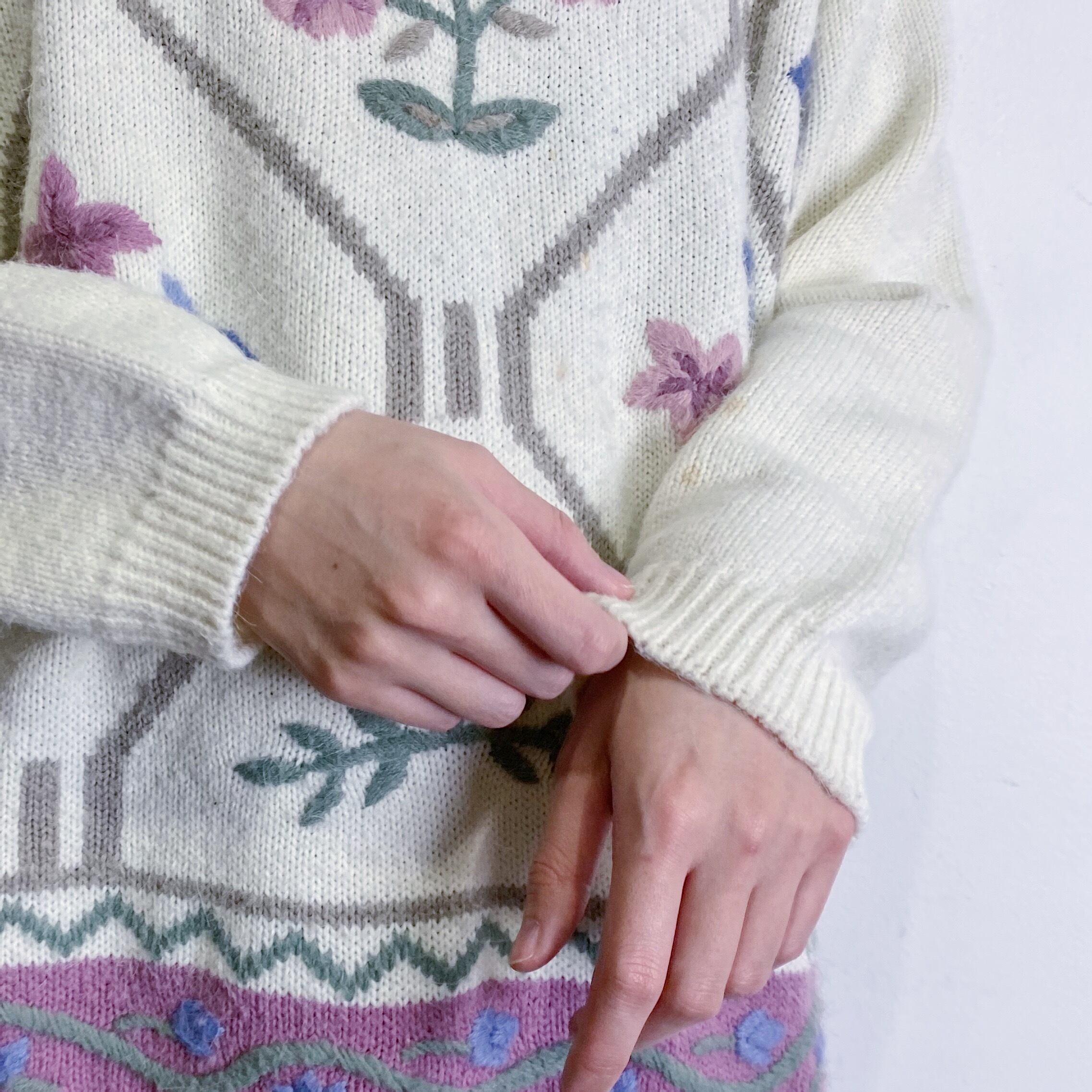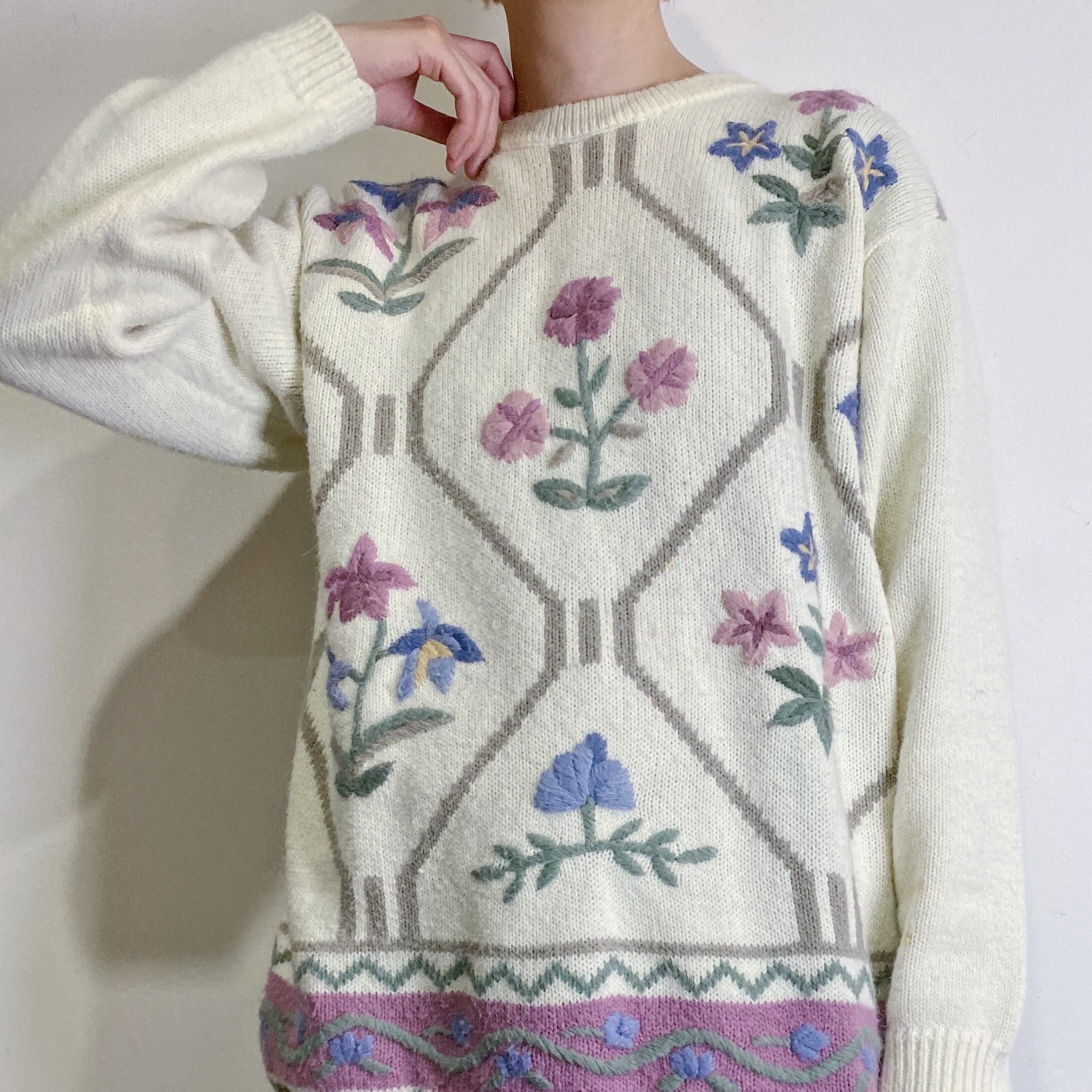 お花がニット糸で刺繍された可愛らしいセーターです。