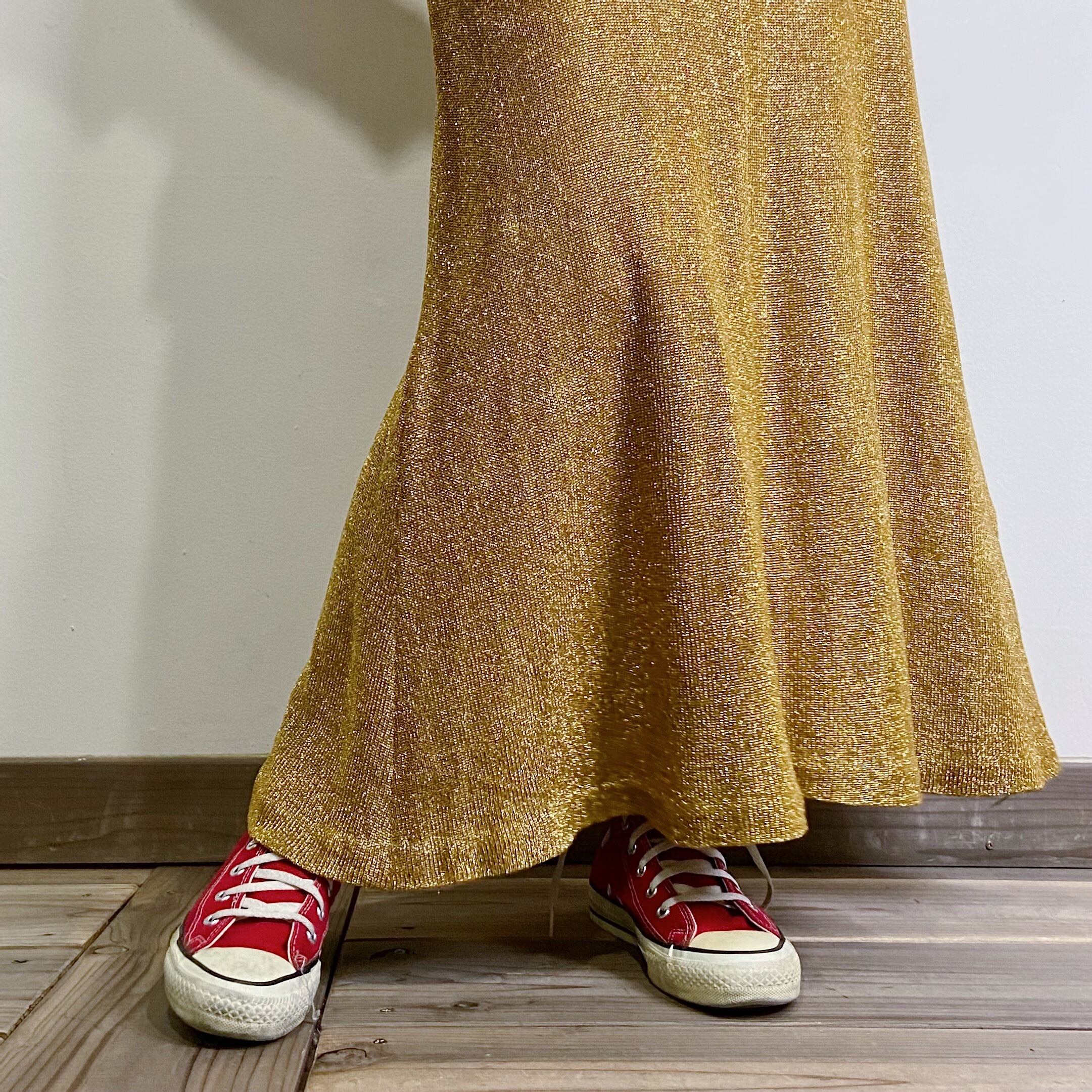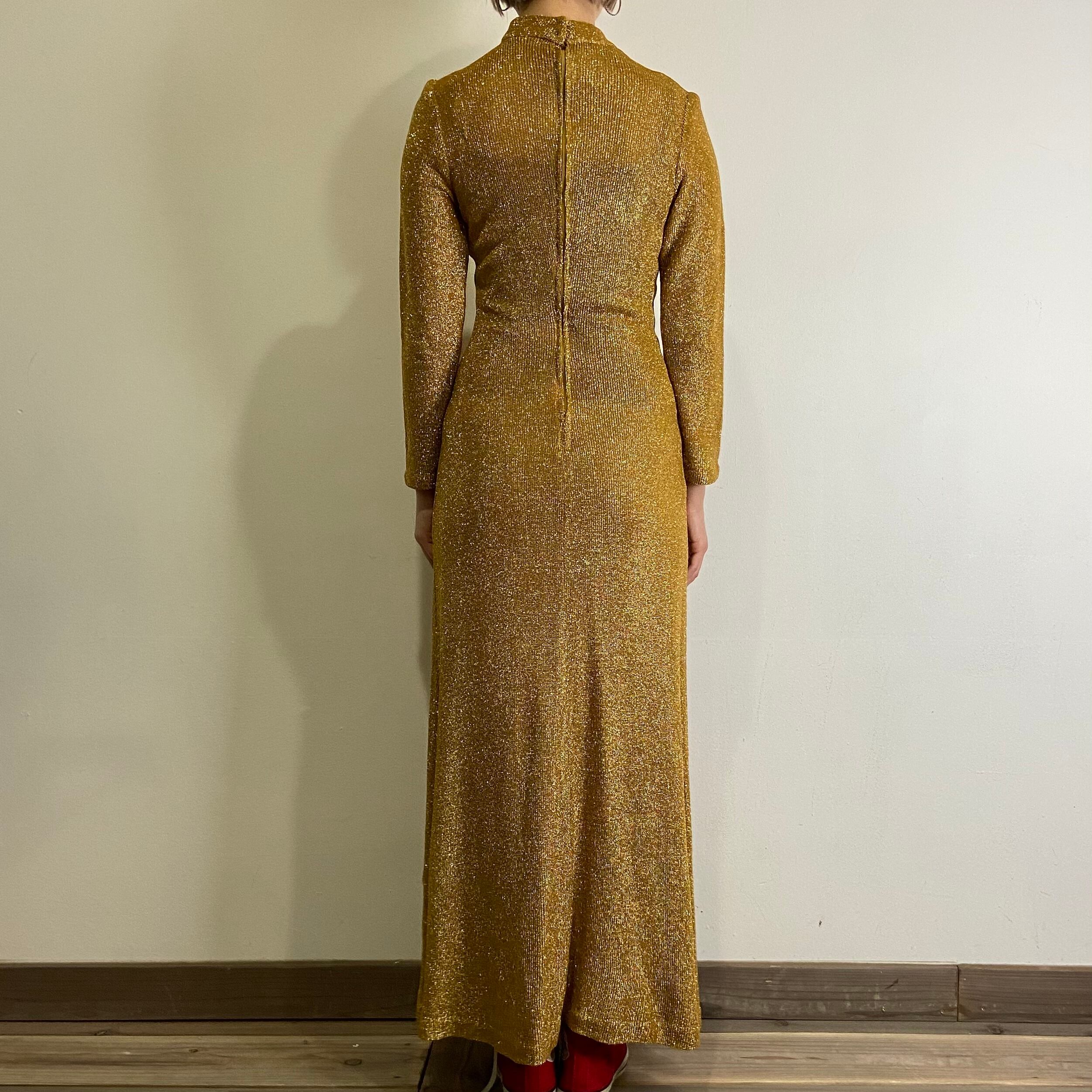 ゴールドのラメ糸が編み込まれた70年代のニットワンピースです。