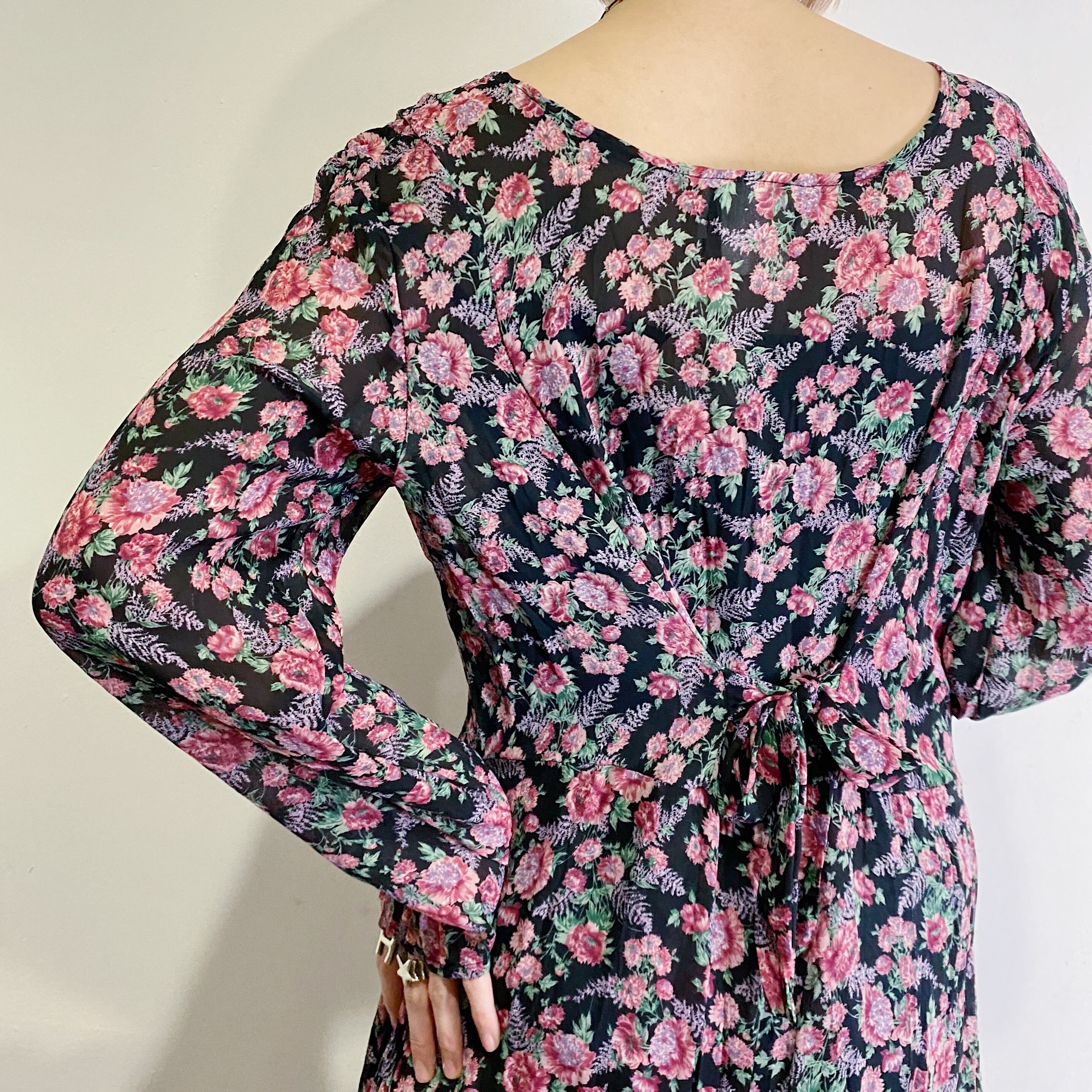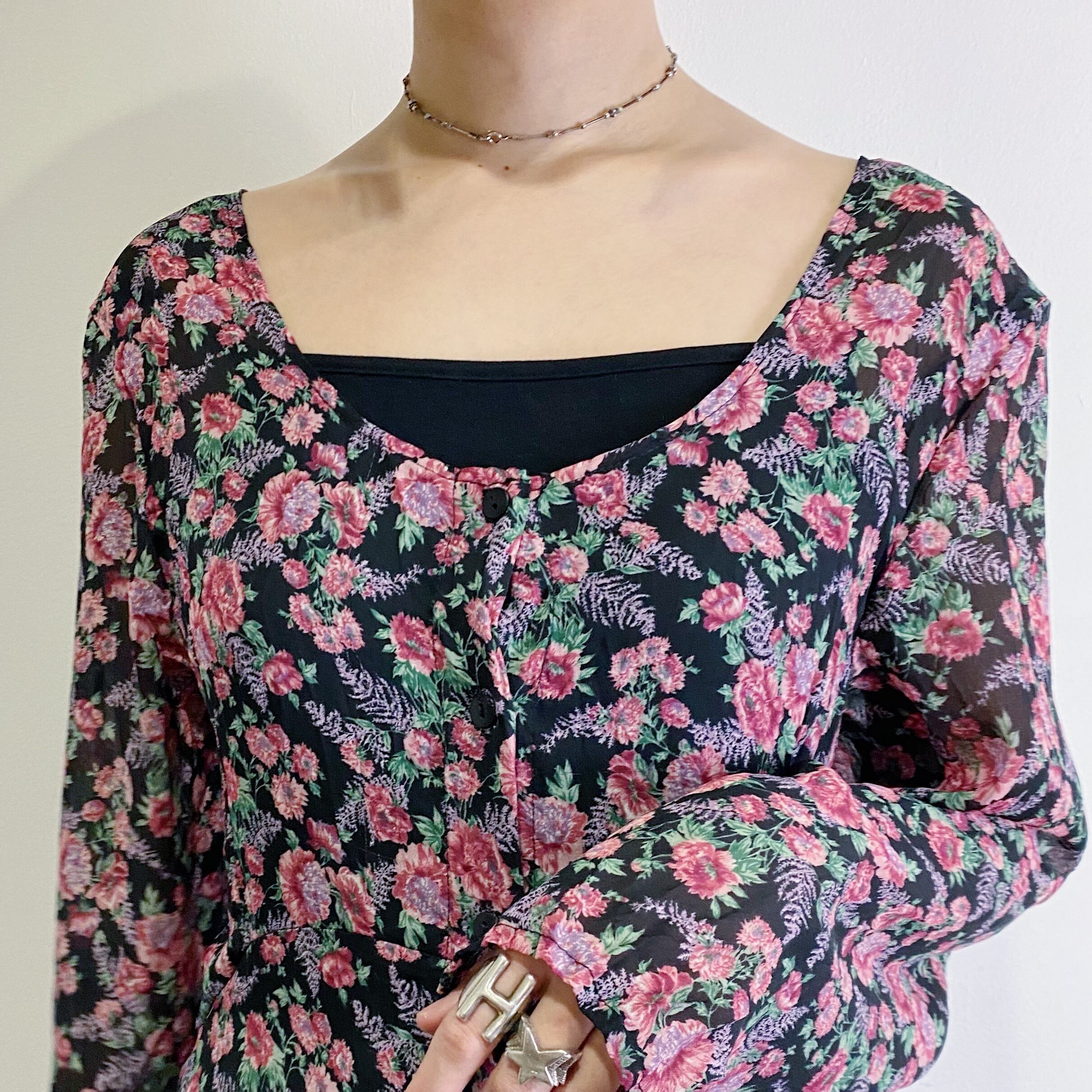 シースルーになっている生地感が可愛い花柄ワンピースです。