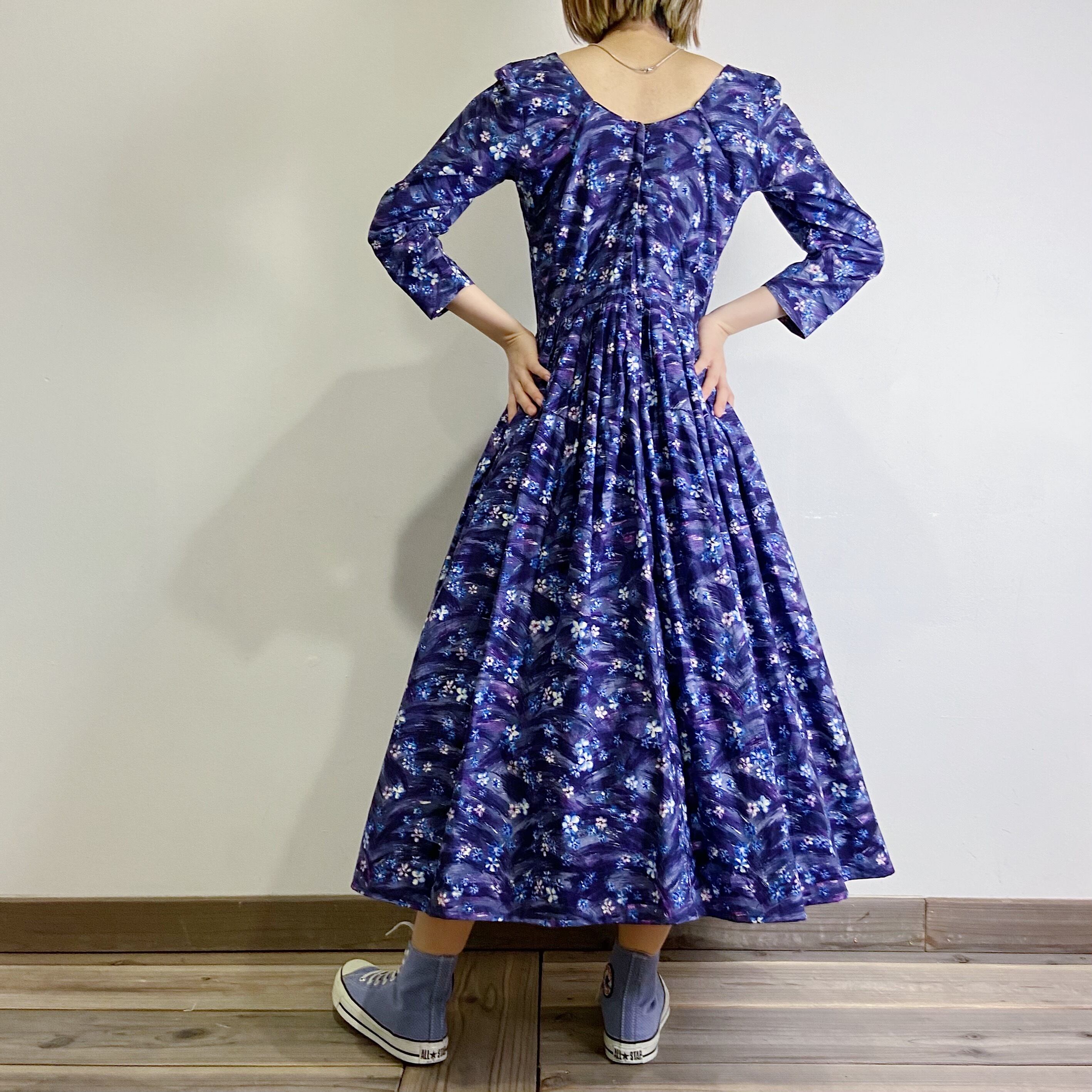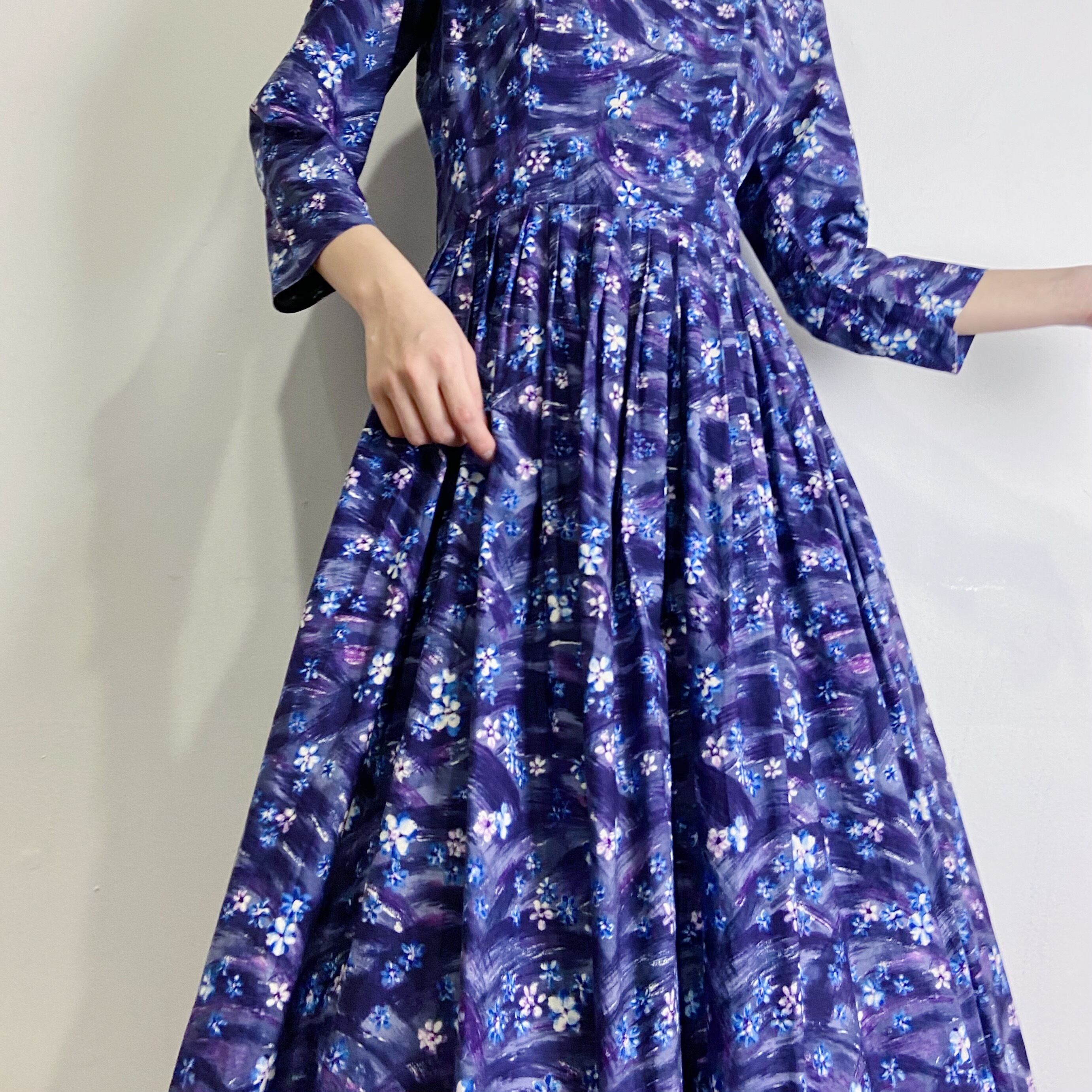 長めの丈にフィット&フレアのシルエットがとっておきに可愛い、50年代ワンピースです。