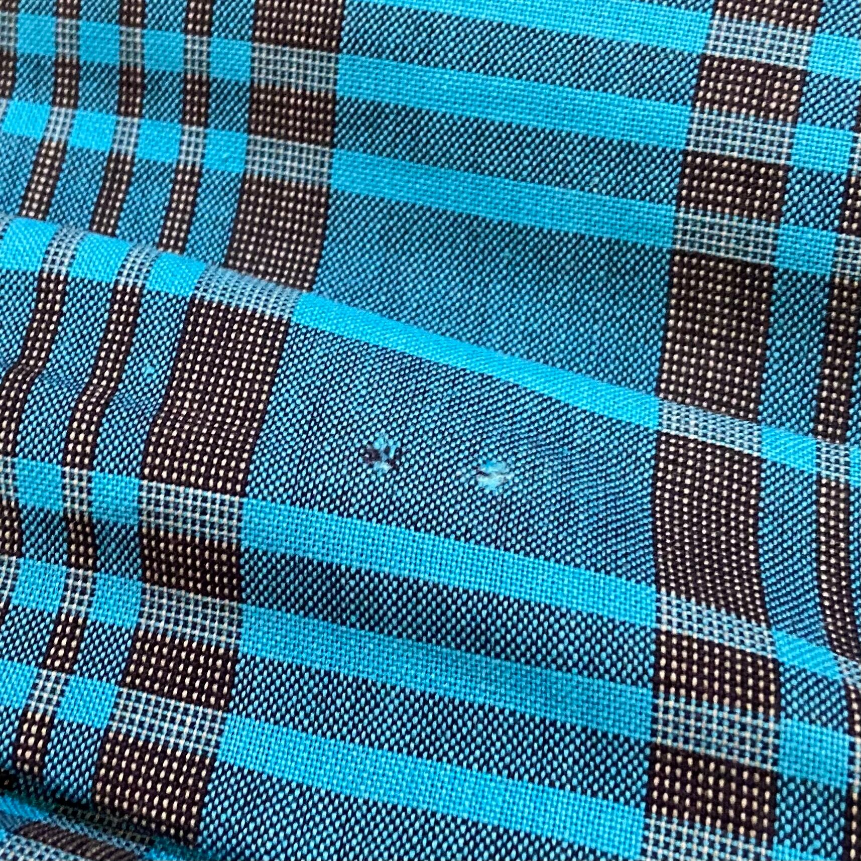 小さな穴を裏から接着芯でお直しした跡が見受けられますが、目立ちません。