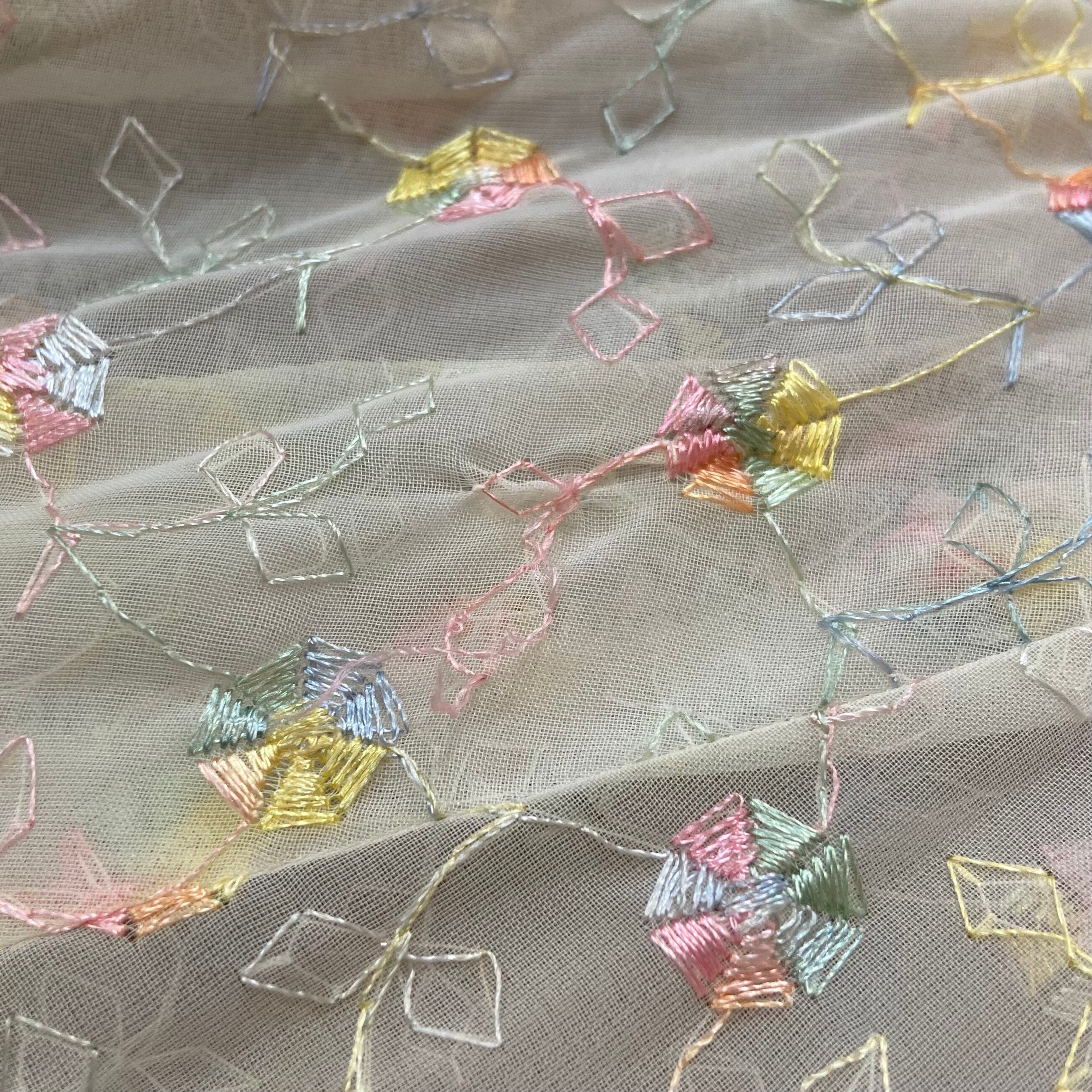 オーガンジーにレインボーの刺繍が素敵な50年代のチューブトップワンピース。