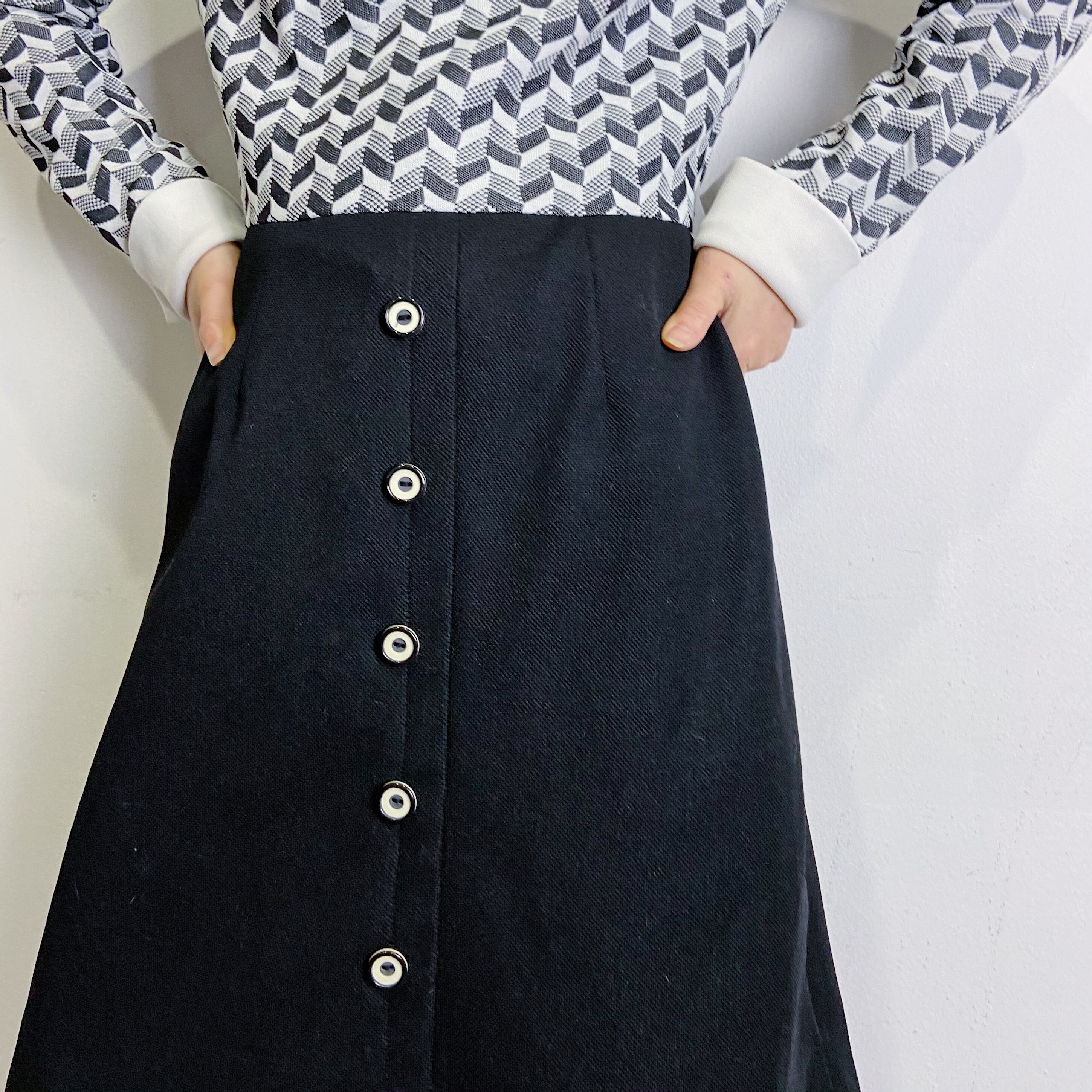 大き目の襟やカフス、ミニ丈が60年代らしいデザイン。