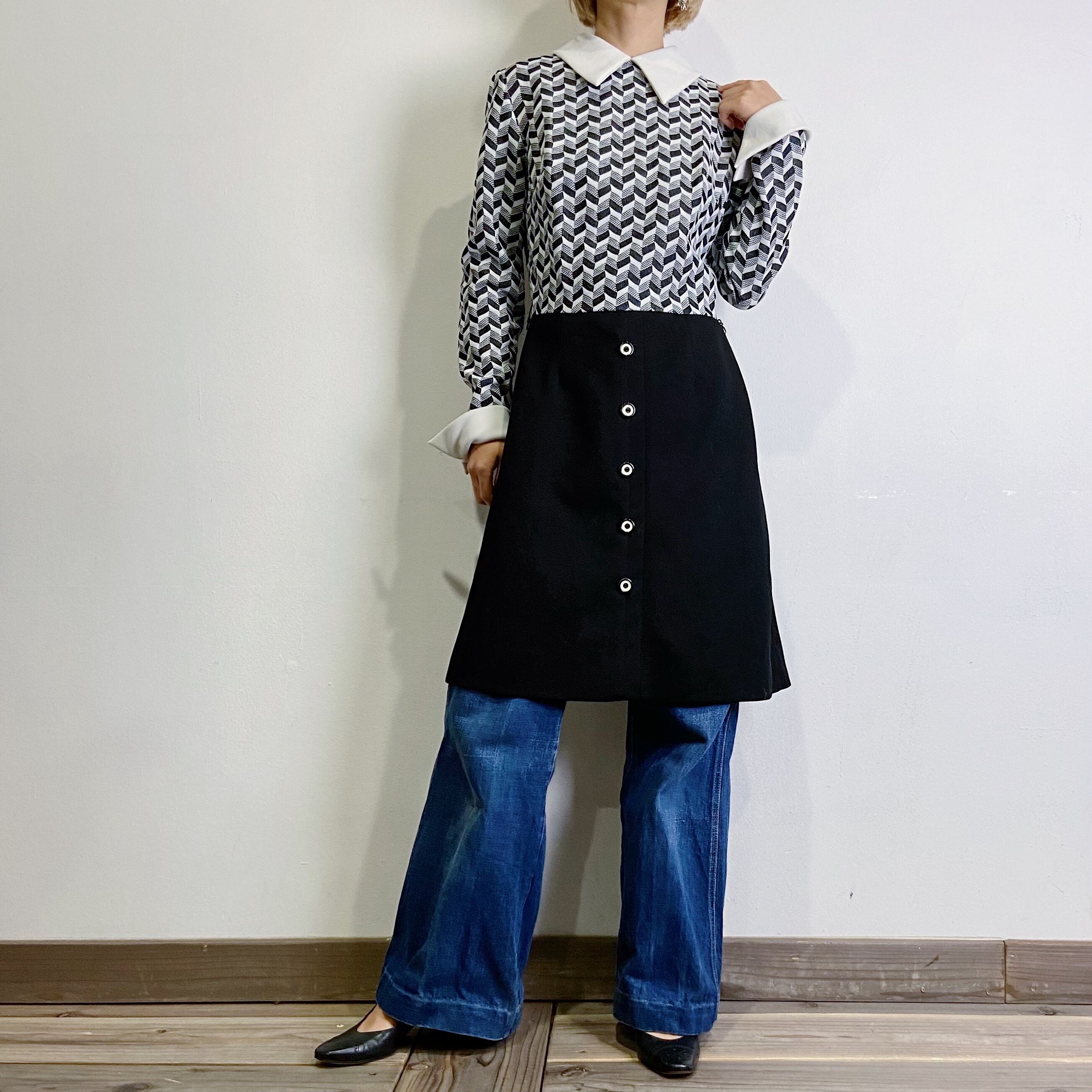 まるでセットアップのような、上下のデザインが違うワンピースです。