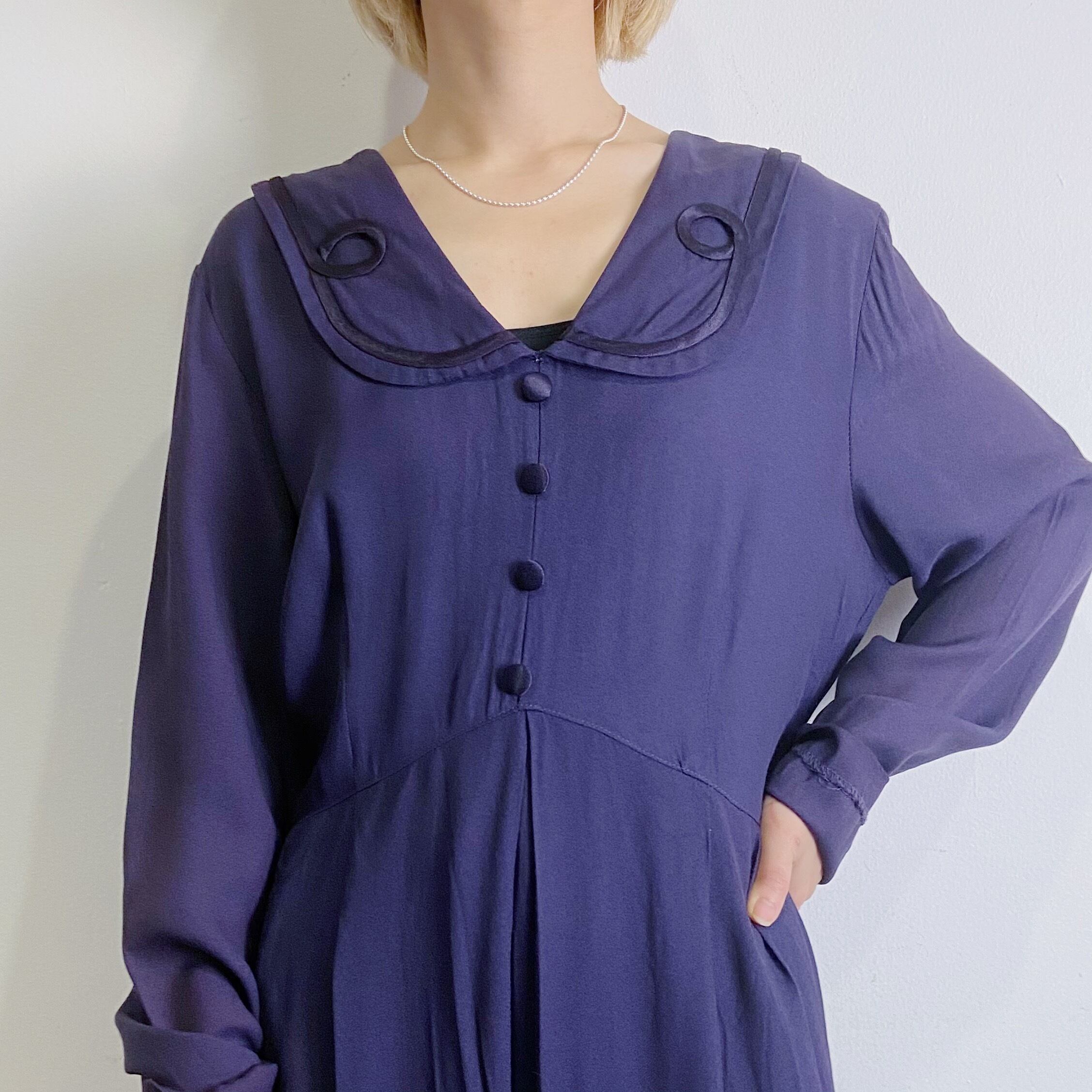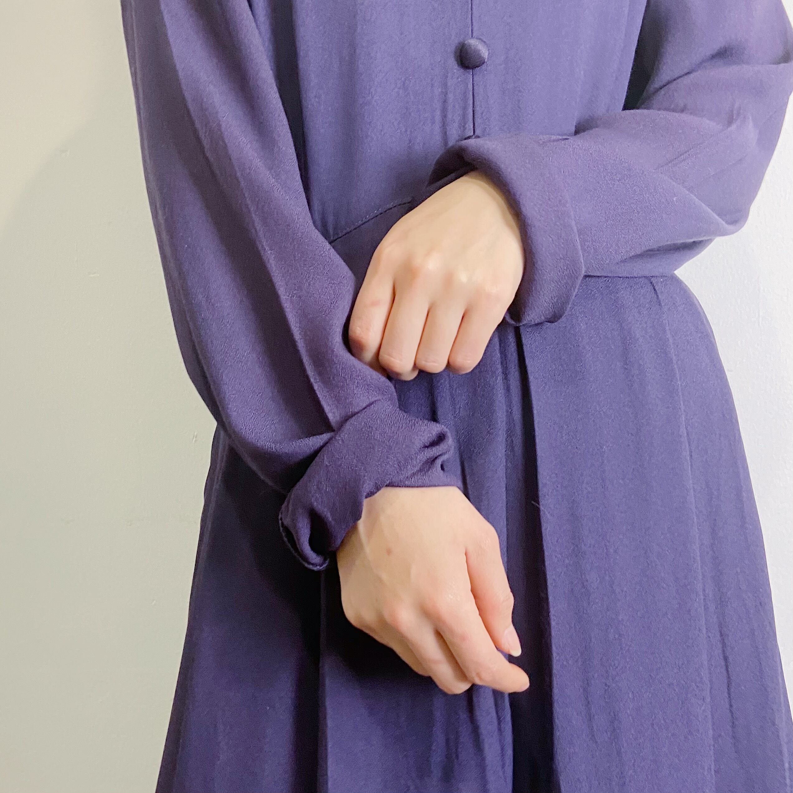 大きな襟に深い紫色がシックで可愛いワンピースです。