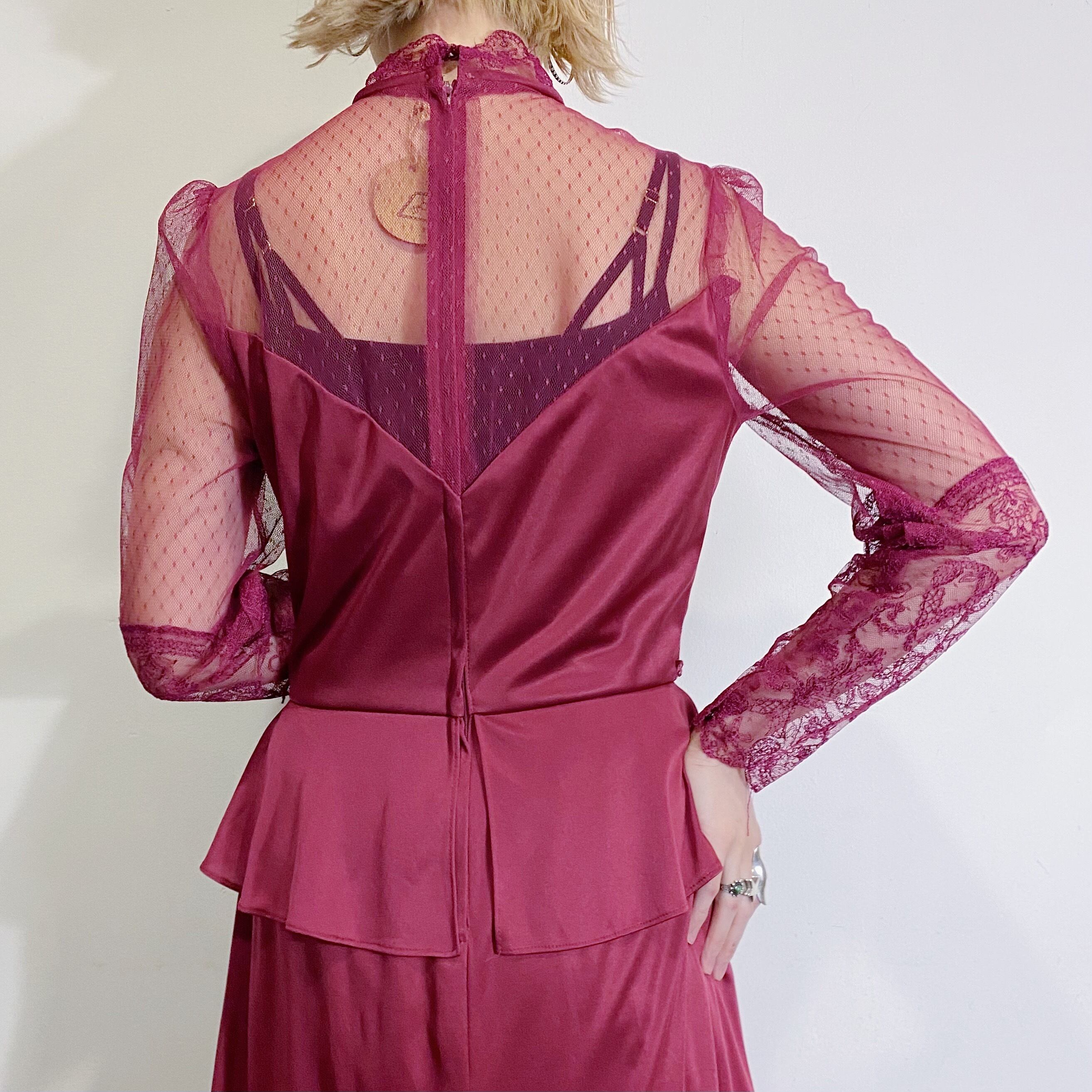 バーガンディーカラーにレースが素敵な70~80年代頃のJC Pennyのワンピースです。