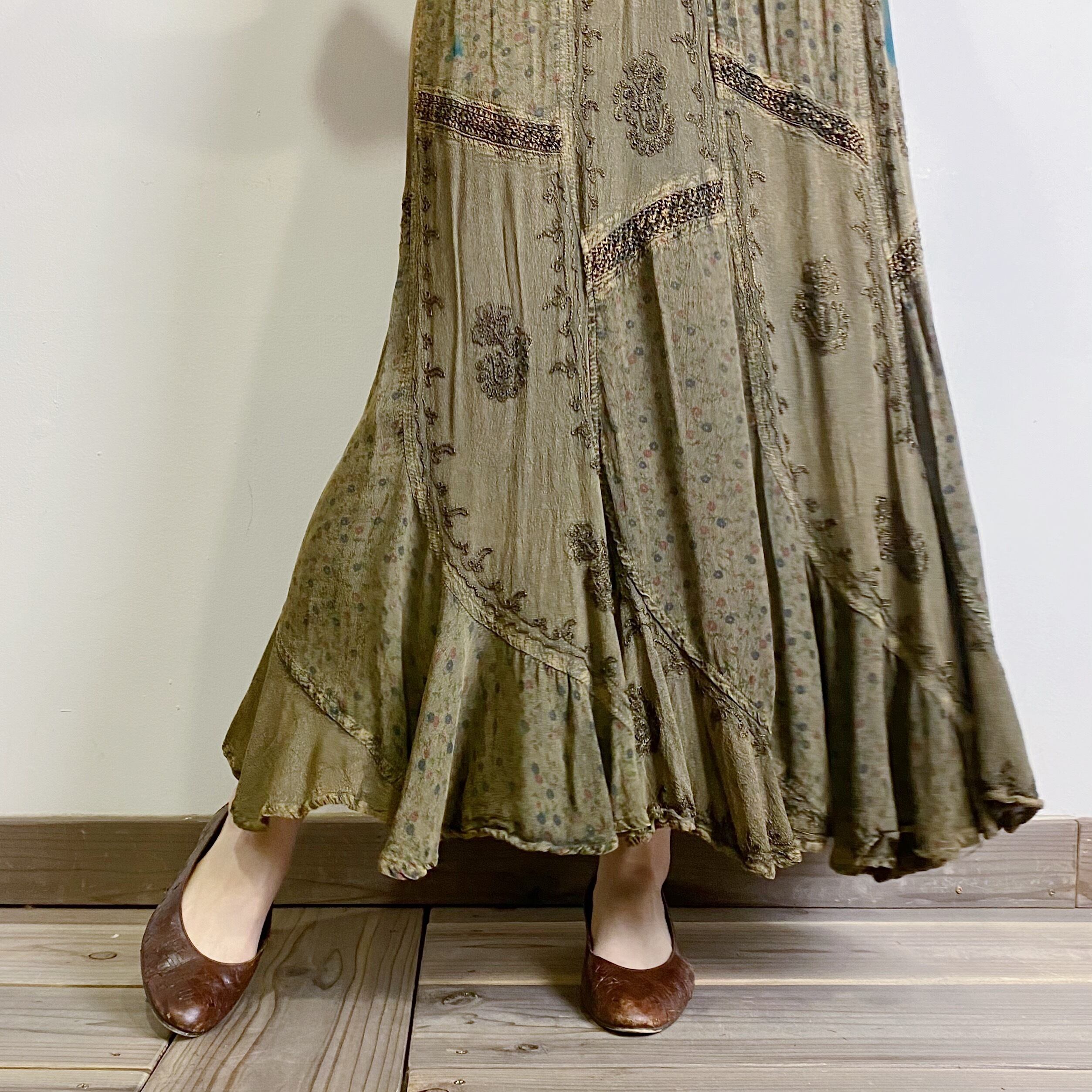 オリーブ色にフルレングスで、大人かわいく着こなせる一枚。