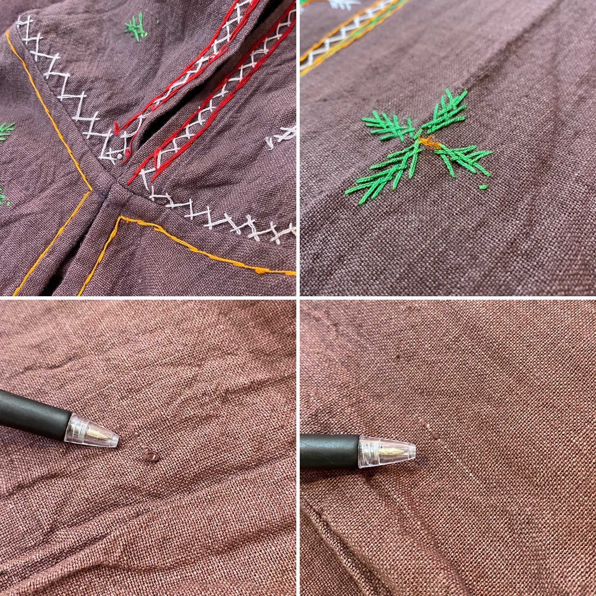 また、刺繍糸の軽いホツレ、軽い引っ掛かりの跡等がいくつか見受けられますが、いずれもあまり気にならない程度かと思われます。