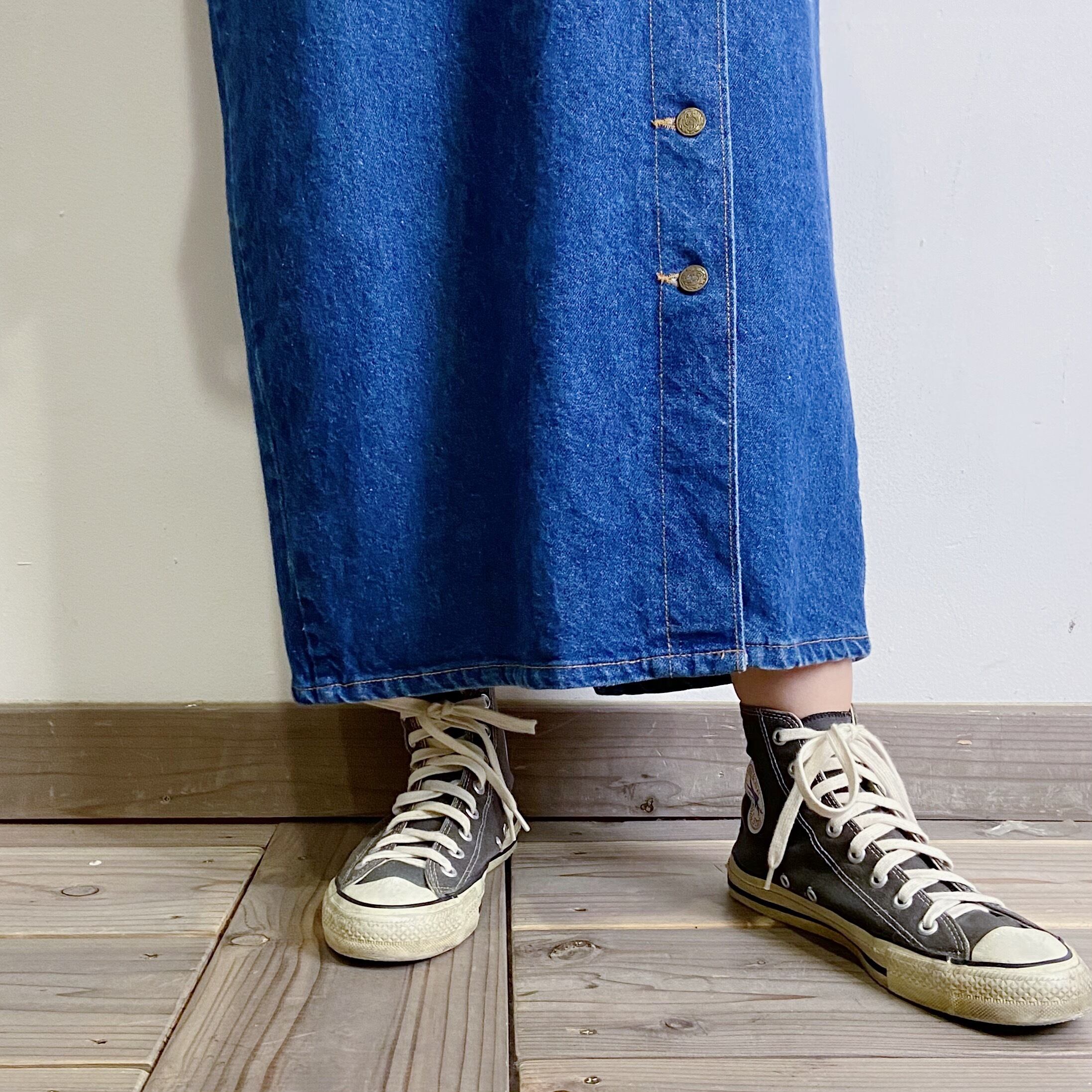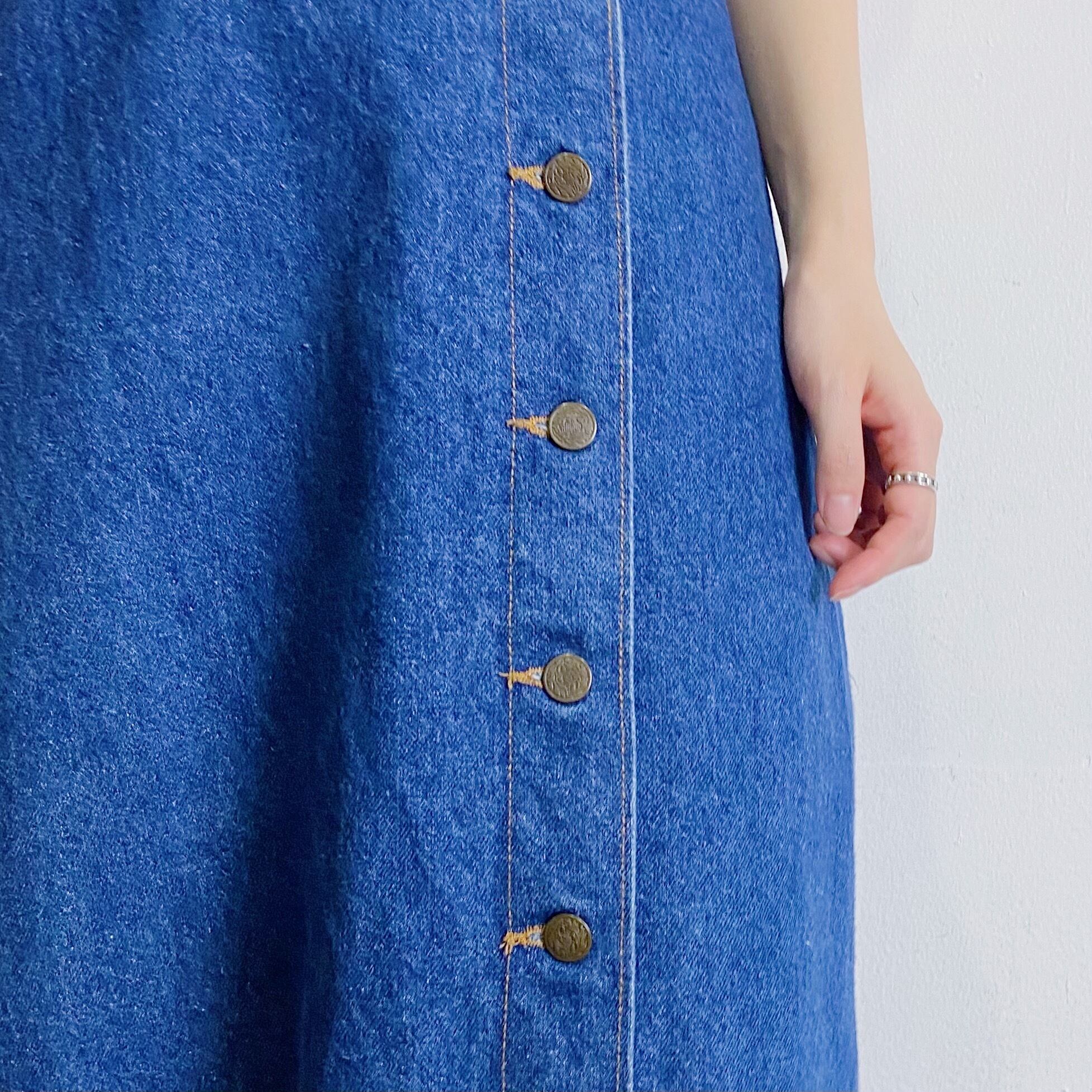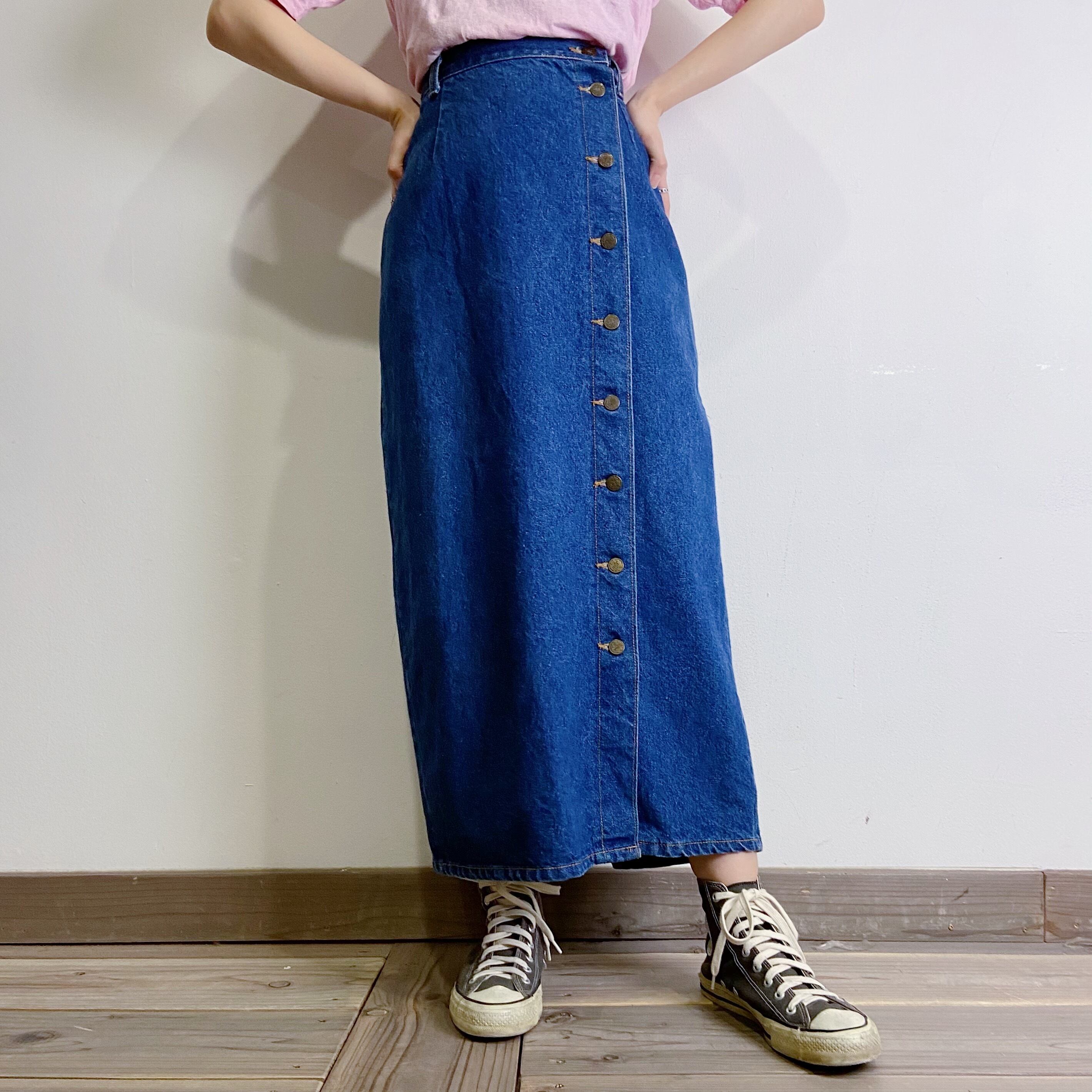 濃い色のデニムが可愛いIラインシルエットのスカートです。