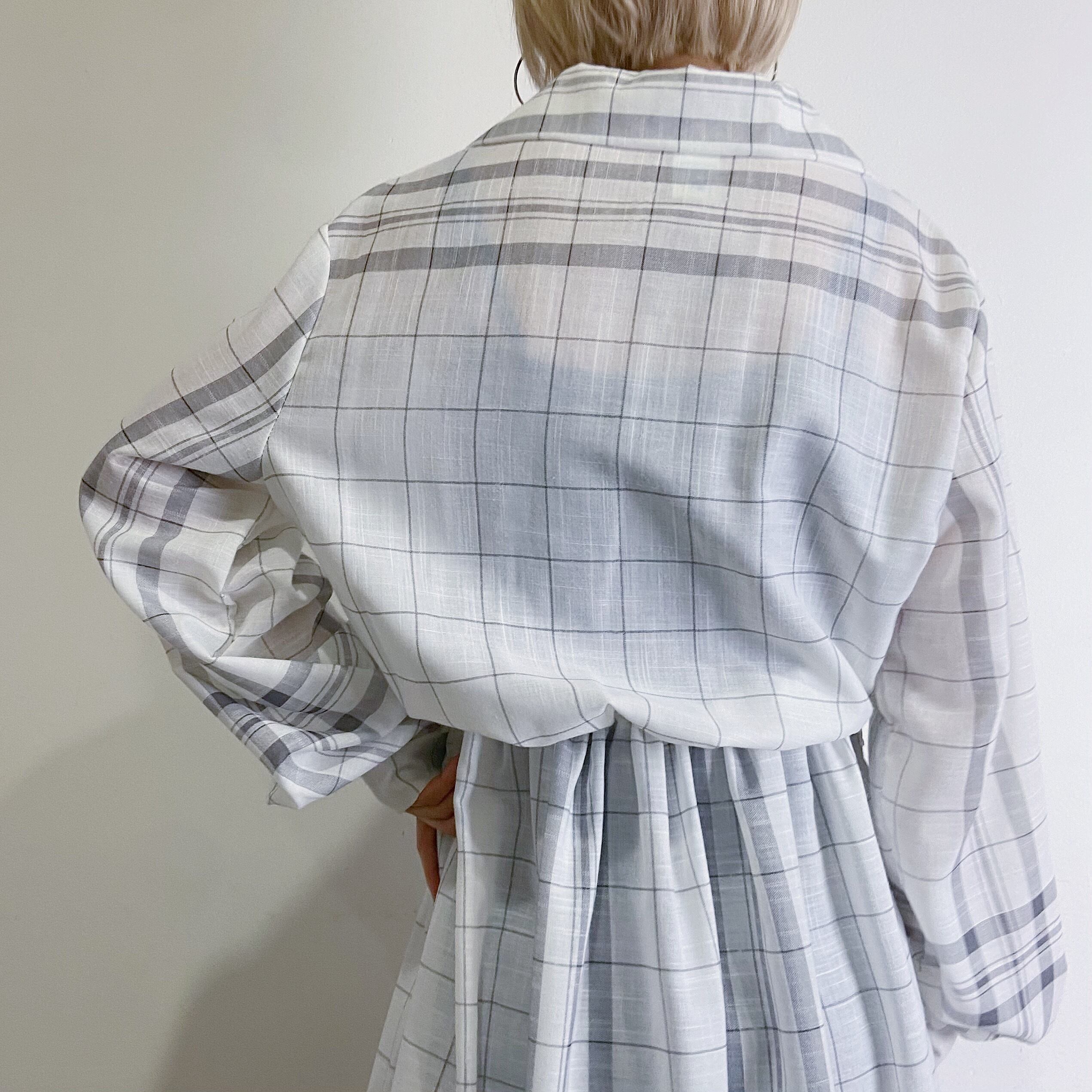 白とグレーの色合わせが可愛い、80年代のチェックワンピースです。