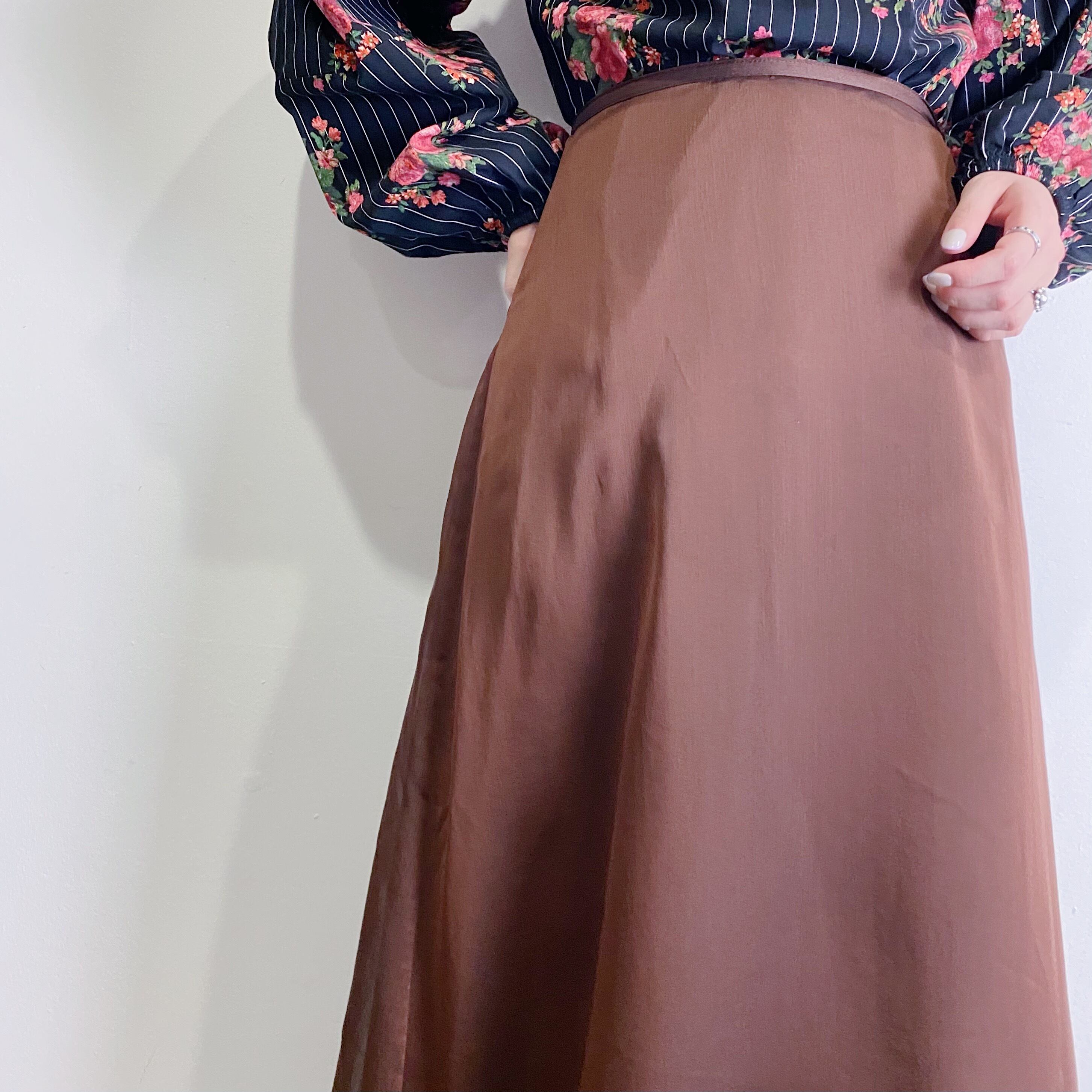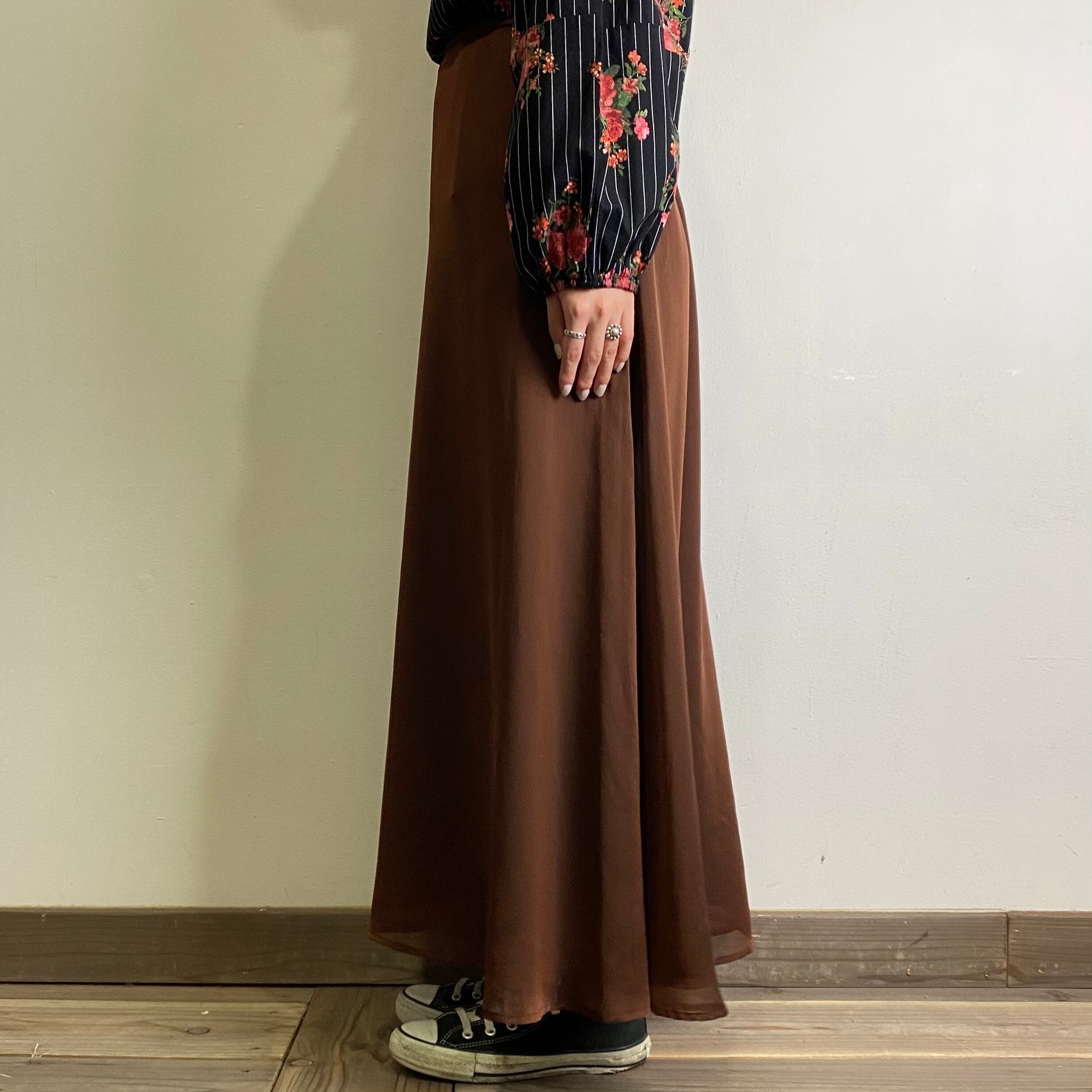 シアーな素材が可愛いこっくりとしたブラウンカラーのロングスカートです。