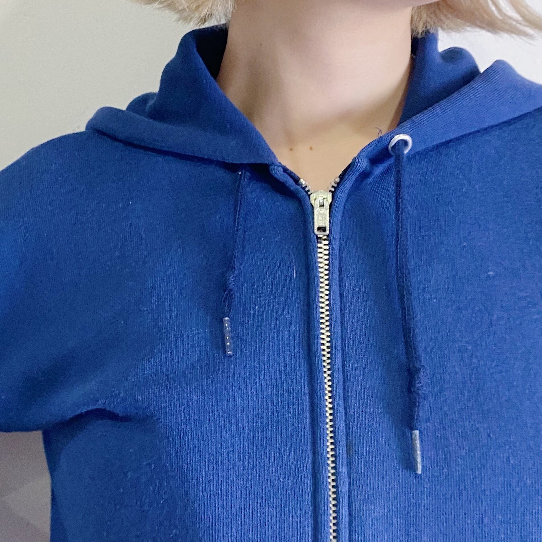 紺色の、使い勝手が良さそうなジップアップパーカーです。