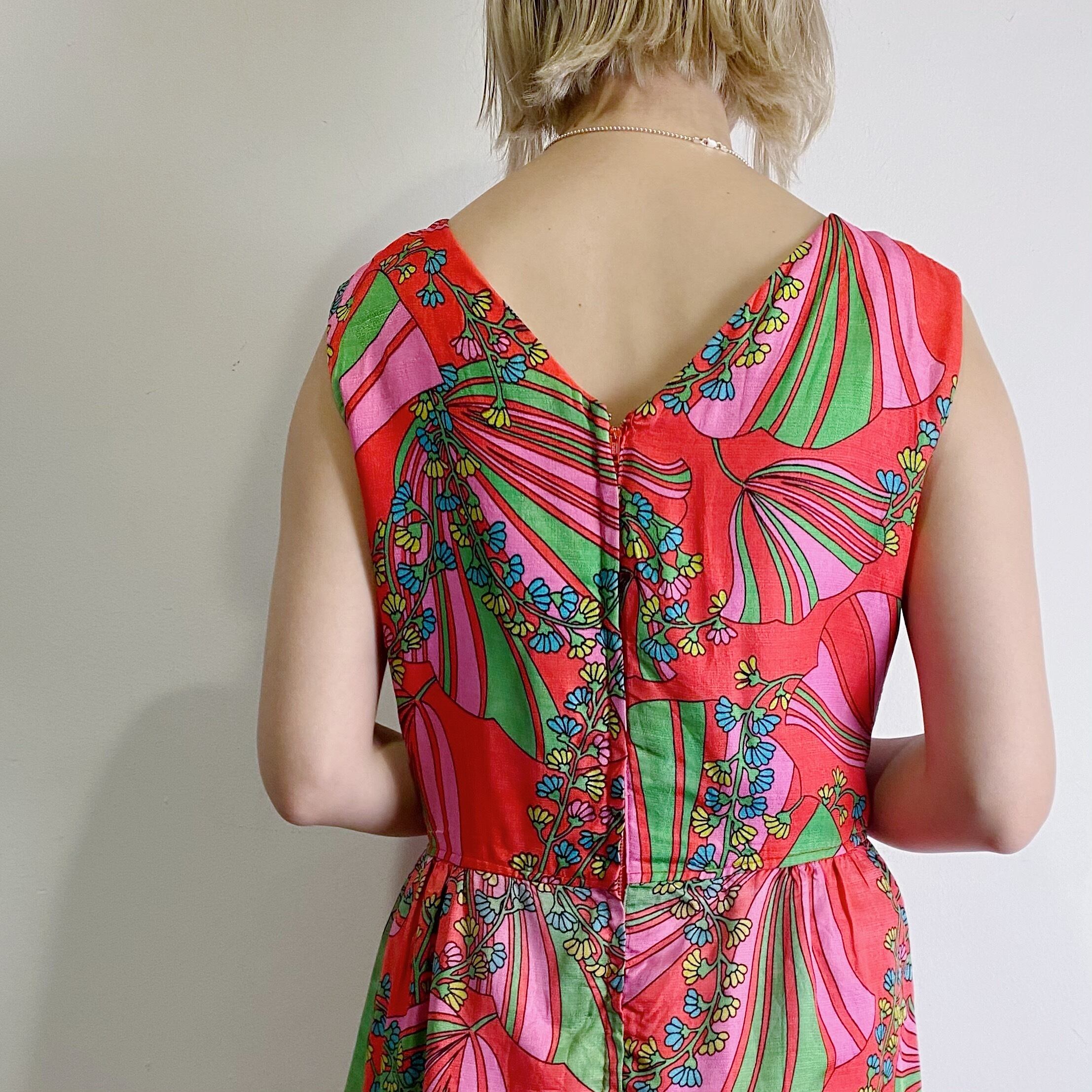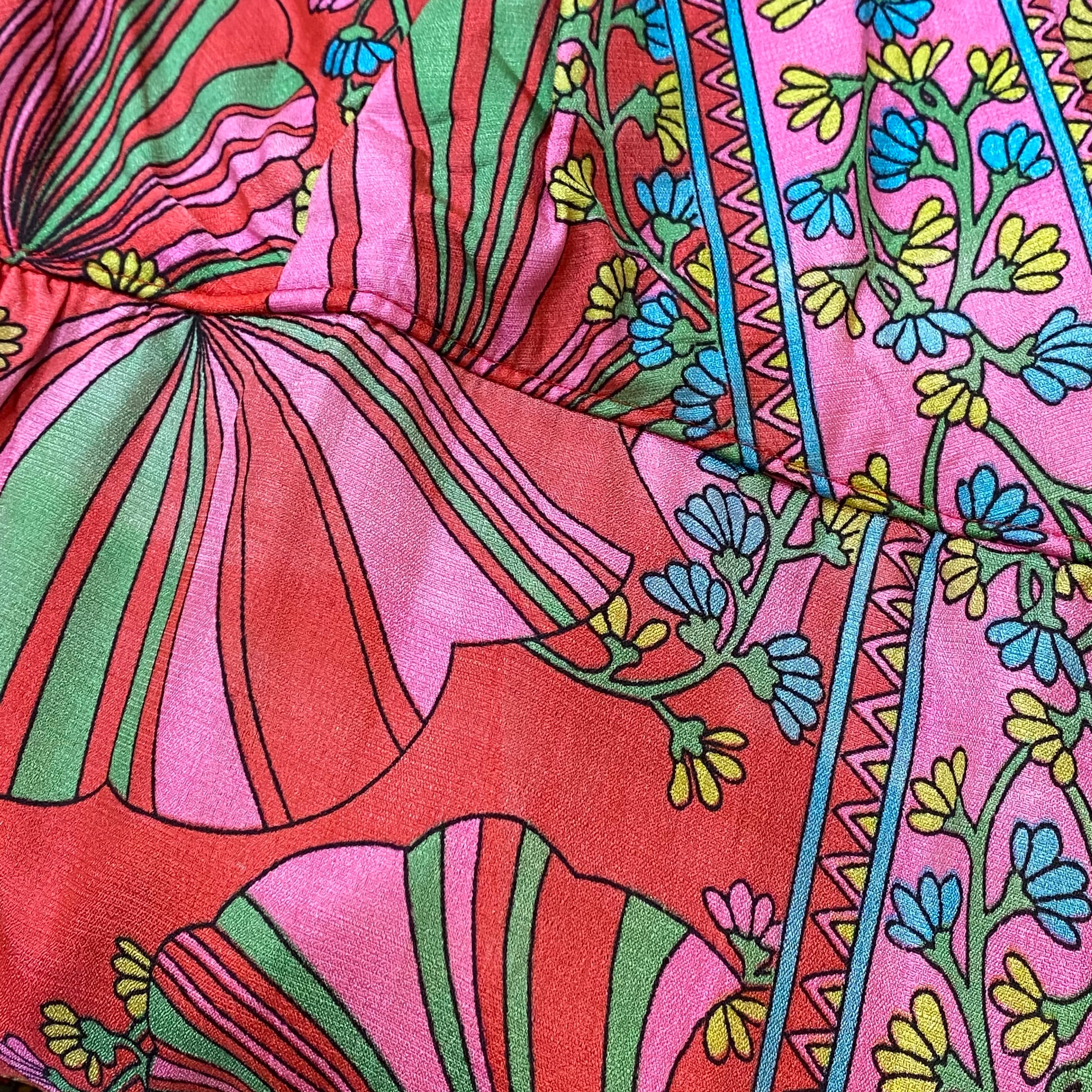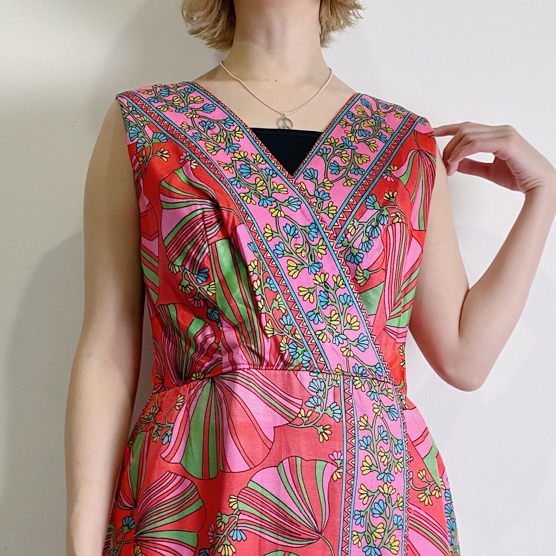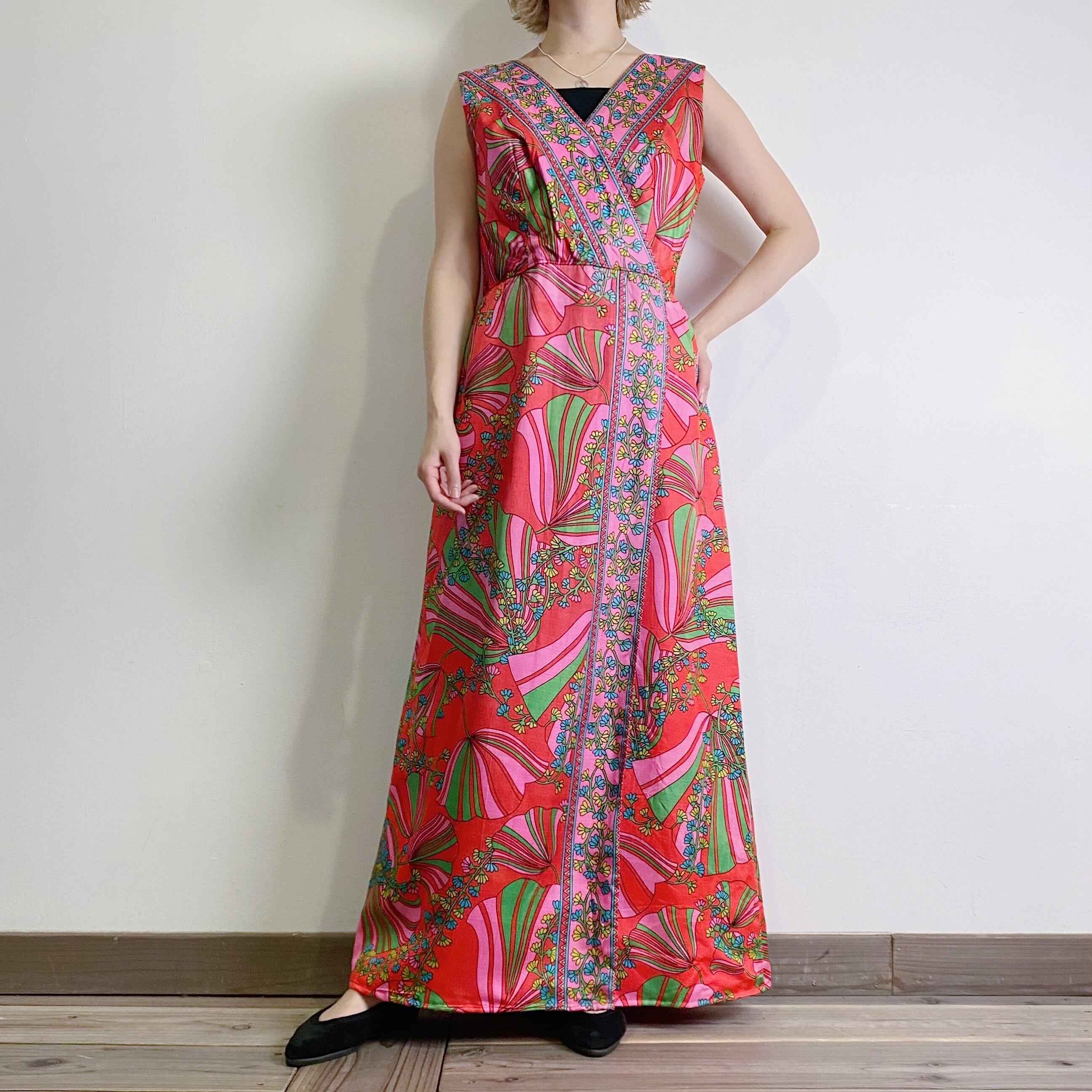 70年代の、サイケな色合いと柄が可愛いロングワンピースです。