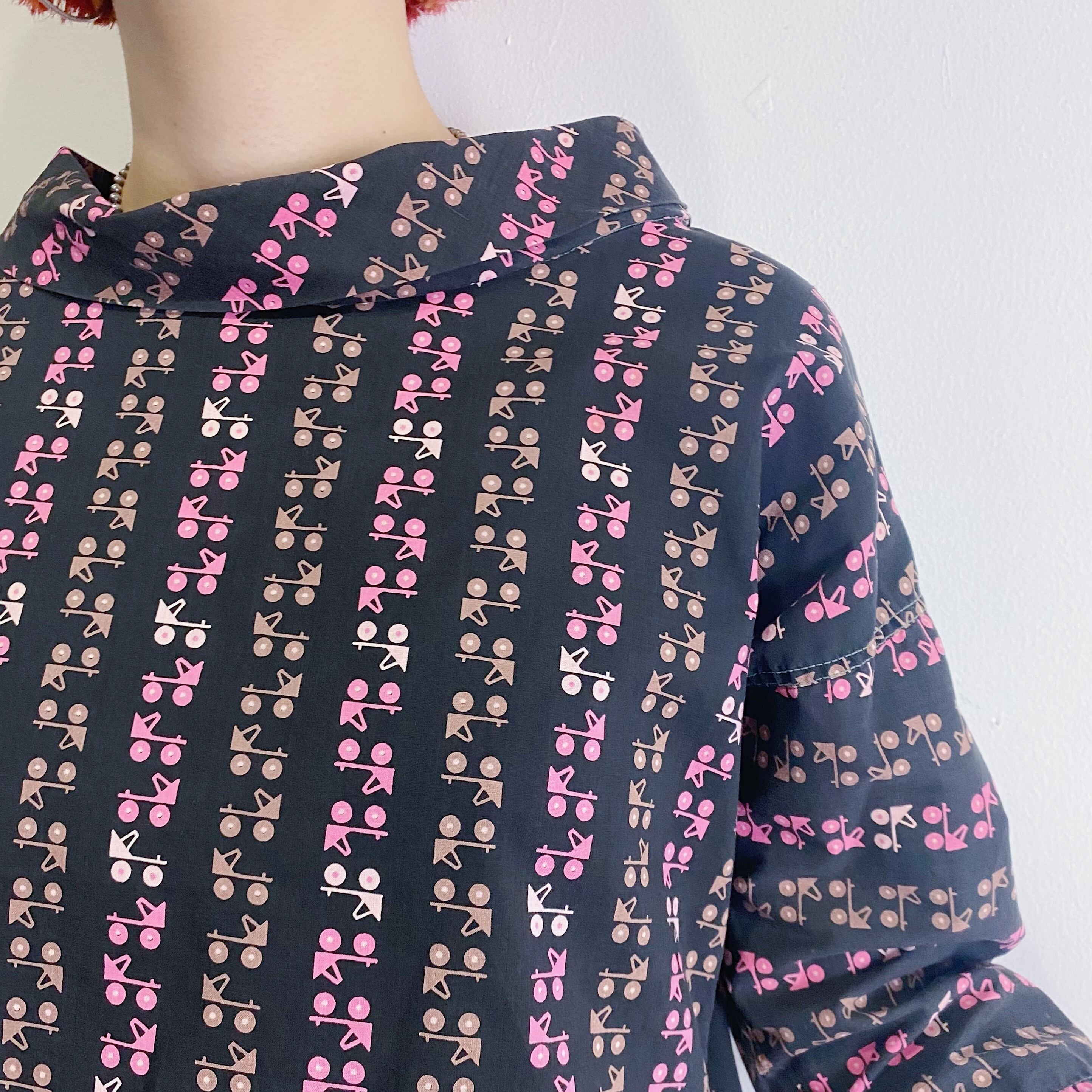 リアカーのようなプリントがキュートな50年代のトップスです。