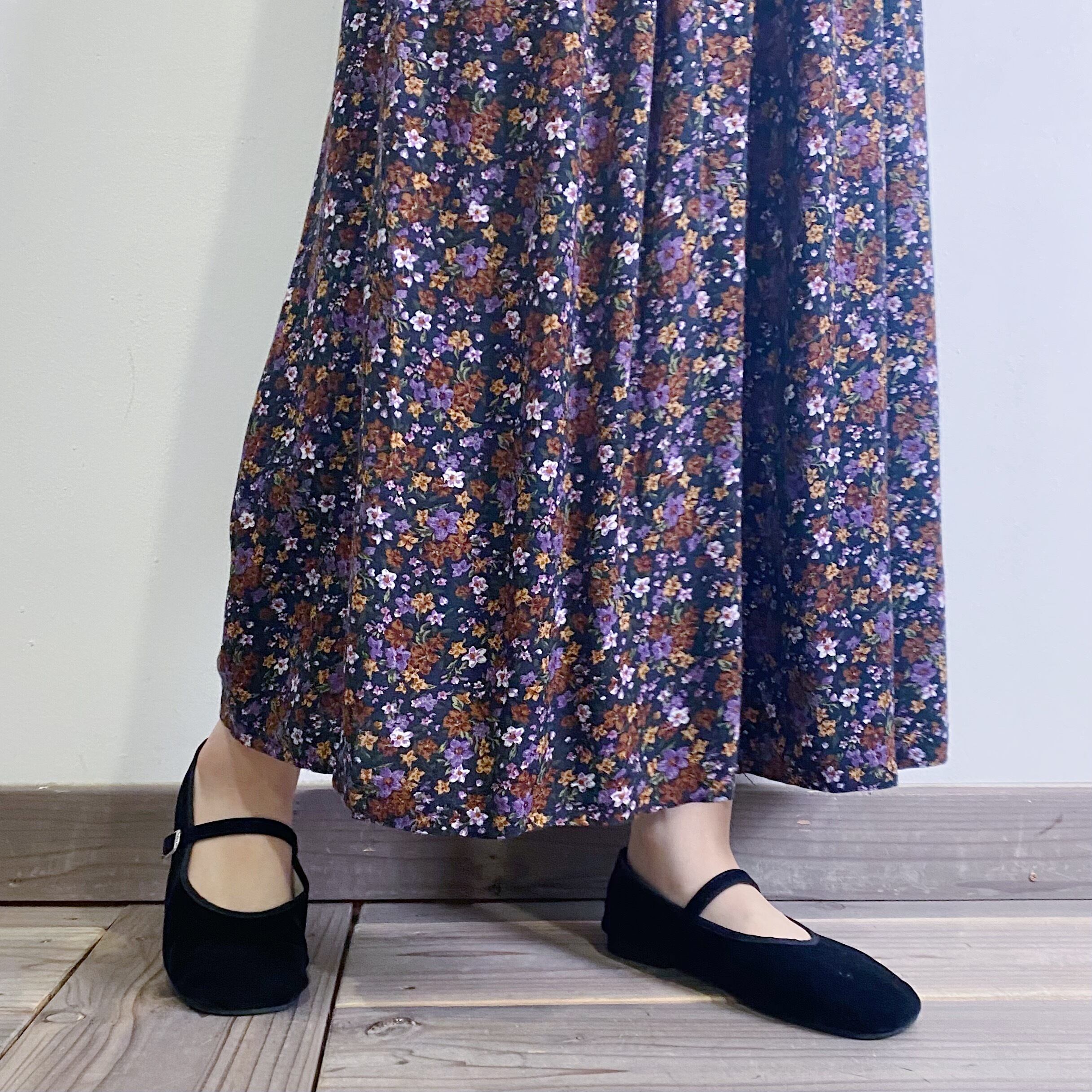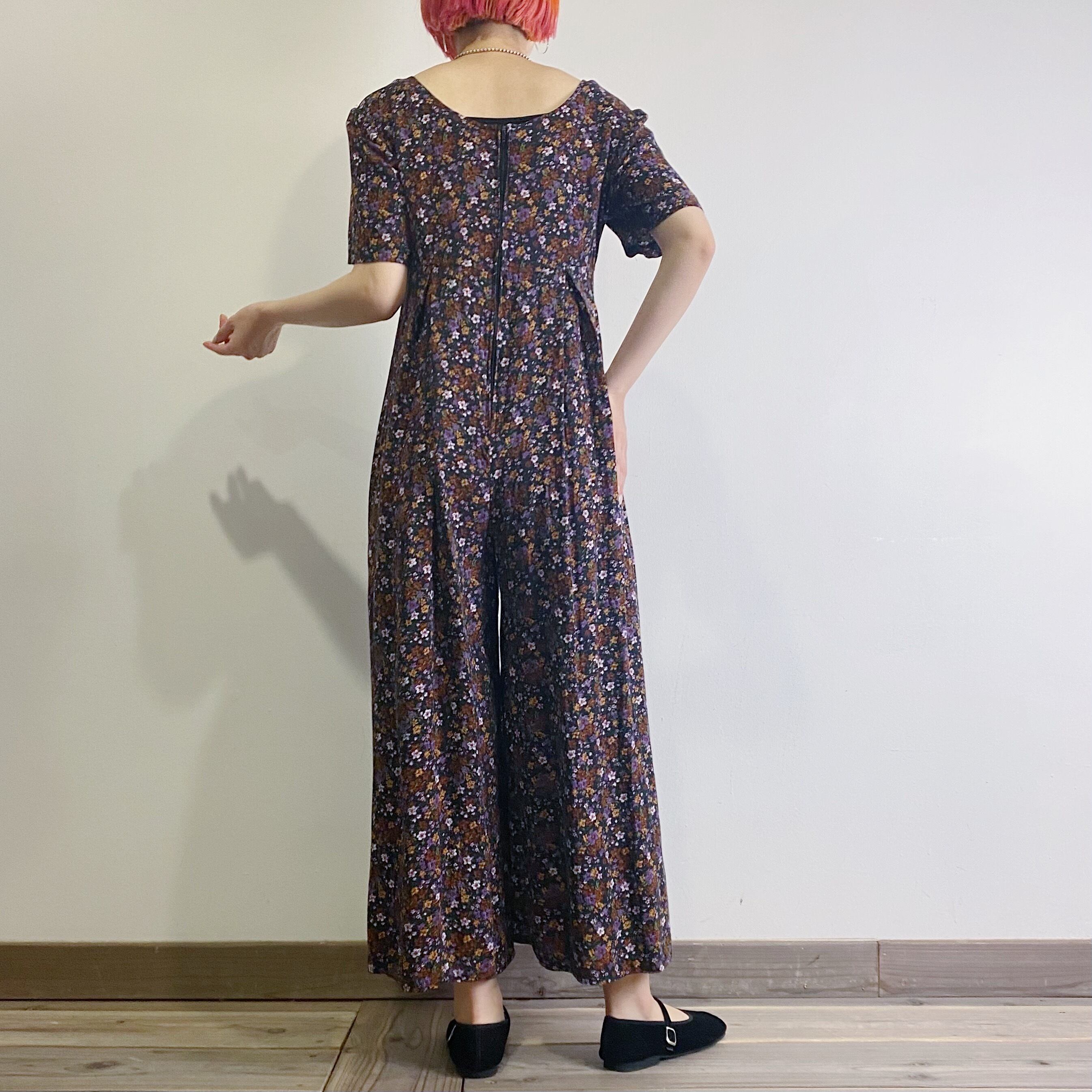 黒ベースに小花柄が可愛いレーヨン素材のジャンプスーツです。