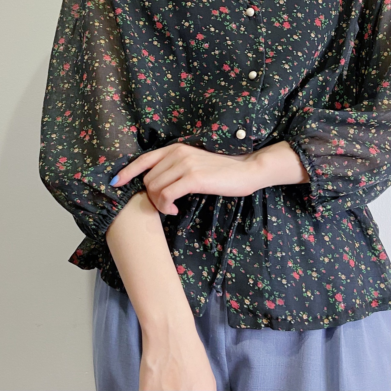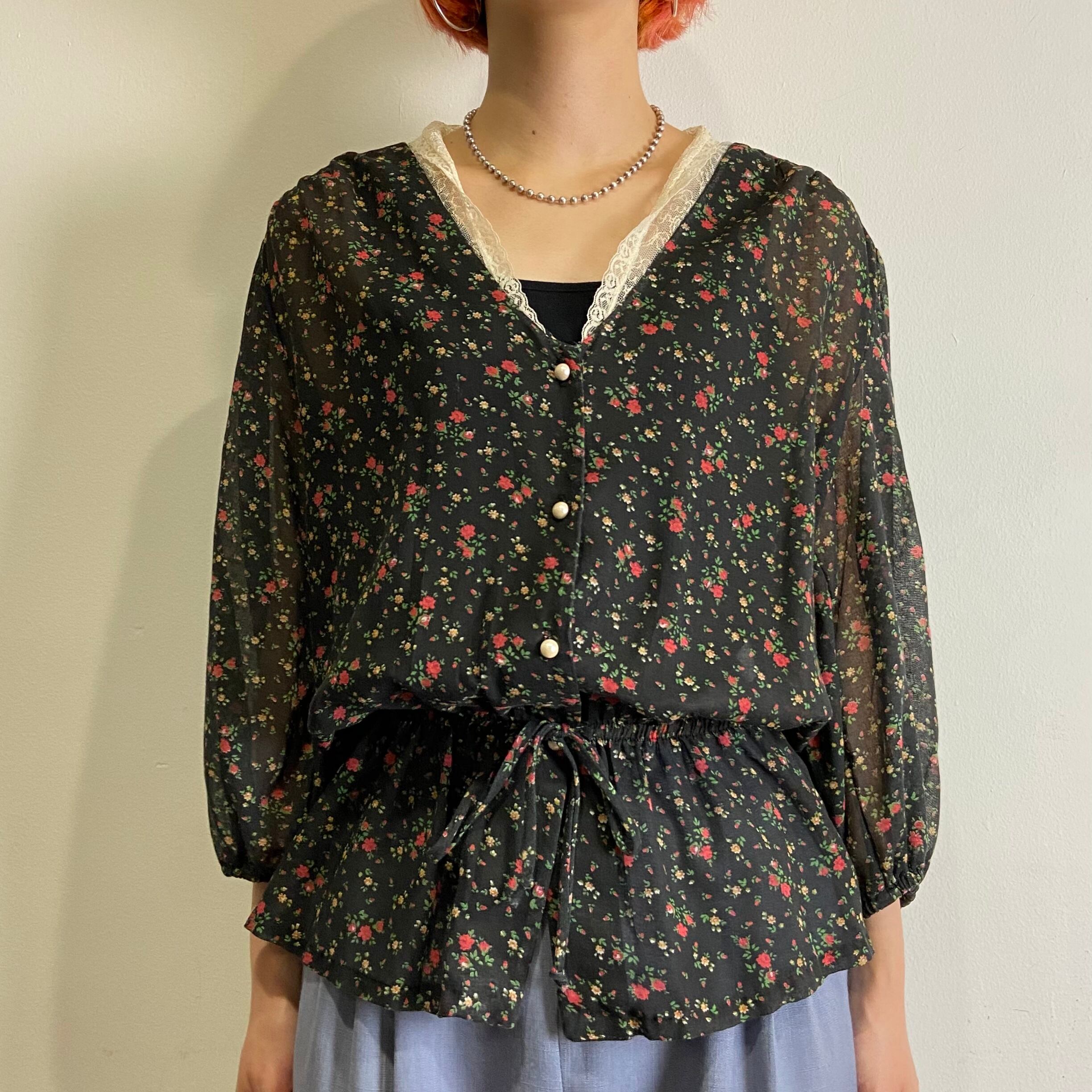 シースルー地に首元のレースが可愛い70年代のブラウスです。