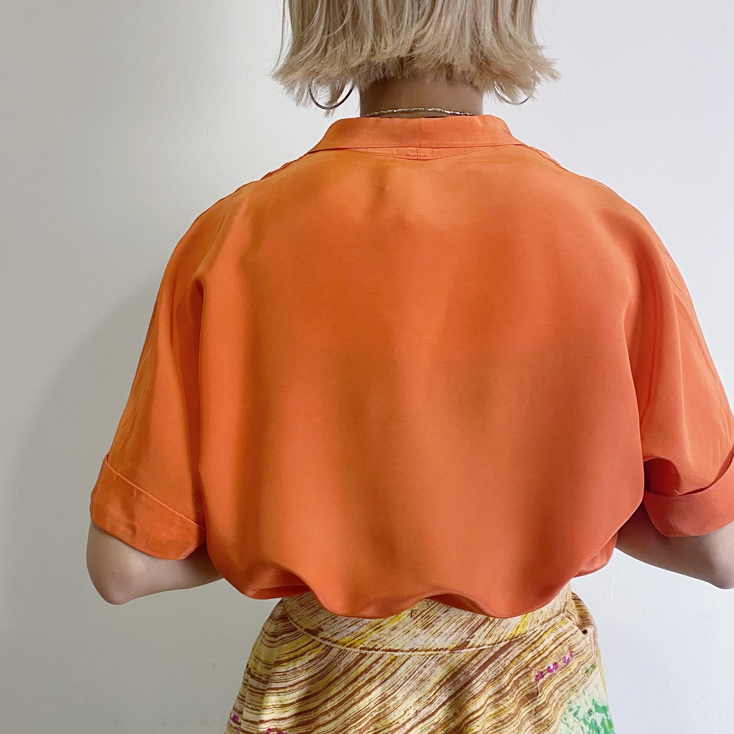 パッキリとした元気なオレンジの色合いが可愛い、50年代のレーヨンシャツです。