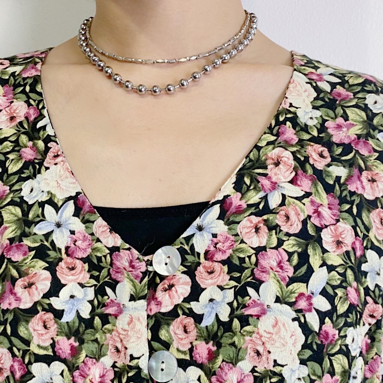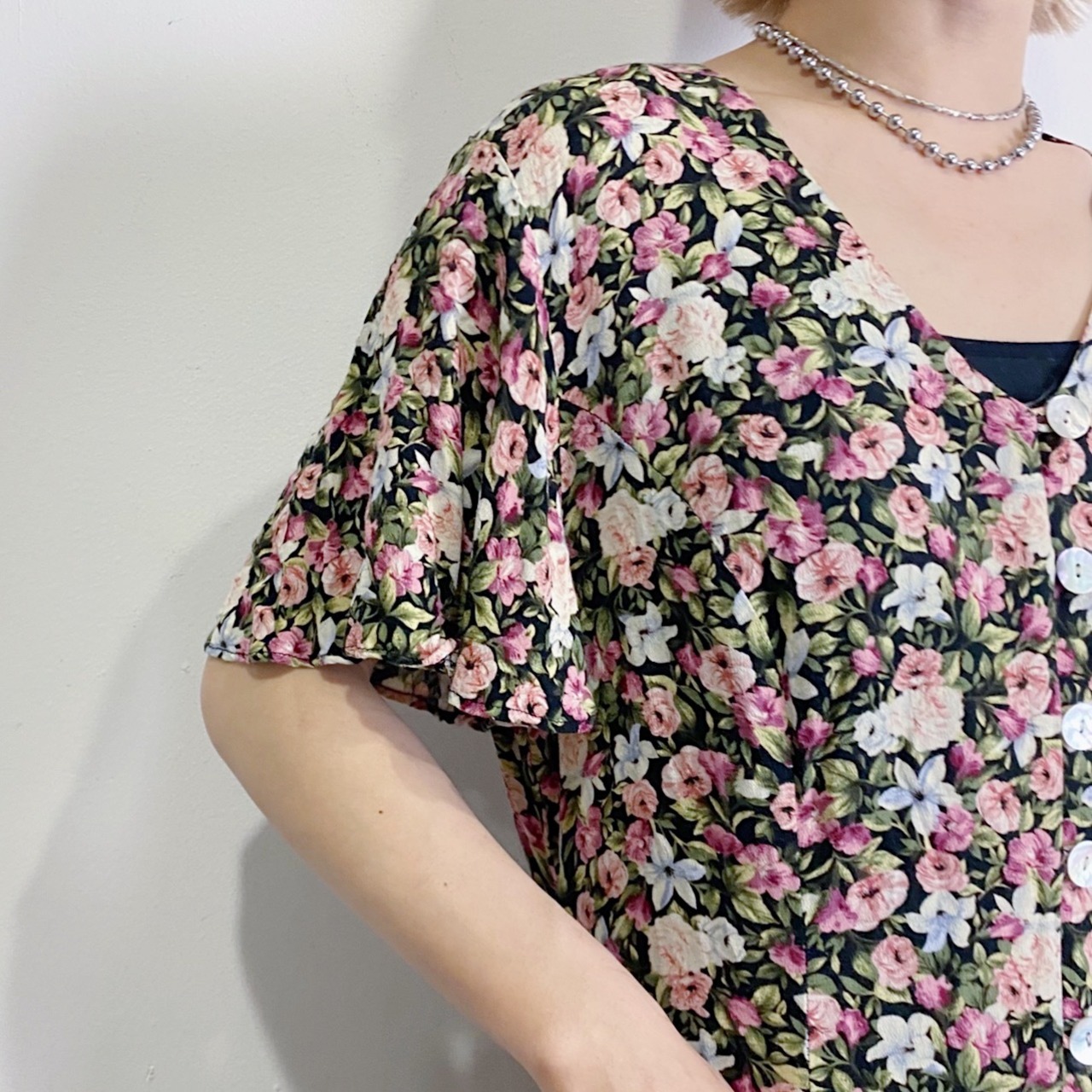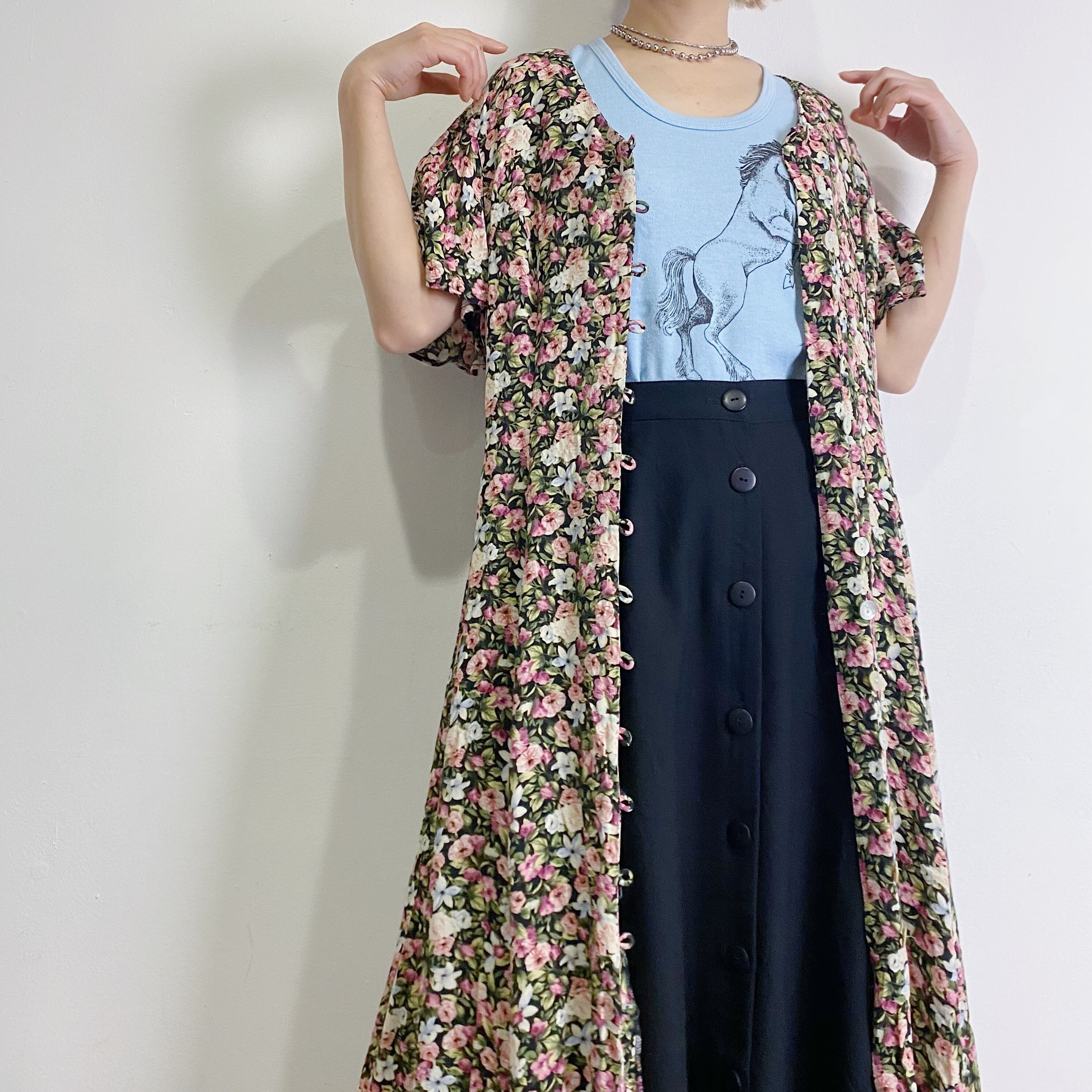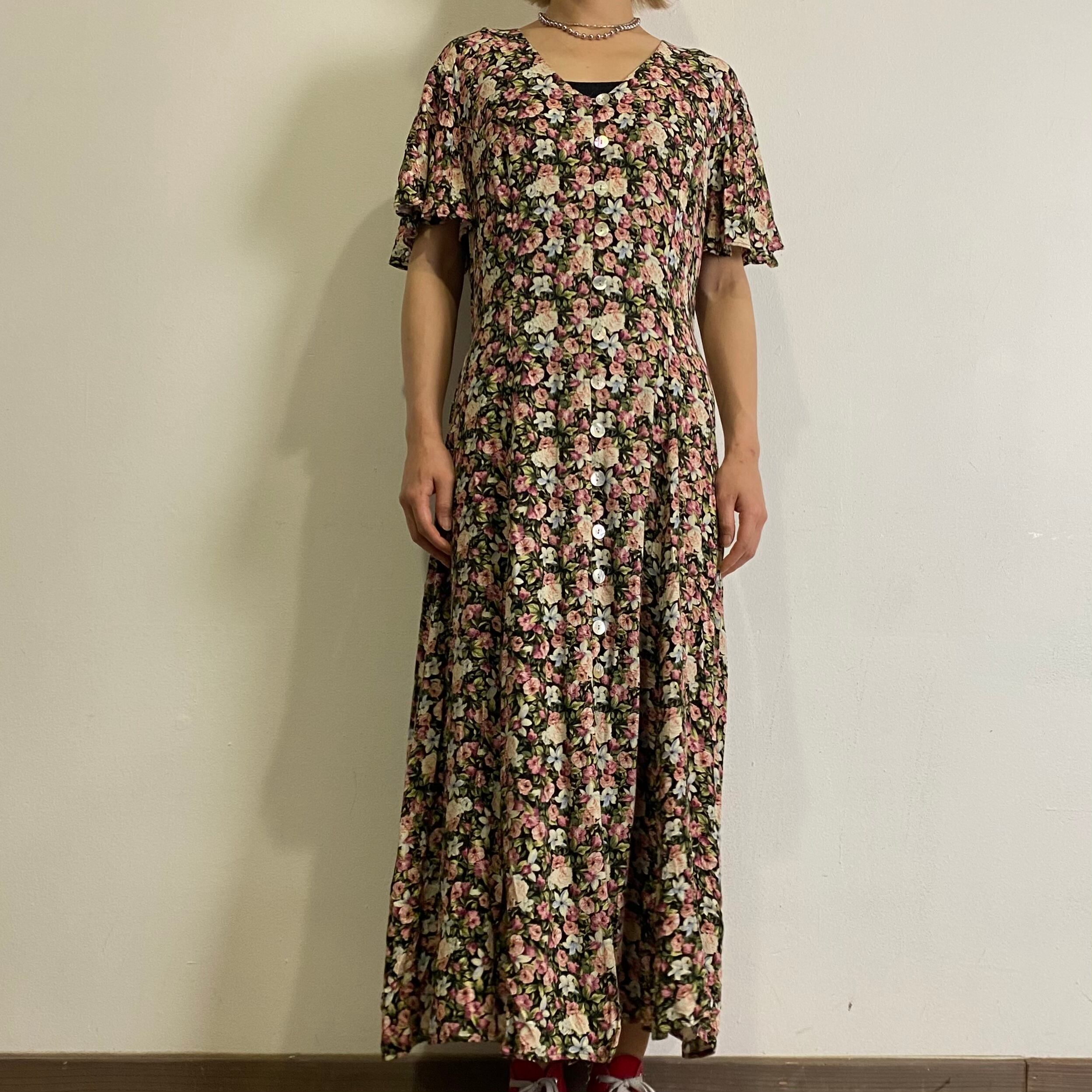 黒ベースにピンクや水色のお花が可愛いレーヨンワンピースです。