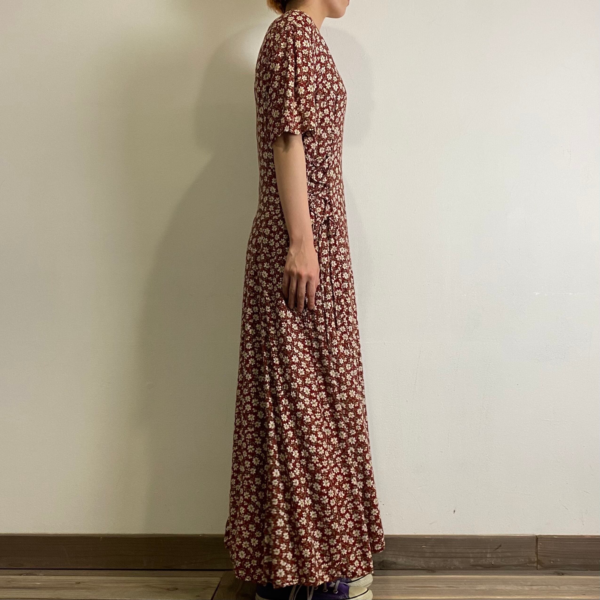 サイドの編み上げが可愛い、小花柄のレーヨンワンピースです。