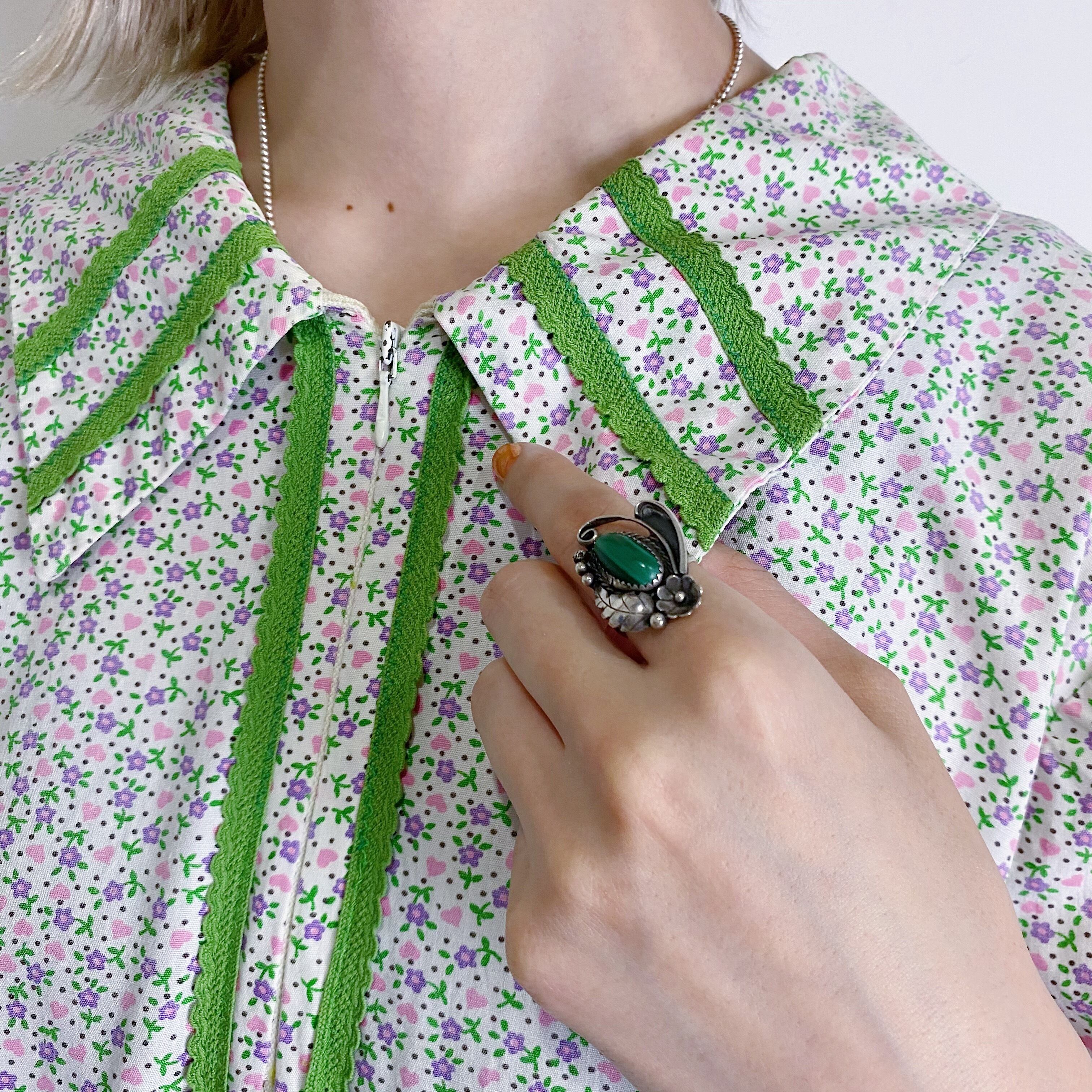 深いグリーンの色合いのターコイズが印象的な、ネイティブアメリカンのリングです。