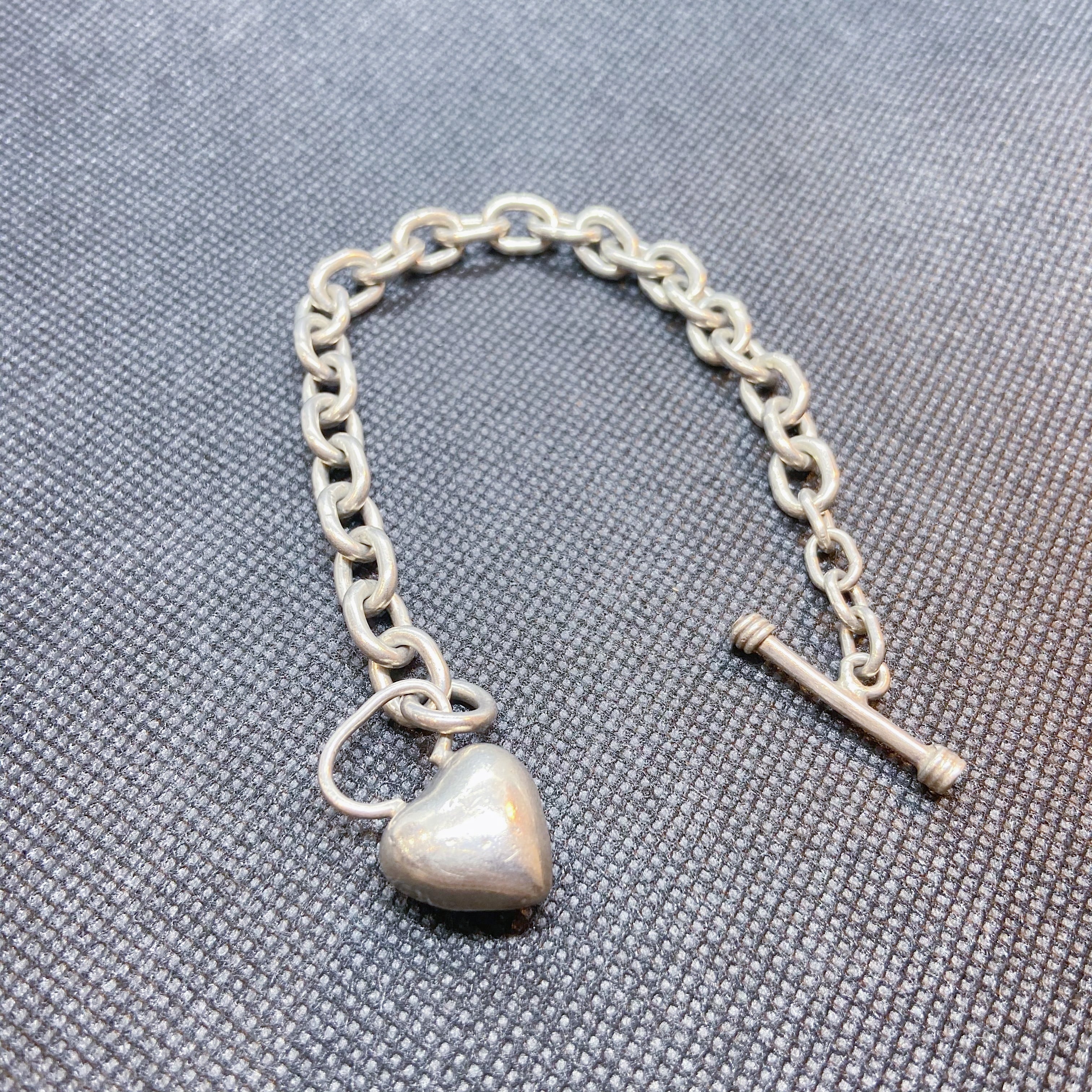 コロンとしたハートモチーフが可愛い、925シルバーのチェーンブレスレットです。