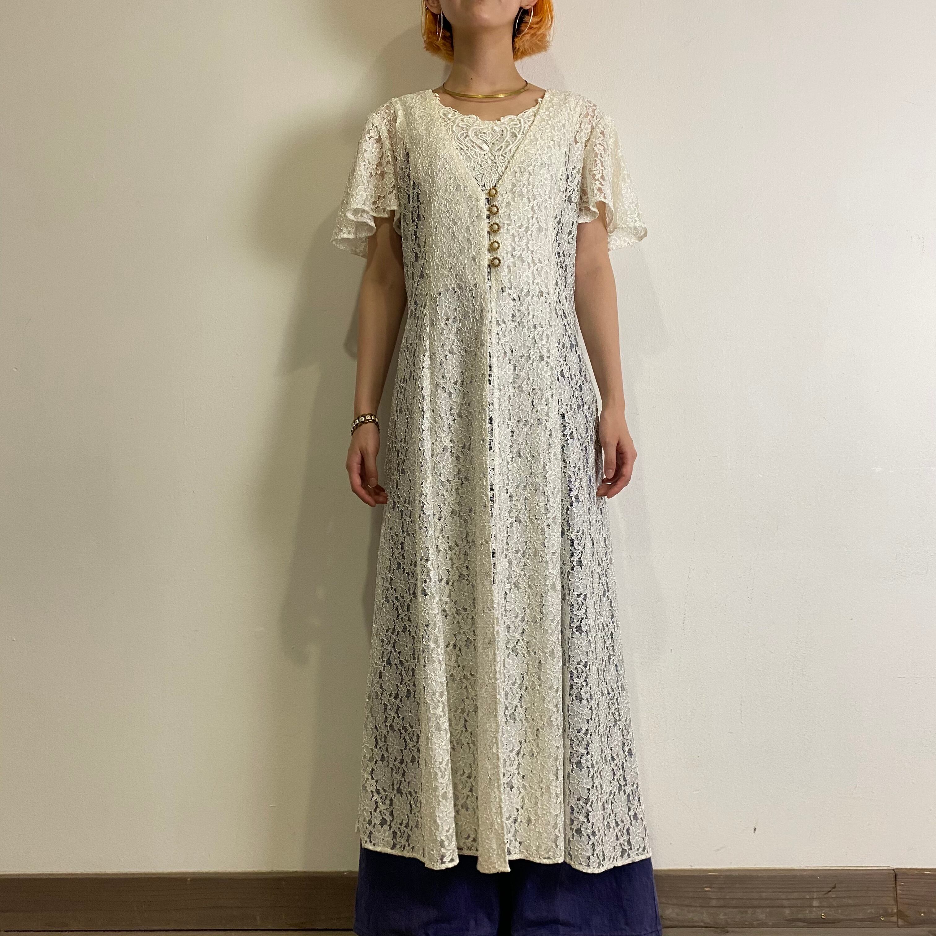 総レースにゴールドの装飾ボタンが可愛い、80年代のワンピースです。