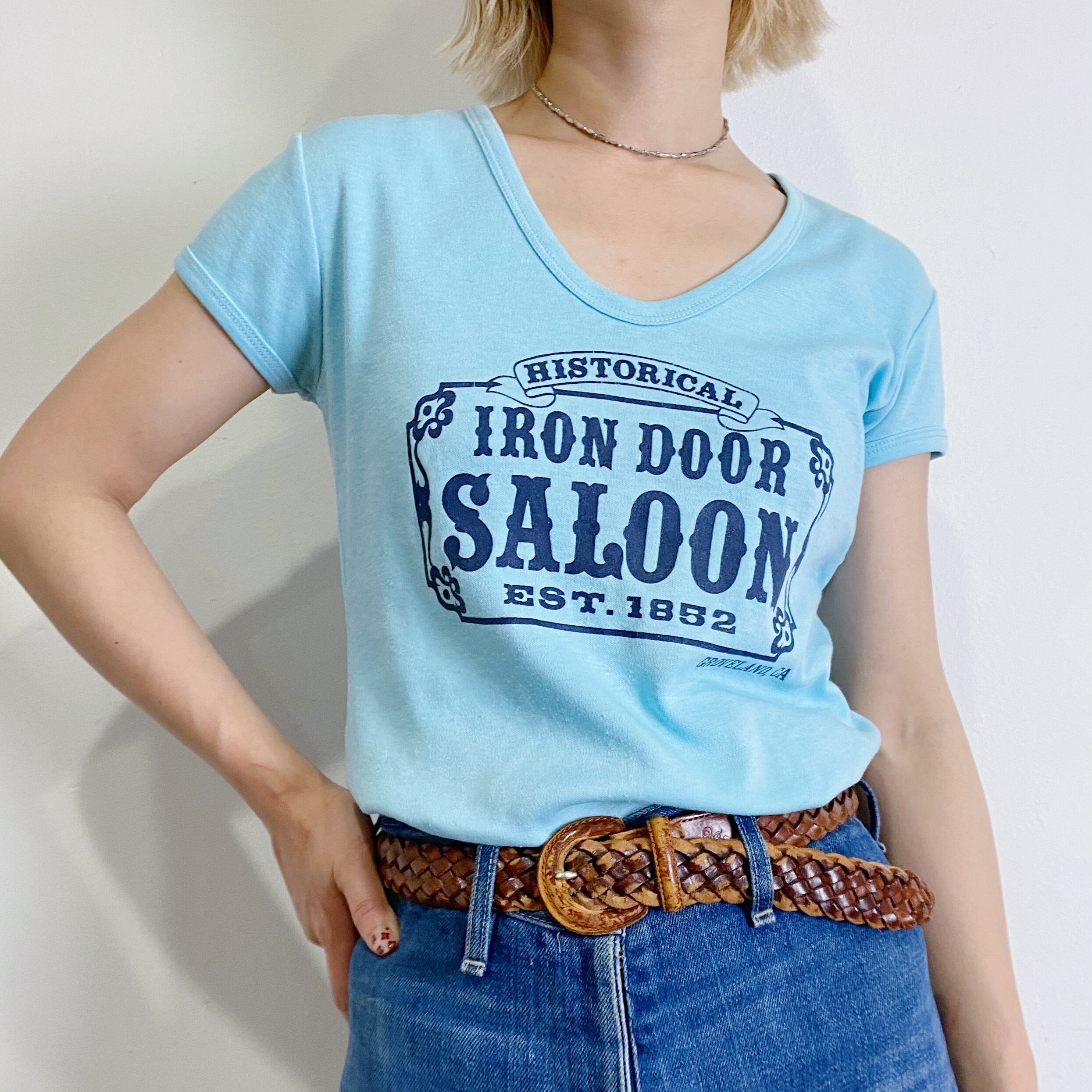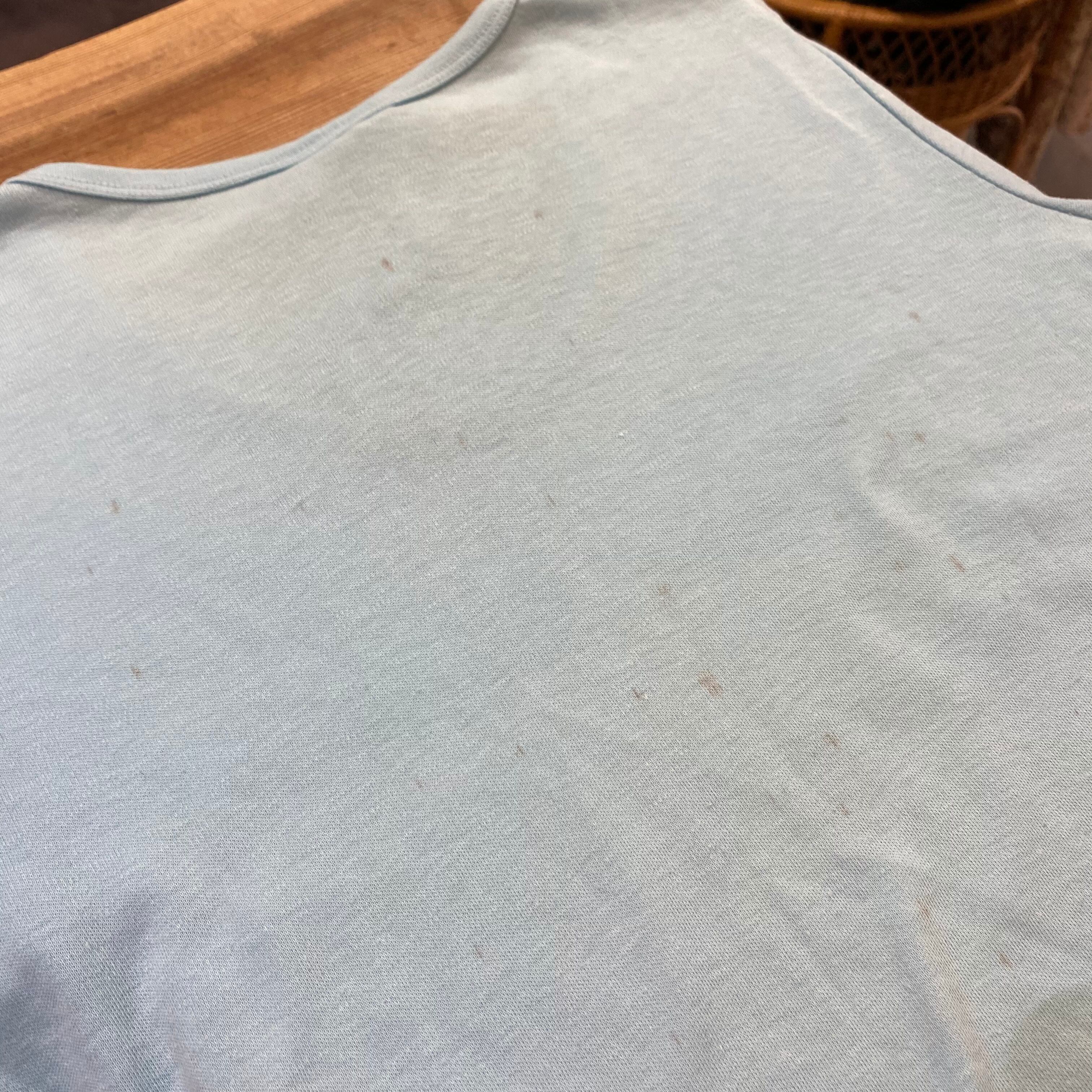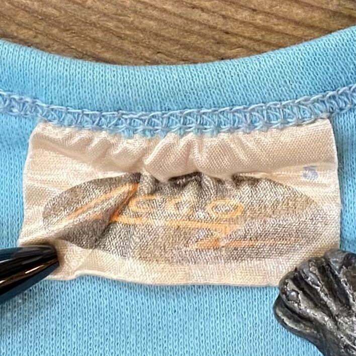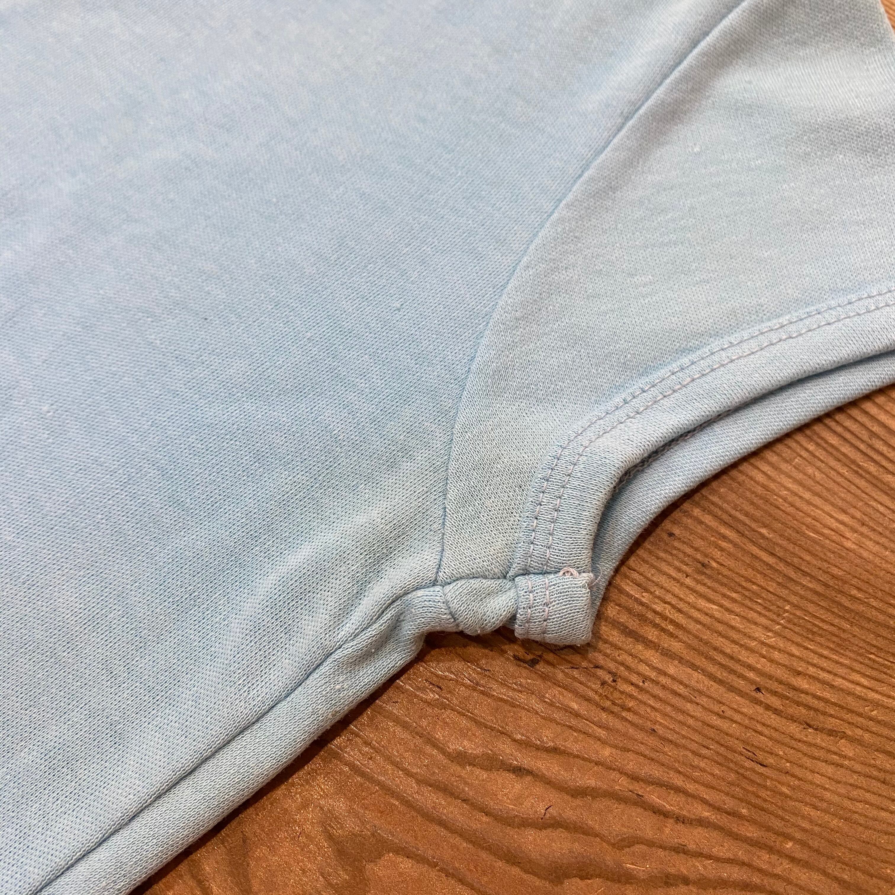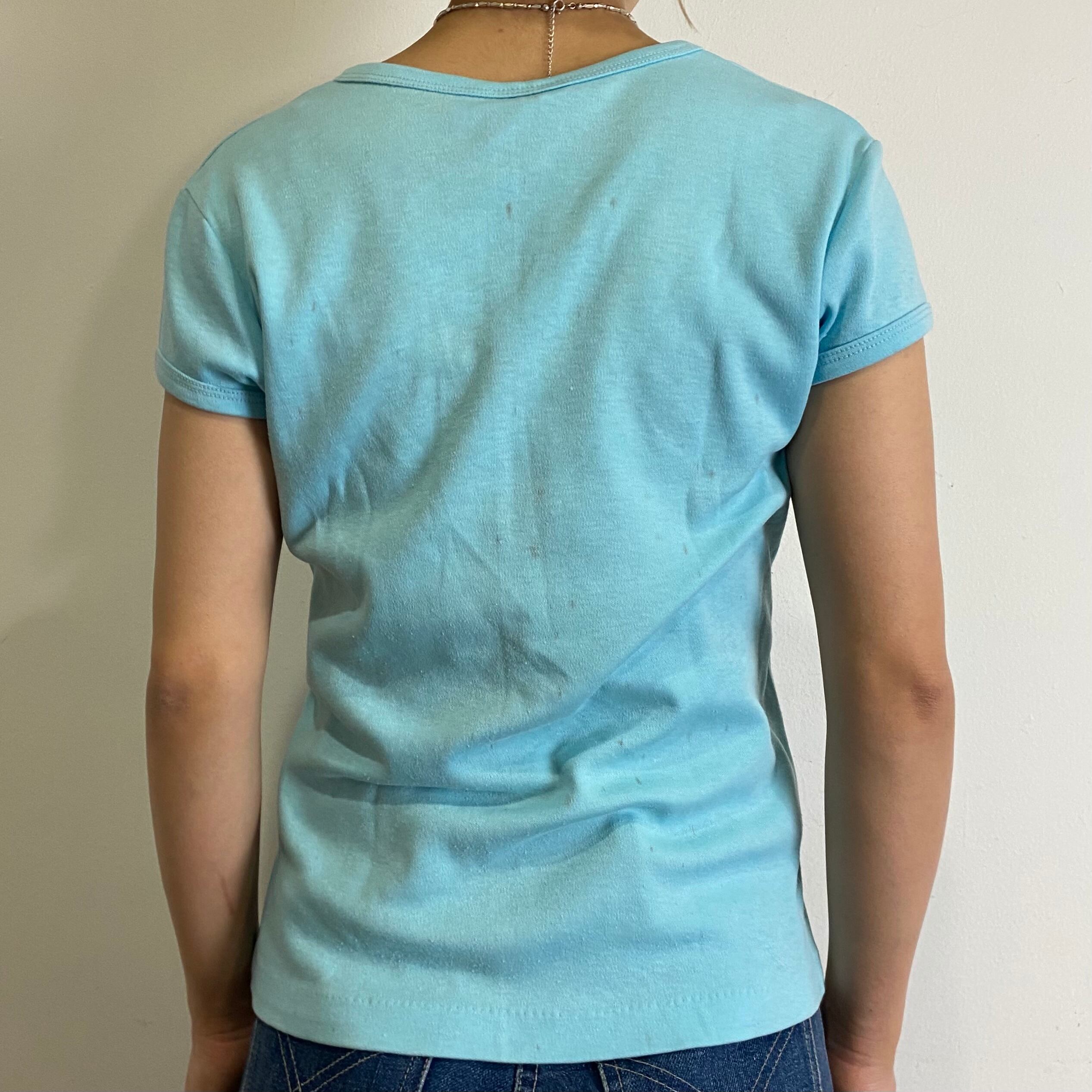 こっくりとしたサックスブルーカラーが可愛い、70年代頃のTシャツです。