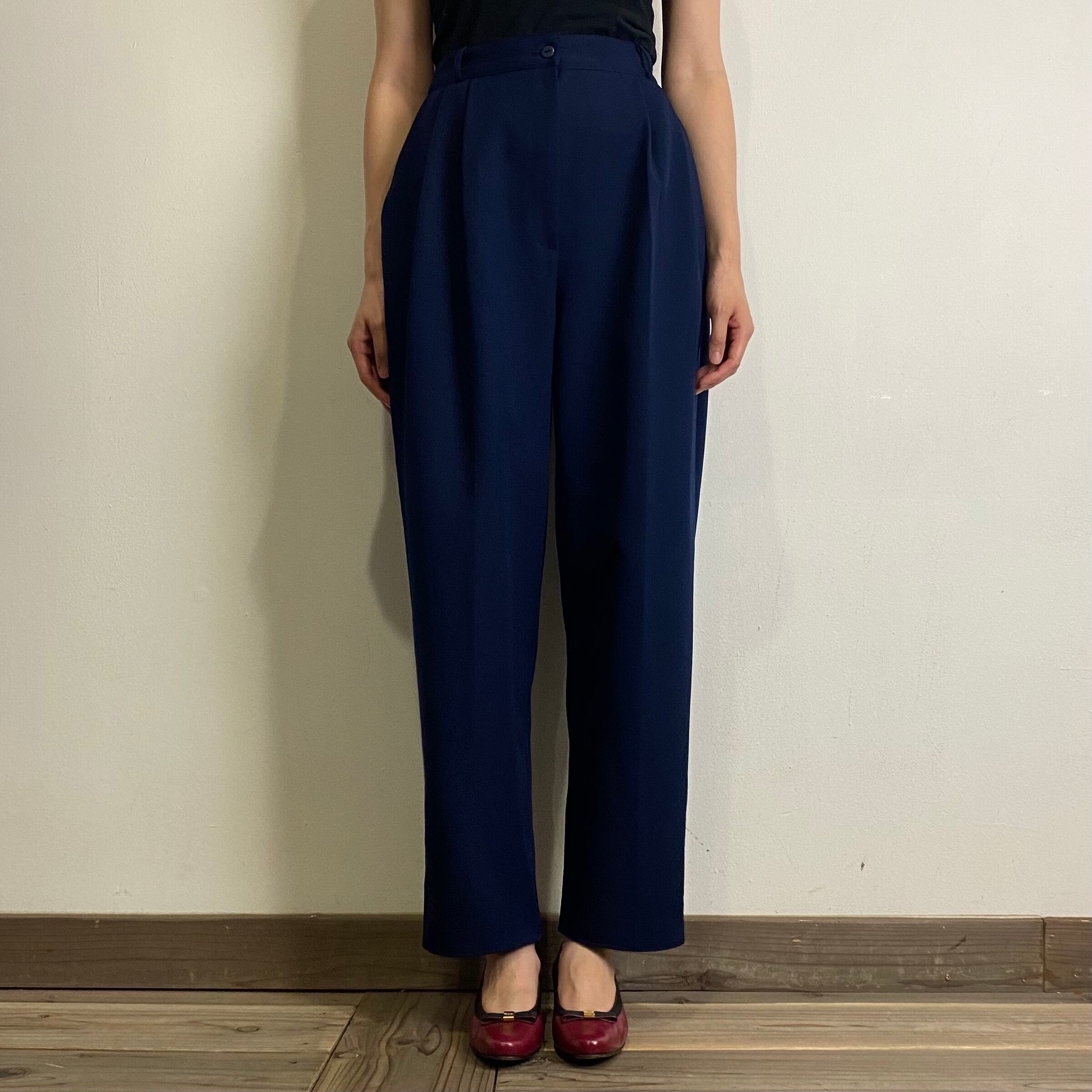 おしりがぽわっと大きいシルエットが可愛い、ネイビーカラーのスラックスです。