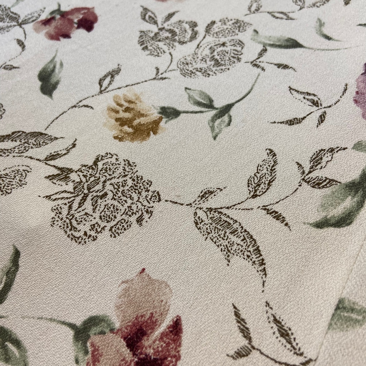 うっすらとしたシミが見受けられますが、柄に紛れてあまり目立たないかと思われます。