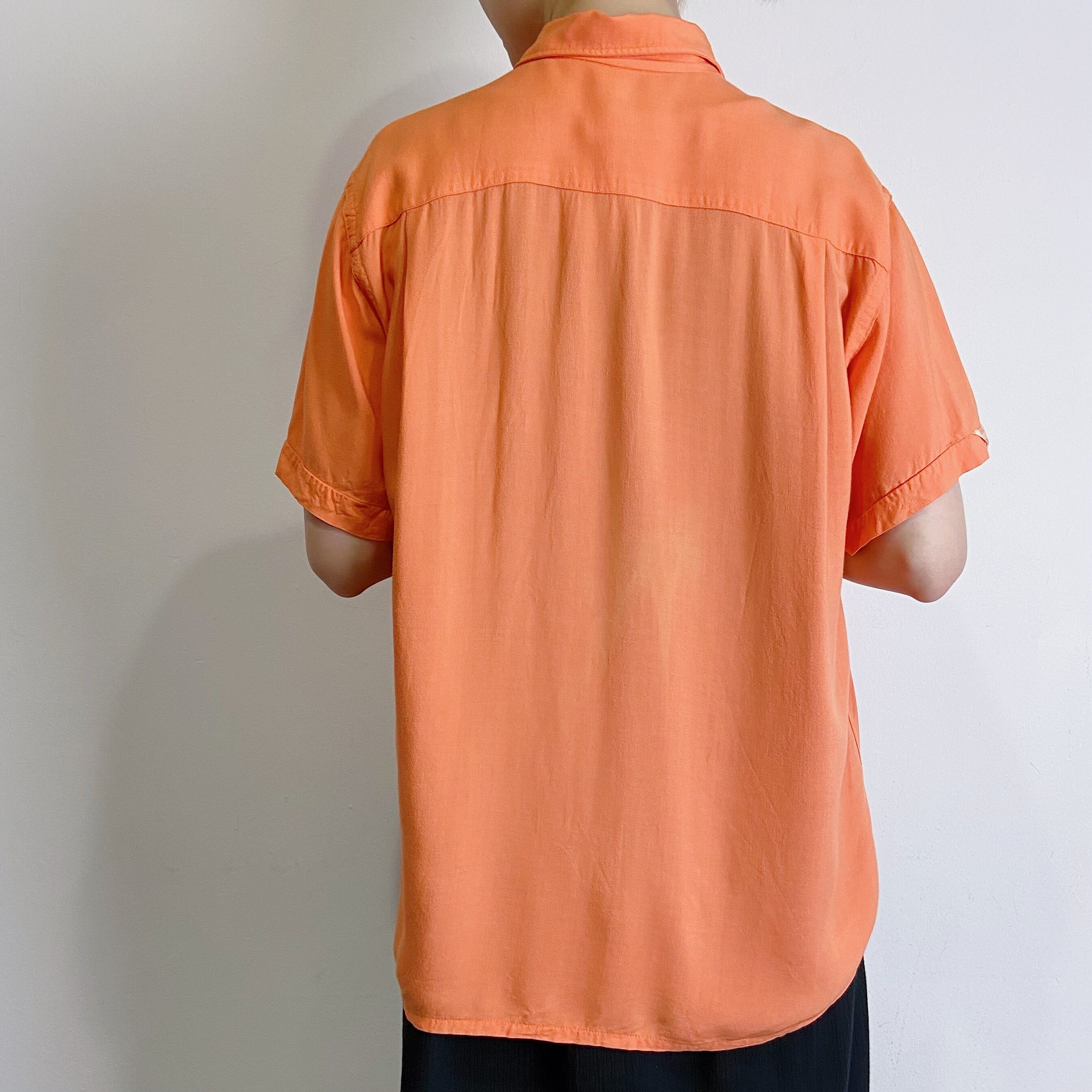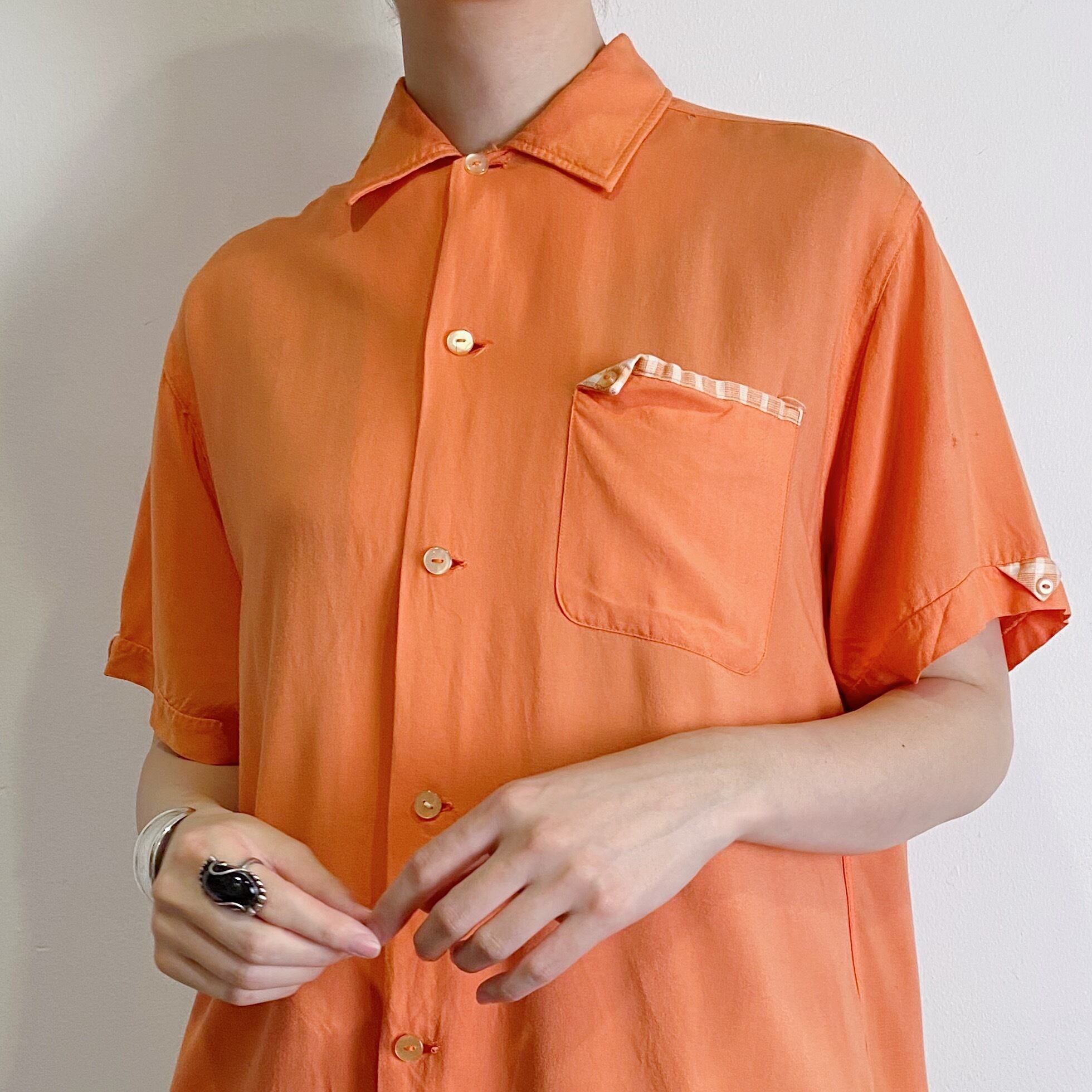 明るいオレンジ色に50年代ヴィンテージのムードたっぷりなボーリングシャツです。