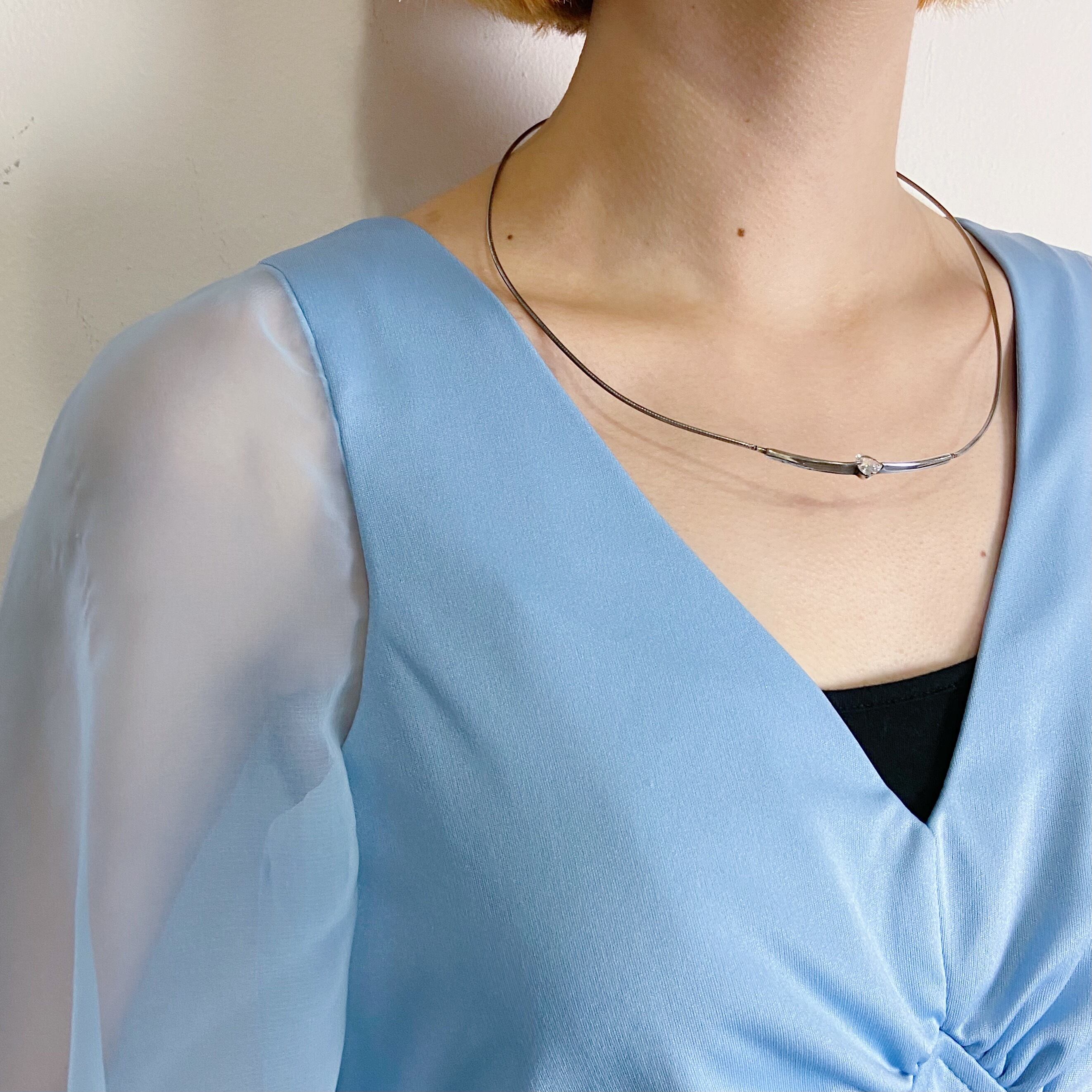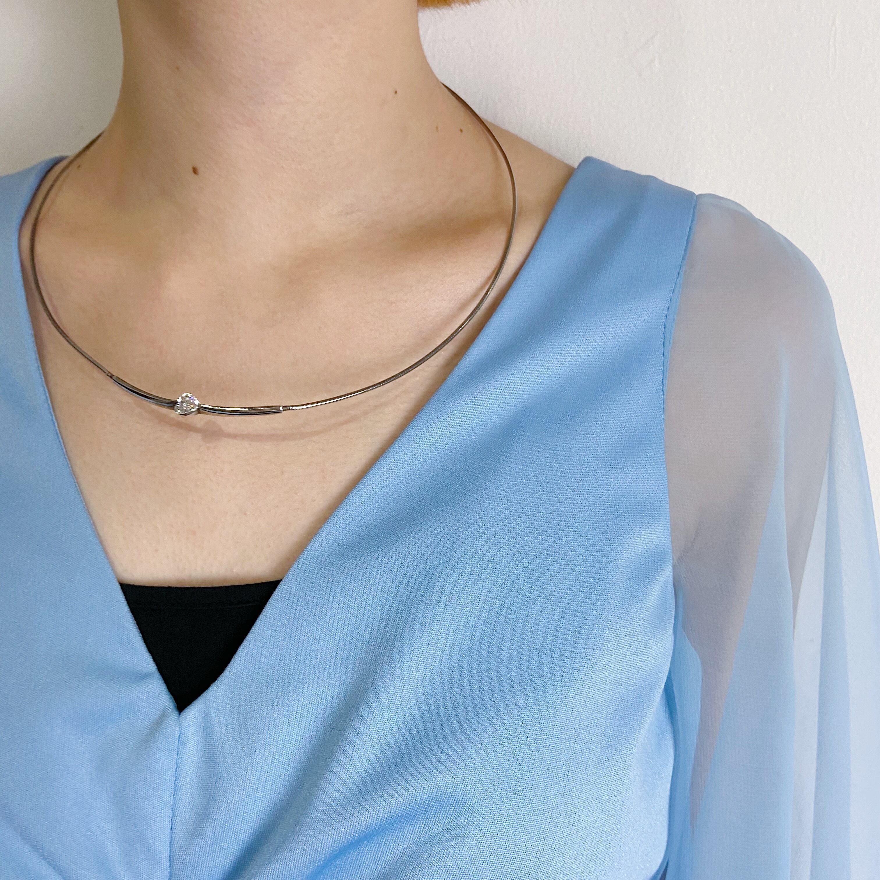 基本どんなアイテムとも相性が良さそうなシルバーチョーカーです。