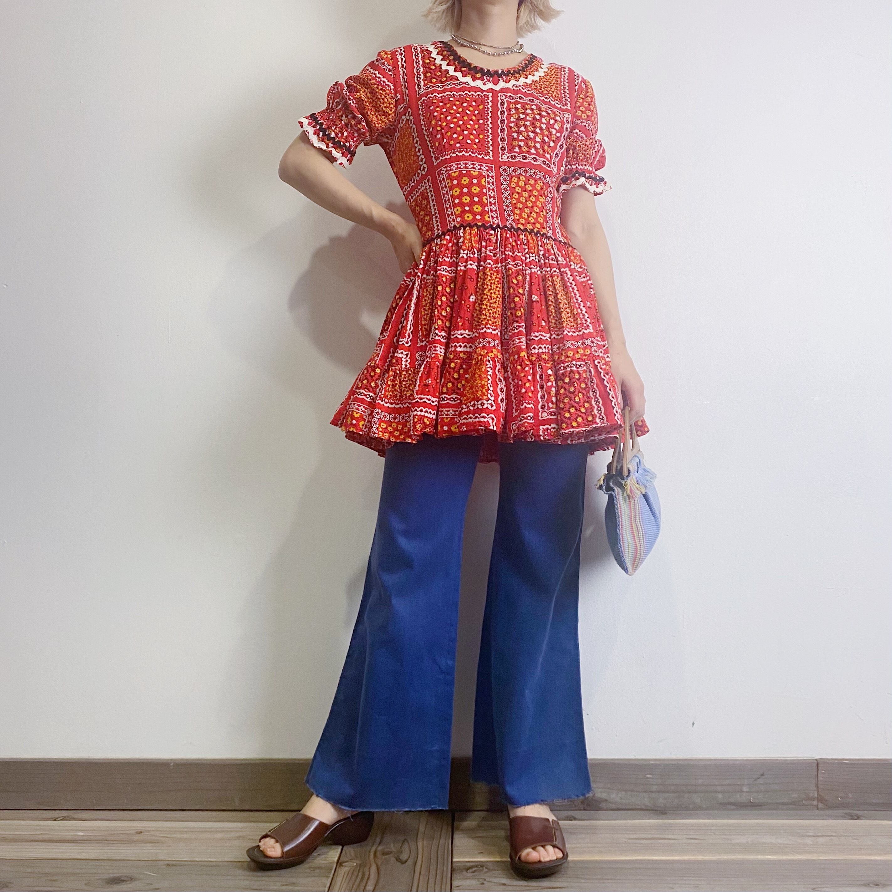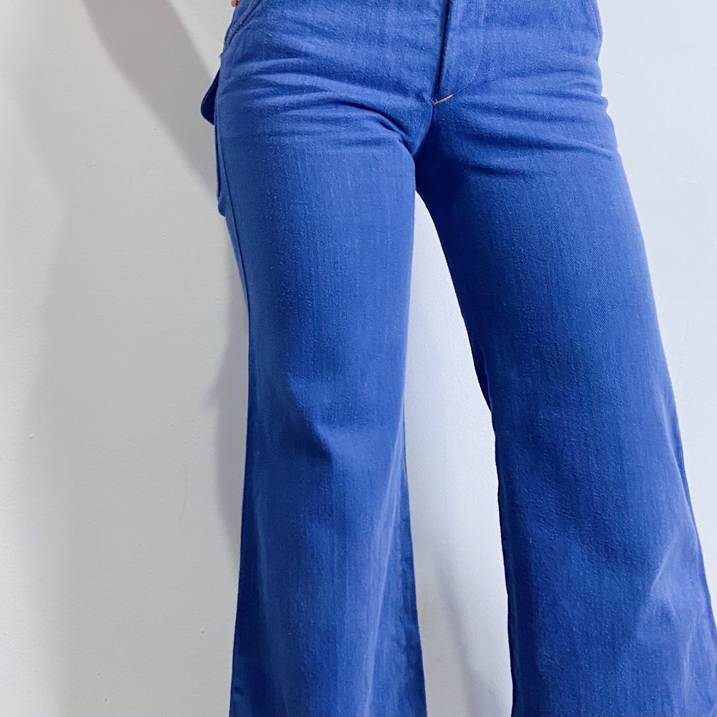 70年代のネイビーカラーが可愛いフレアパンツです。