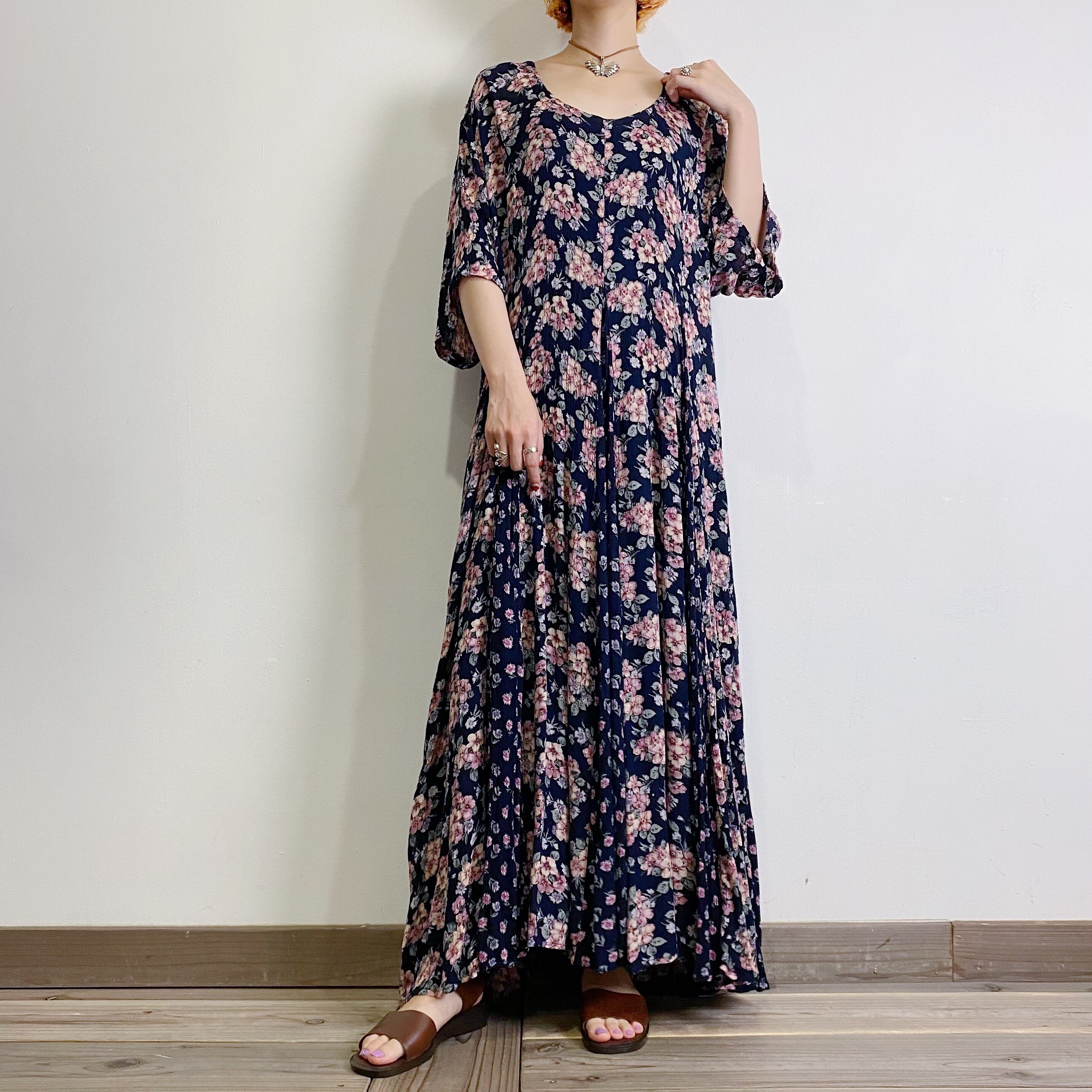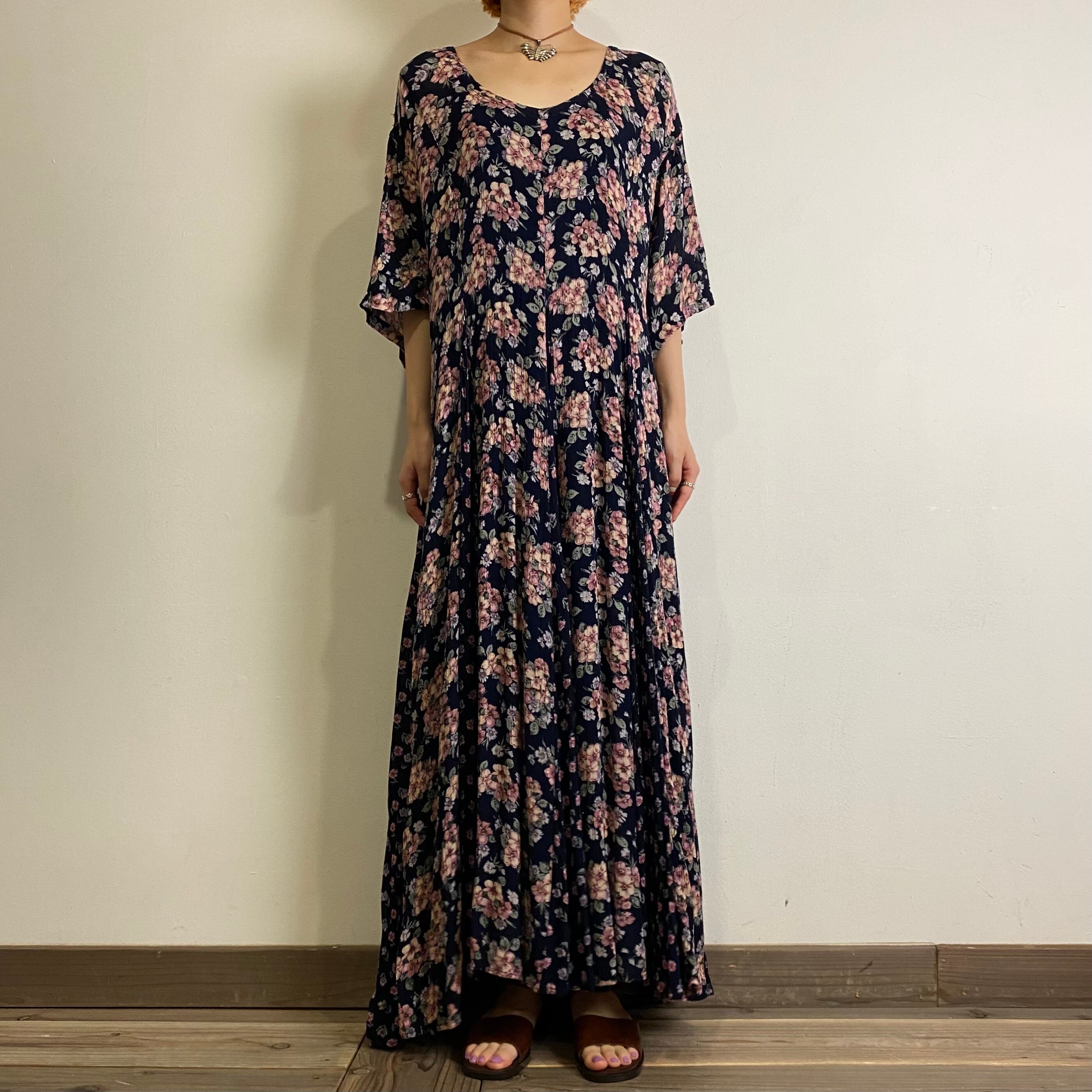 布をたっぷり使って作られた、豪華な作りのレーヨンワンピースです。