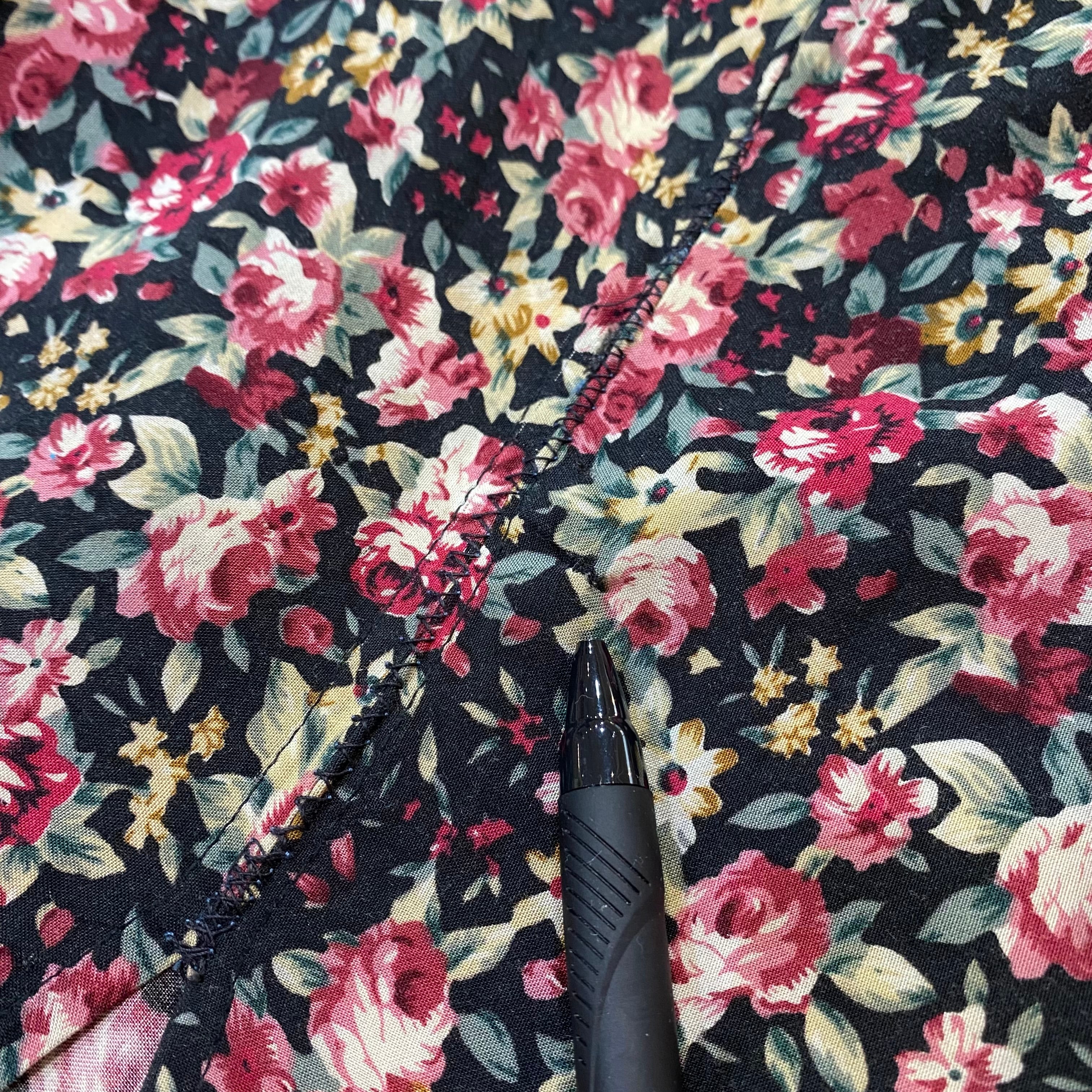 またスリット上にはお直しの跡が見受けられます。いずれも柄に紛れてあまり気にならない程度かと思われますが、お写真にてご確認くださいませ。