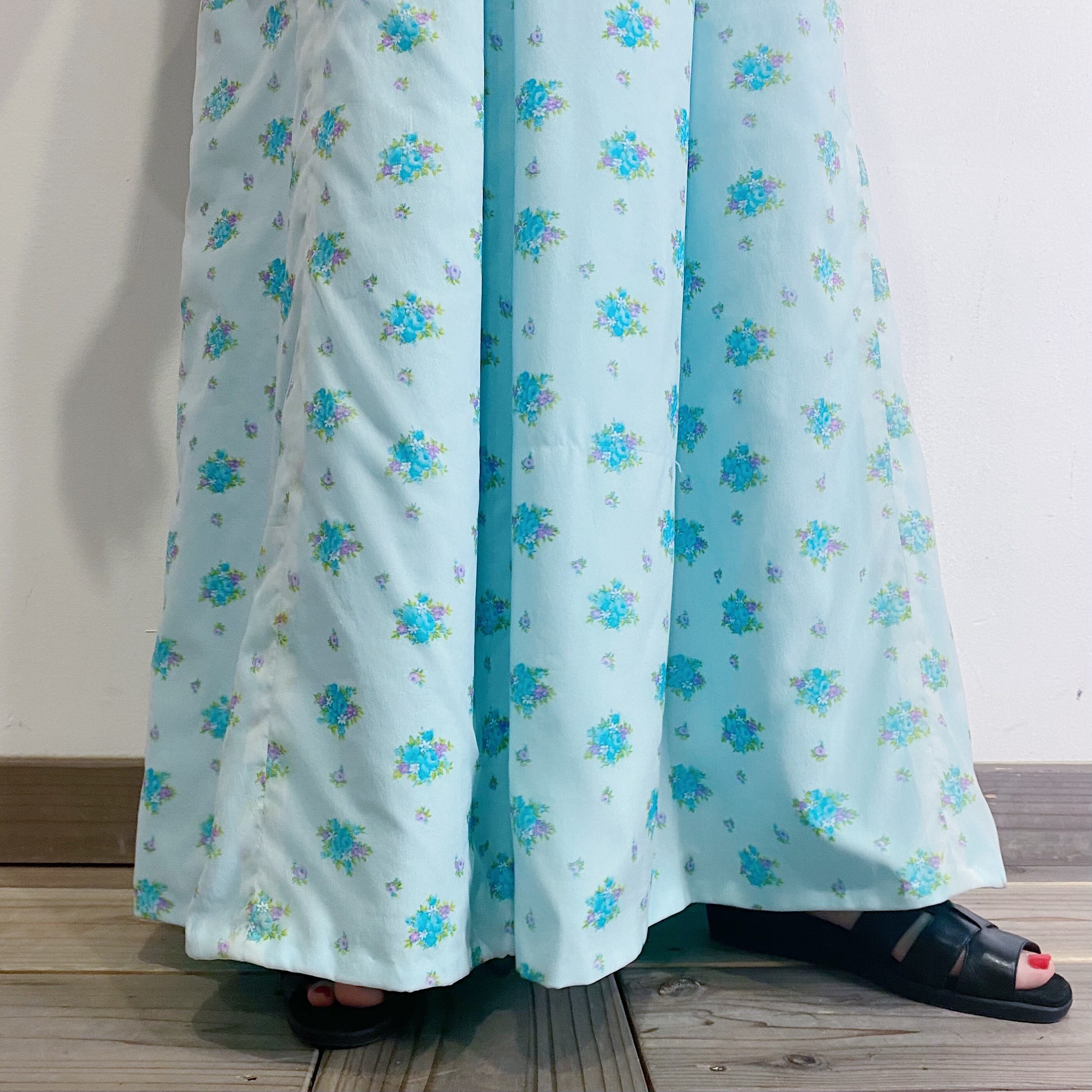70s sax blue flower long dress