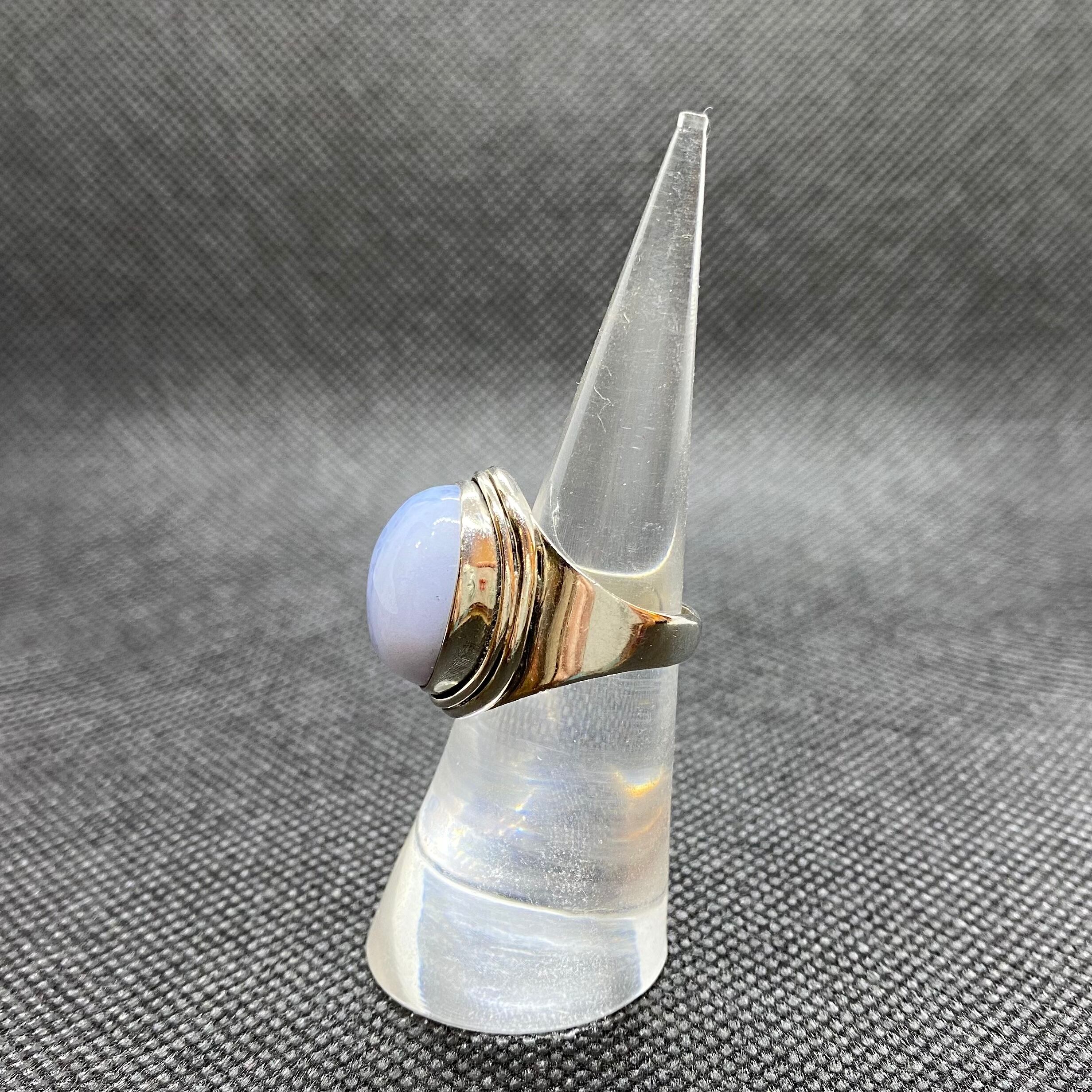 不思議な魅力の、クリーミーな水色が美しいストーンリングです。
