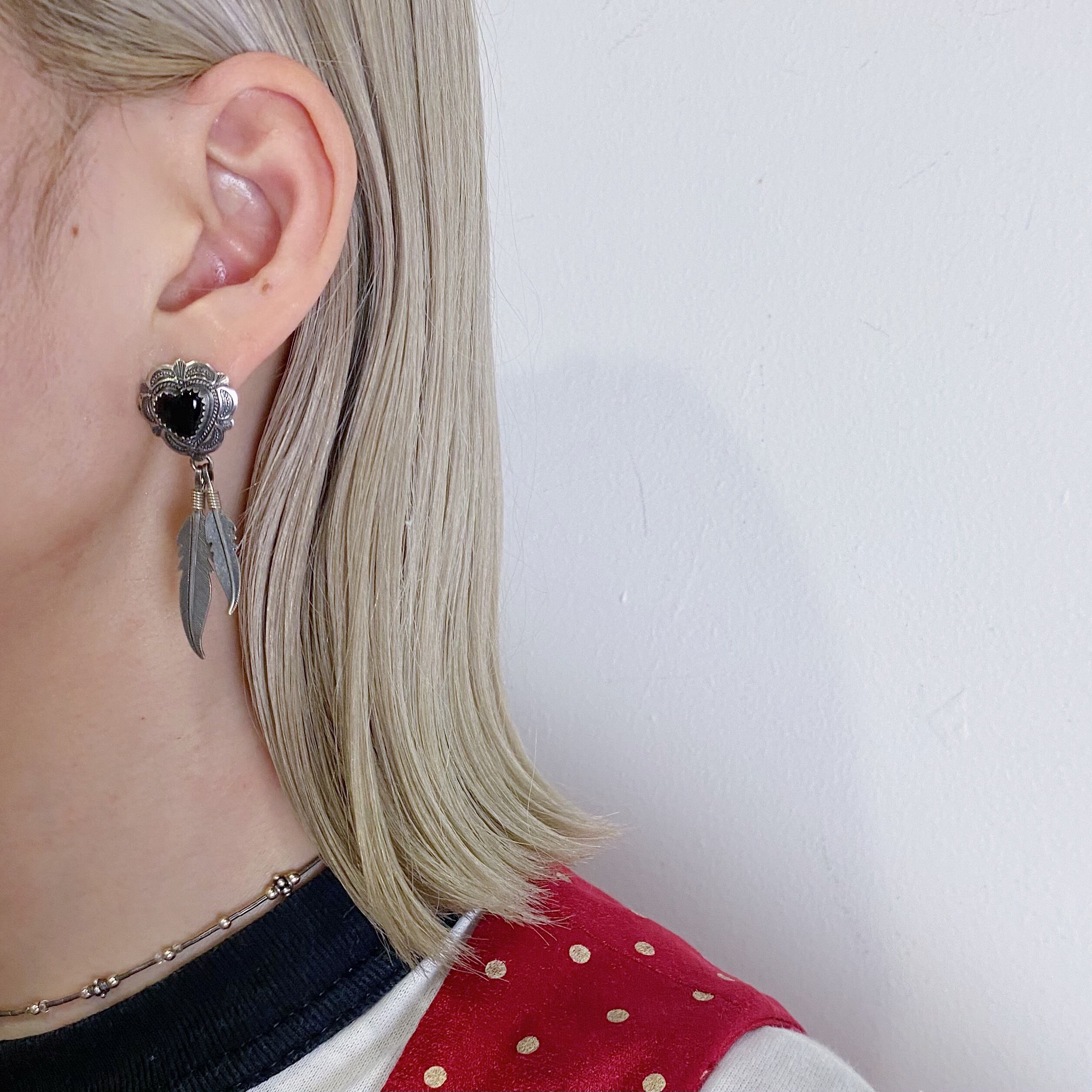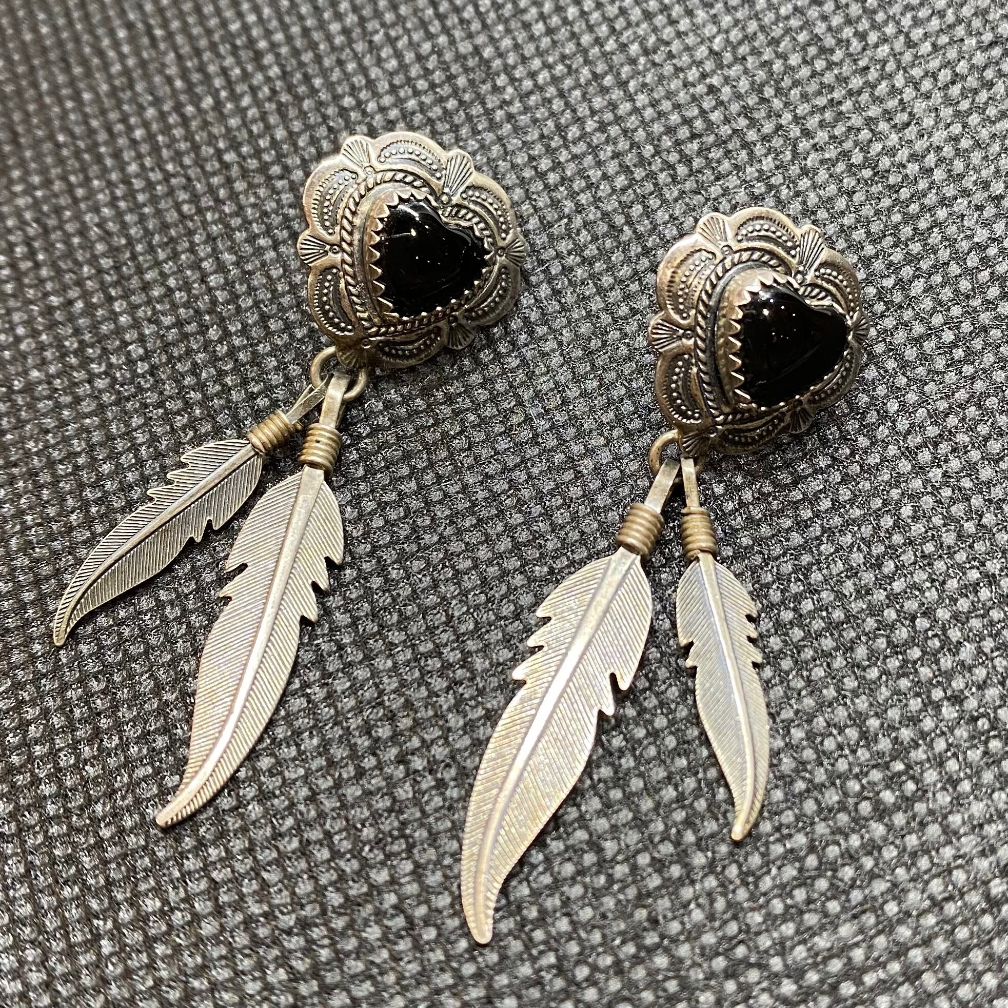 オニキスのハートモチーフが可愛い、ネイティブアメリカンのピアスです。