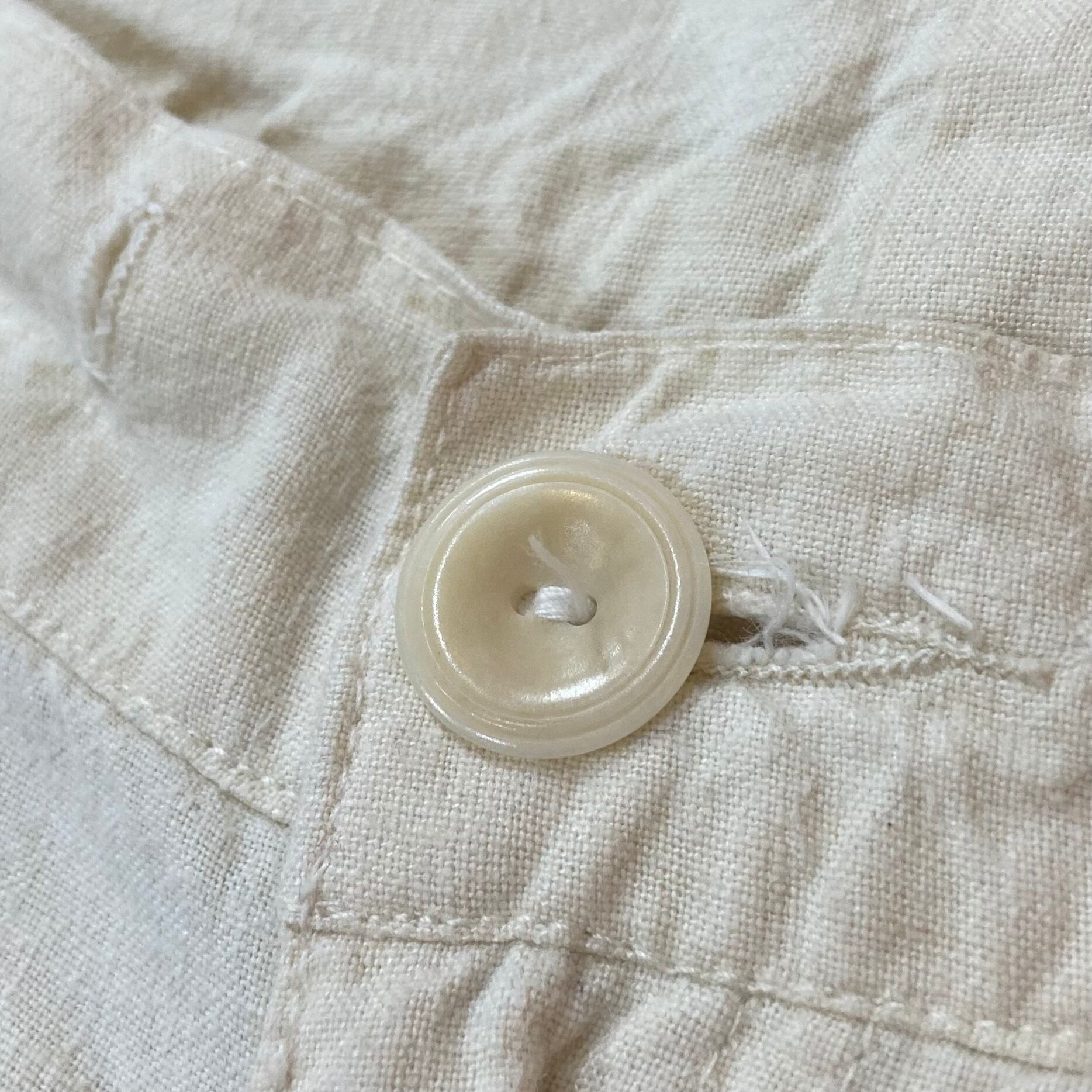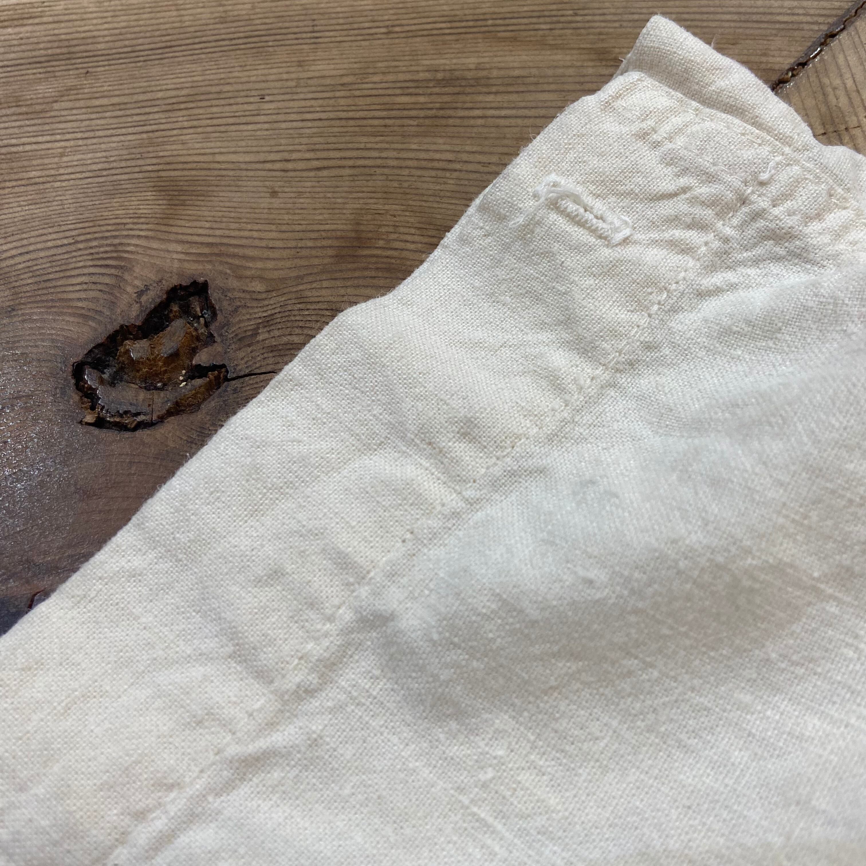 麻素材の特徴により、茶色のような色が見受けられる部分がございますが、しみではございません。
