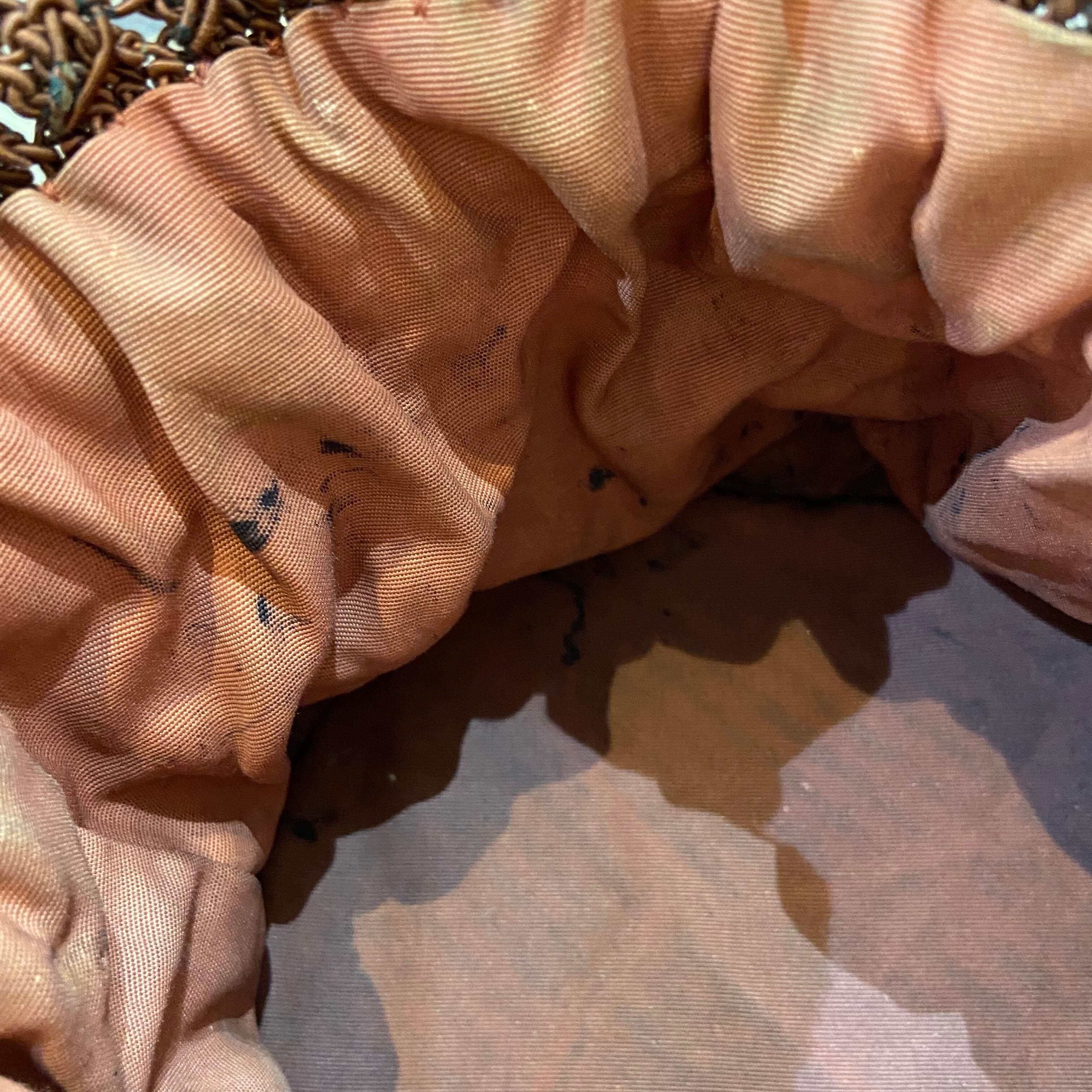 ブラウンカラーで使い勝手の良さそうな、40年代の巾着バッグです。